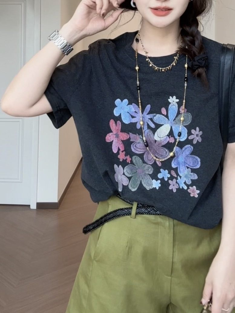 지방 지아 지아 지방 mm 빅 사이즈 여성 의류 부드러운 안개 티셔츠 여름 품격 캐주얼 질감 센스 반팔 레이스 맨위