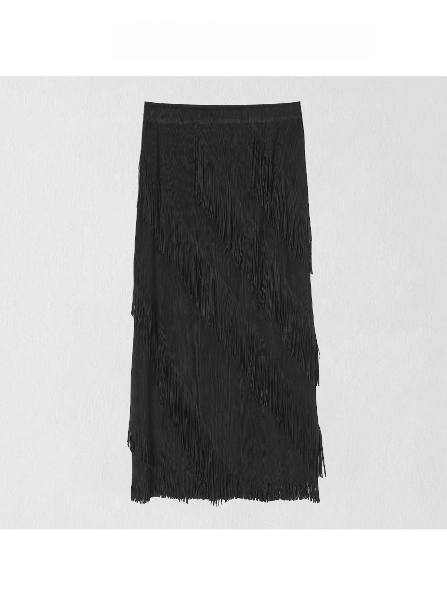 2026 봄 새로운 고급 프랑스식 사소한 고유 한 디자인 센스 프릴 불규칙 검정색 도트 무늬 반신 스커트