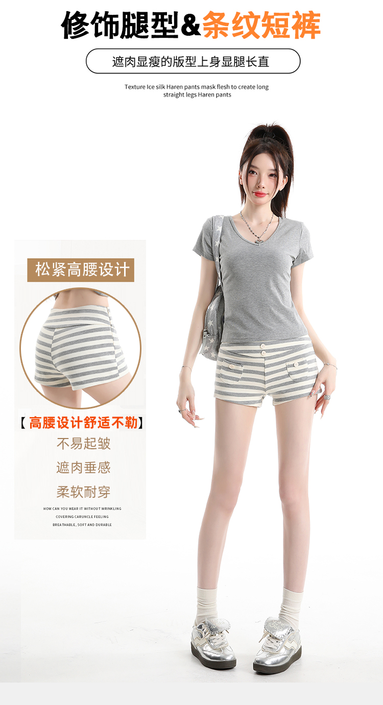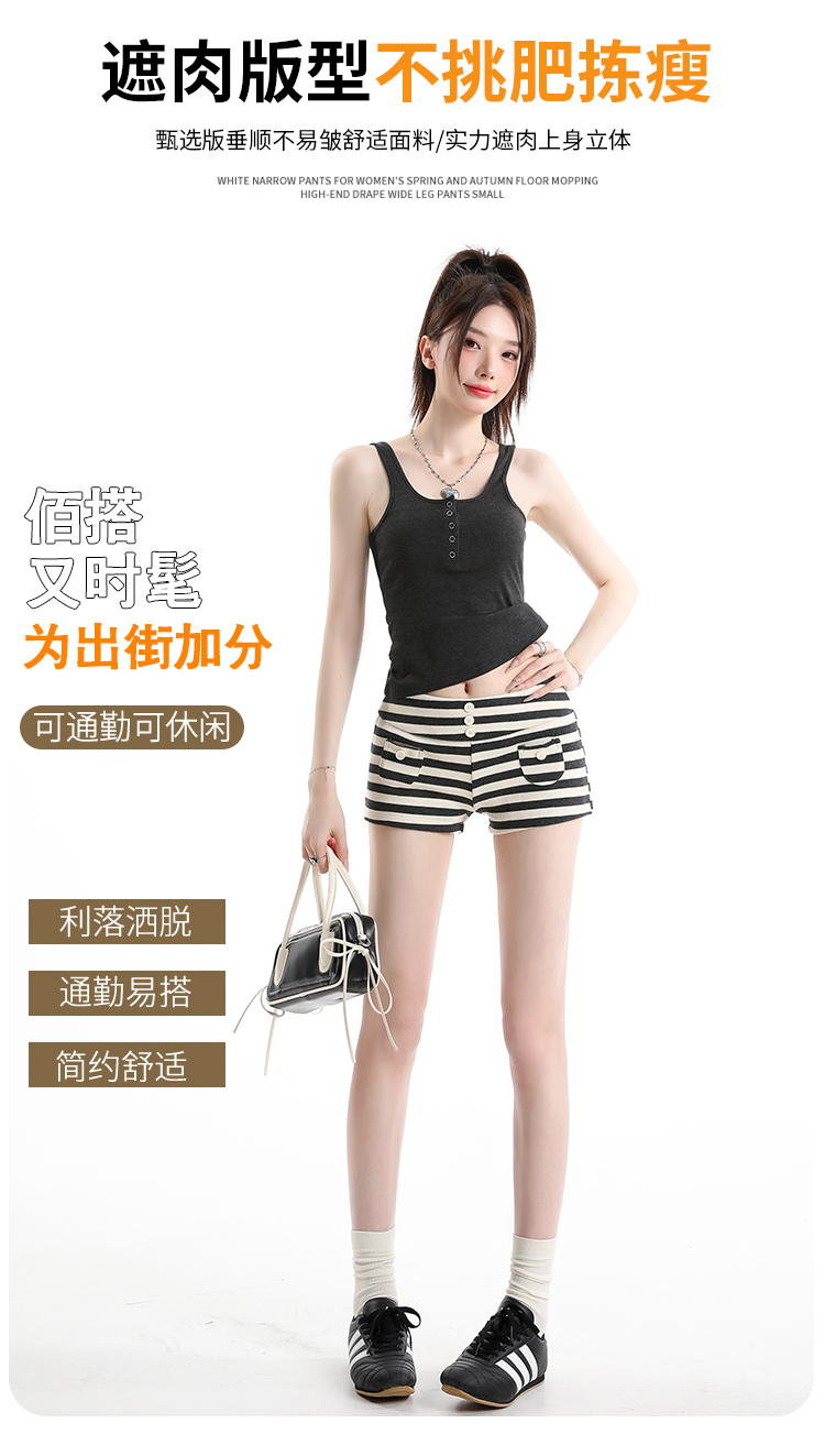 한 부서 레트로 스트라이프 와이드 레깅스 바지 2026 여름 새로운 디자인 센스 스트랩 다용도 오래된 돈 바람 정장 바지