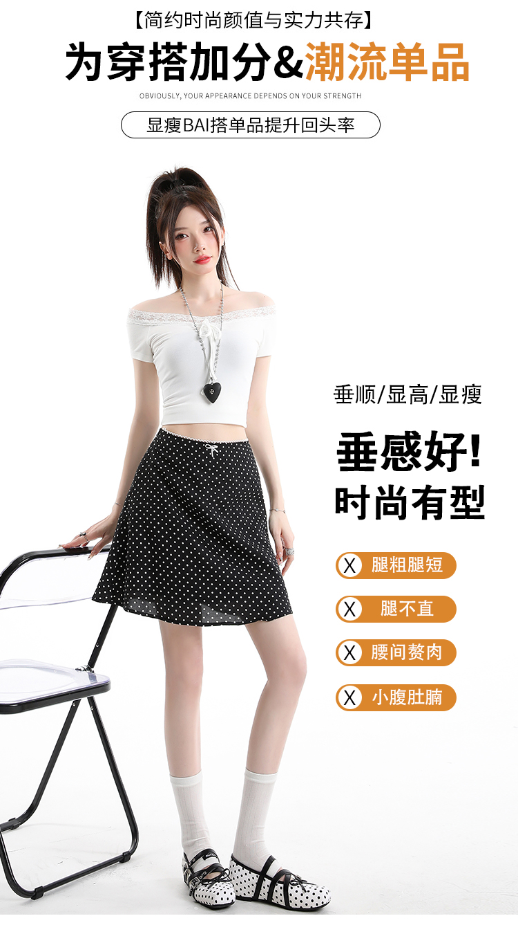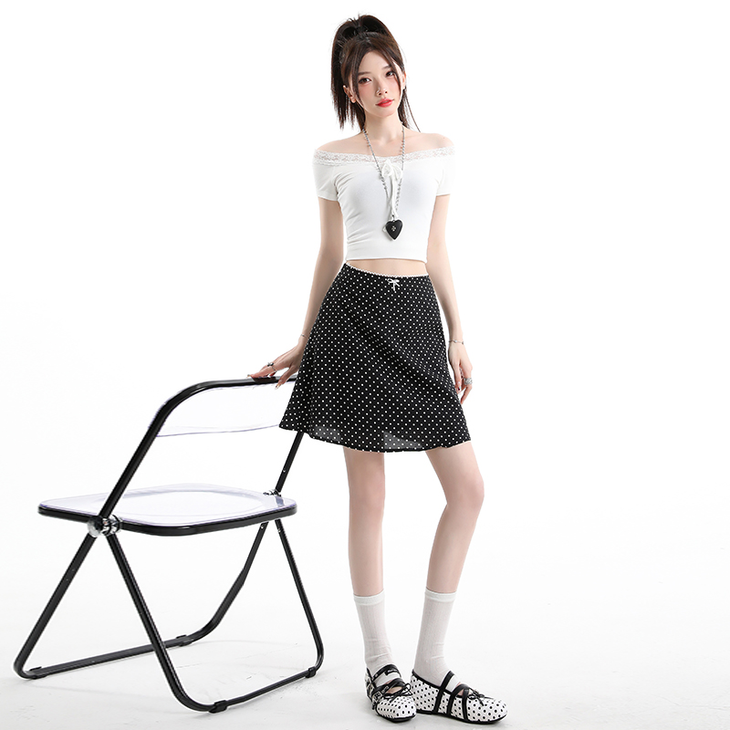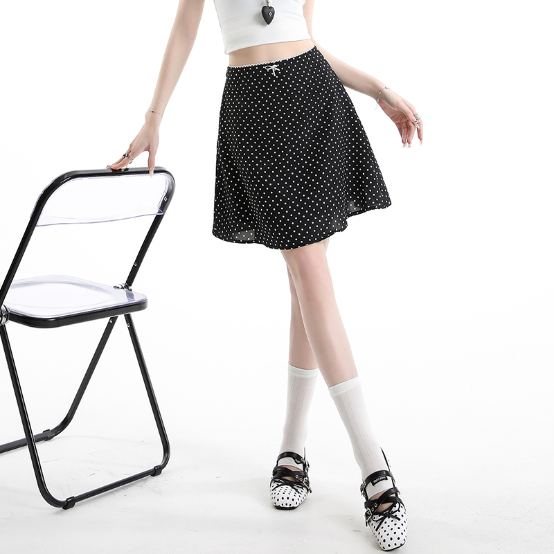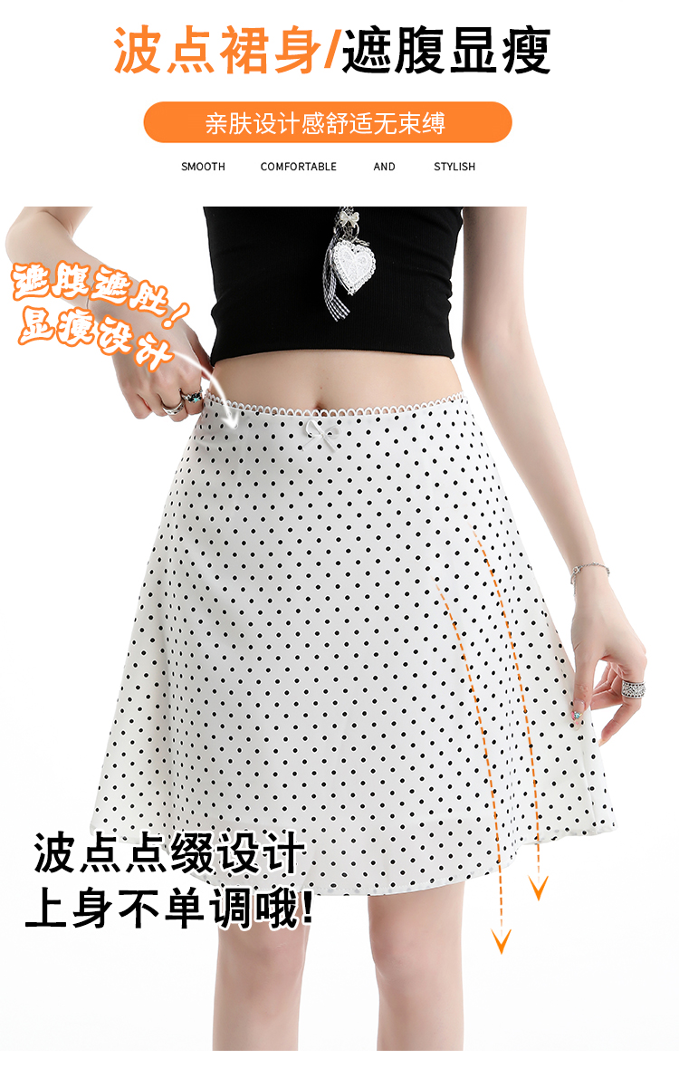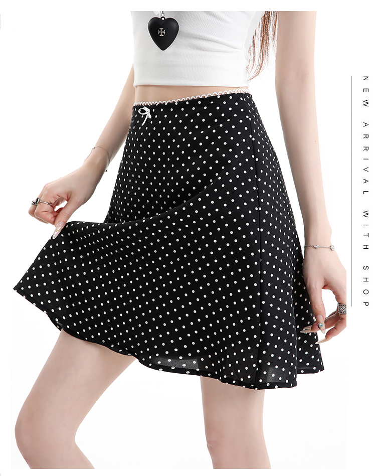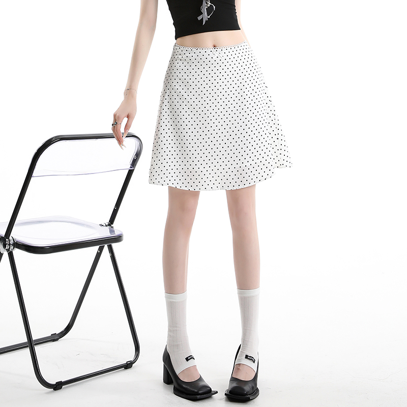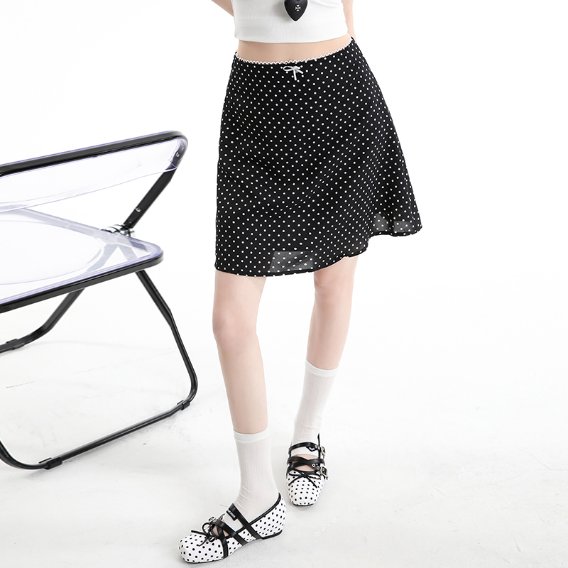한 부서 도트 무늬 패치워크 레이스 프릴 반신 스커트 여성 여름 얇은 스타일 하이웨이스트 쉬폰 한 마디 표지 고기 인어 꼬리 스커트