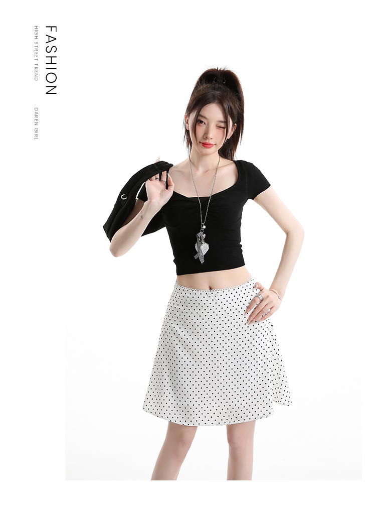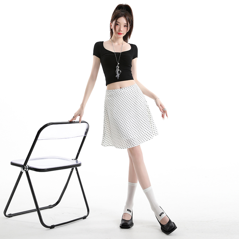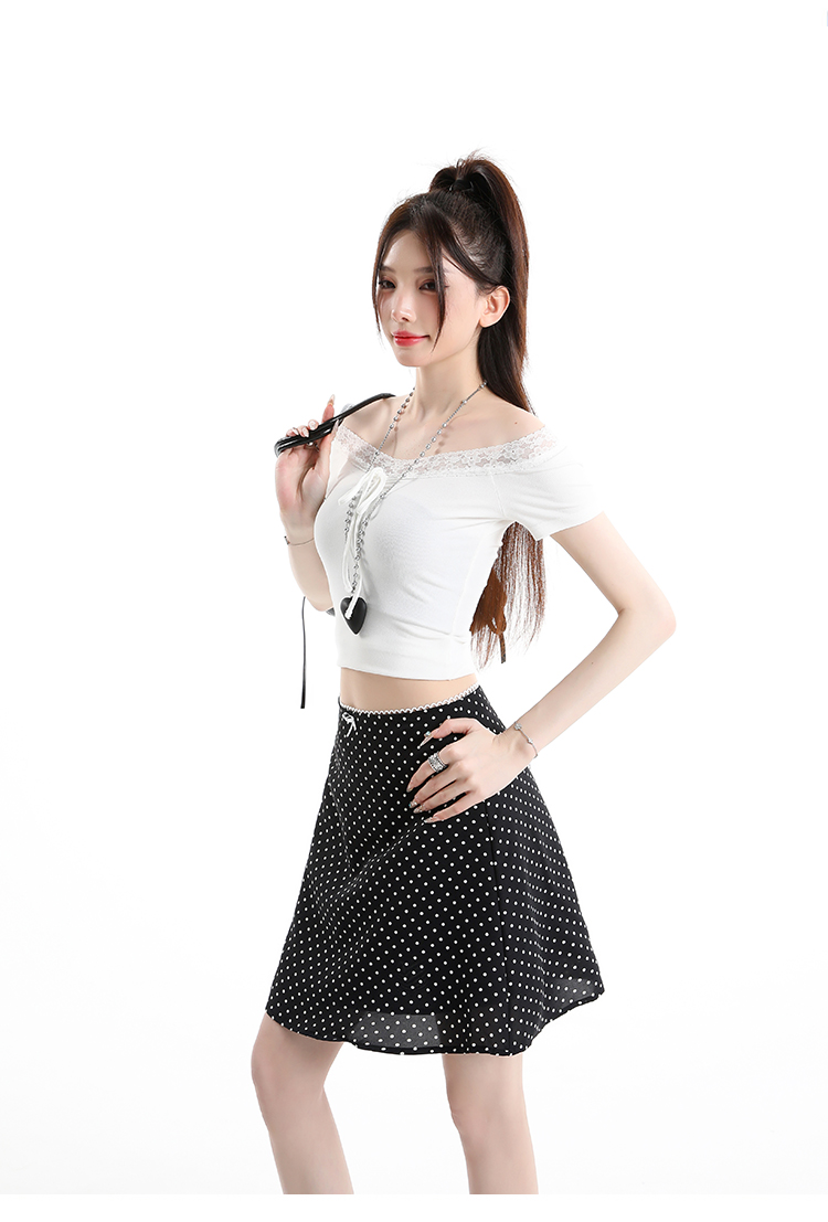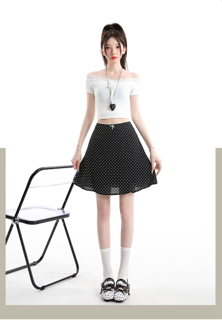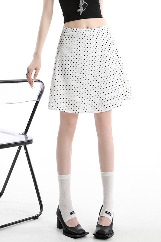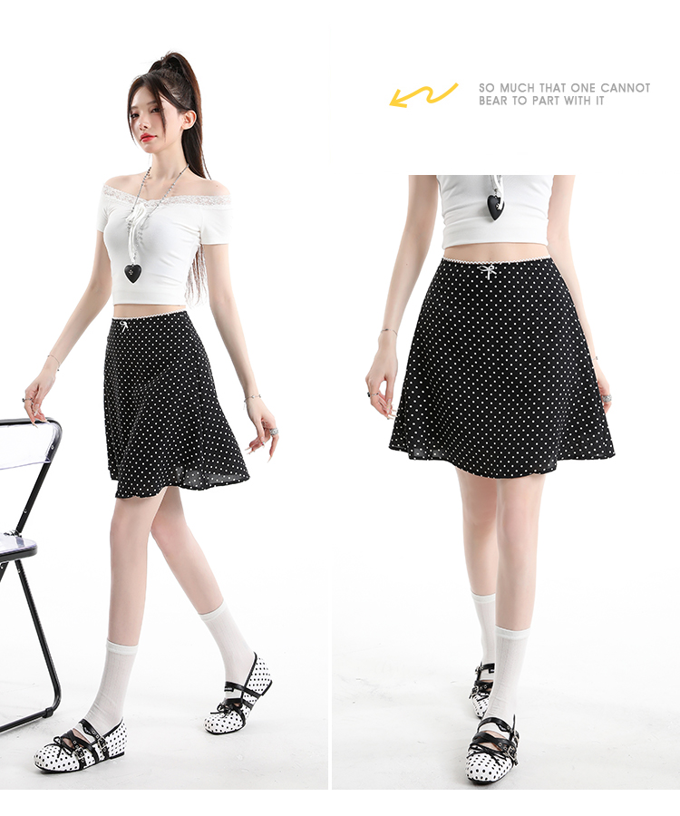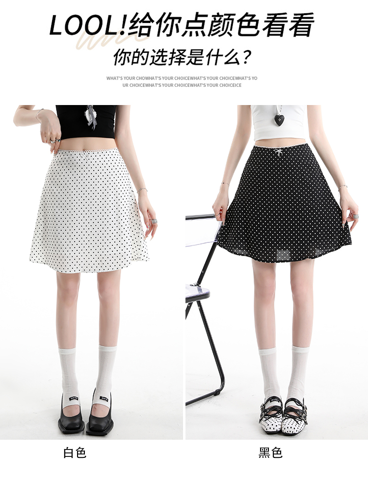 한 부서 도트 무늬 패치워크 레이스 프릴 반신 스커트 여성 여름 얇은 스타일 하이웨이스트 쉬폰 한 마디 표지 고기 인어 꼬리 스커트