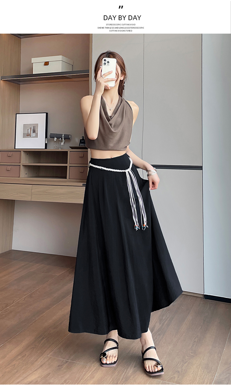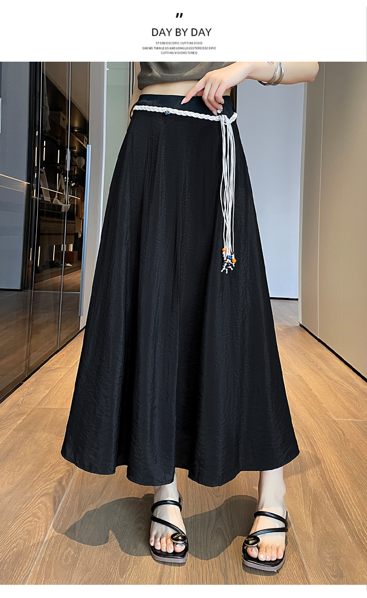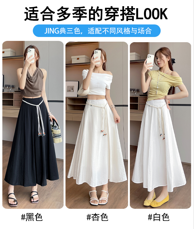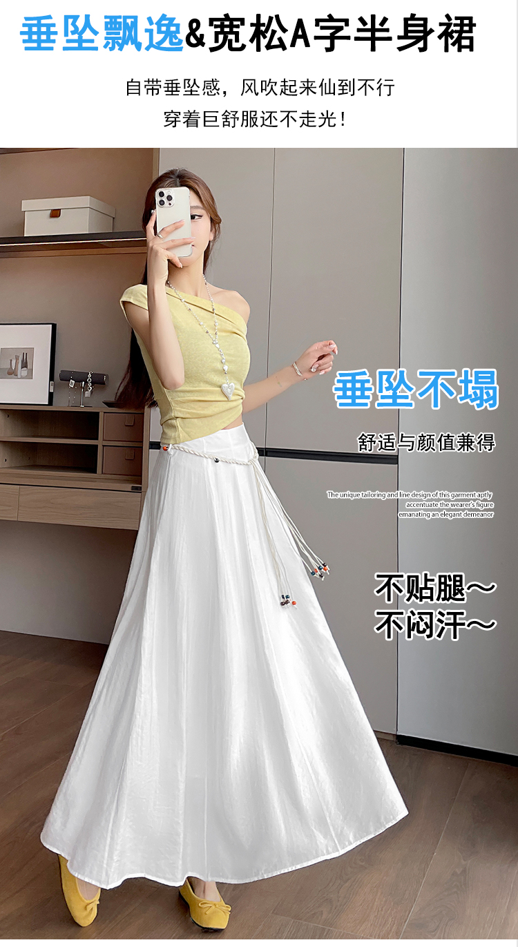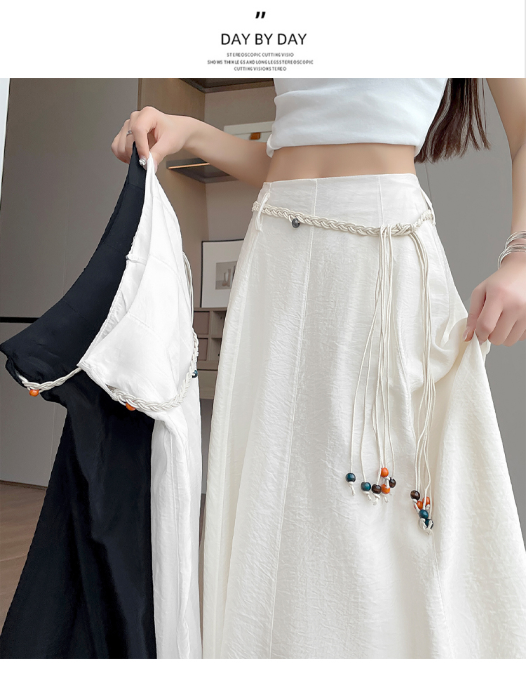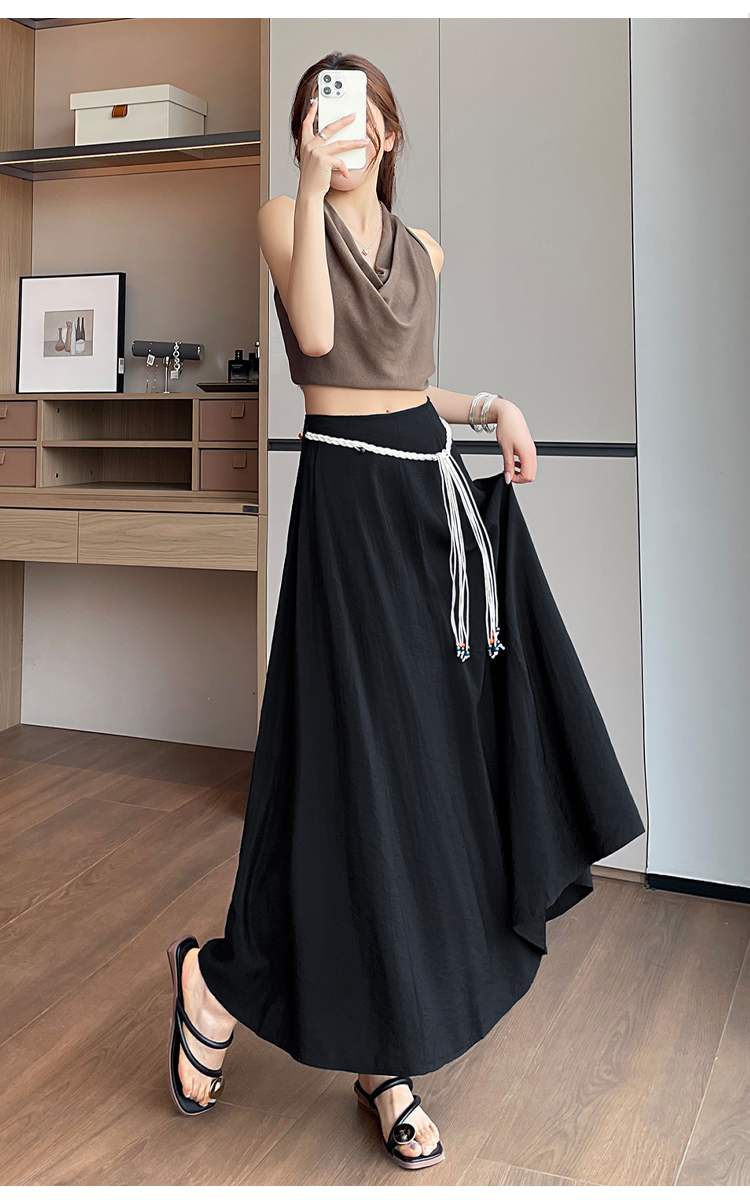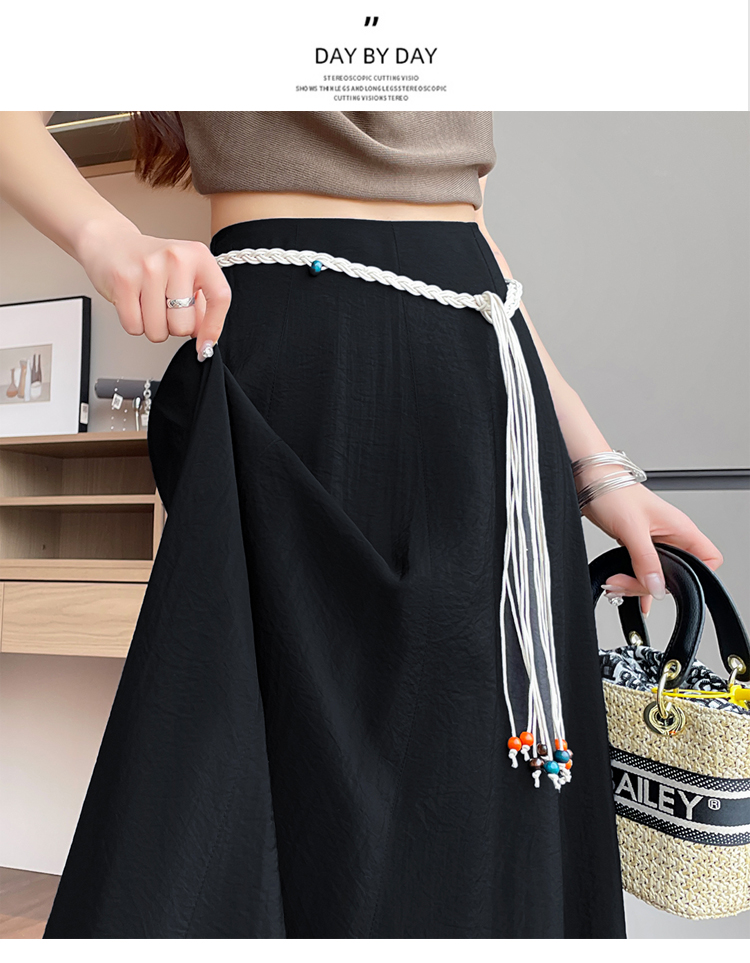 실사 질감 센스 한 마디 반신 스커트 2026 여름 하이웨이스트 슬림해 보이는 패션 다용도 레이스업 캐주얼 빅 플레어 스커트