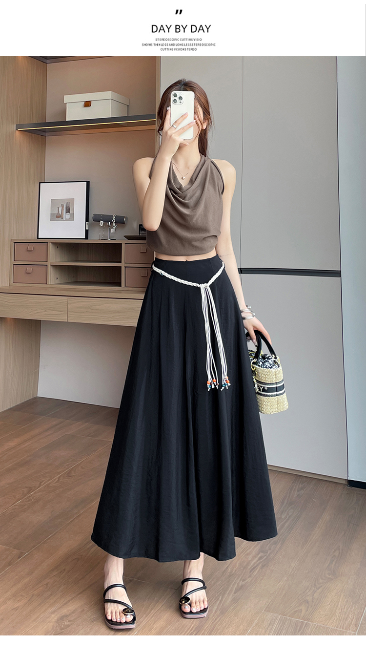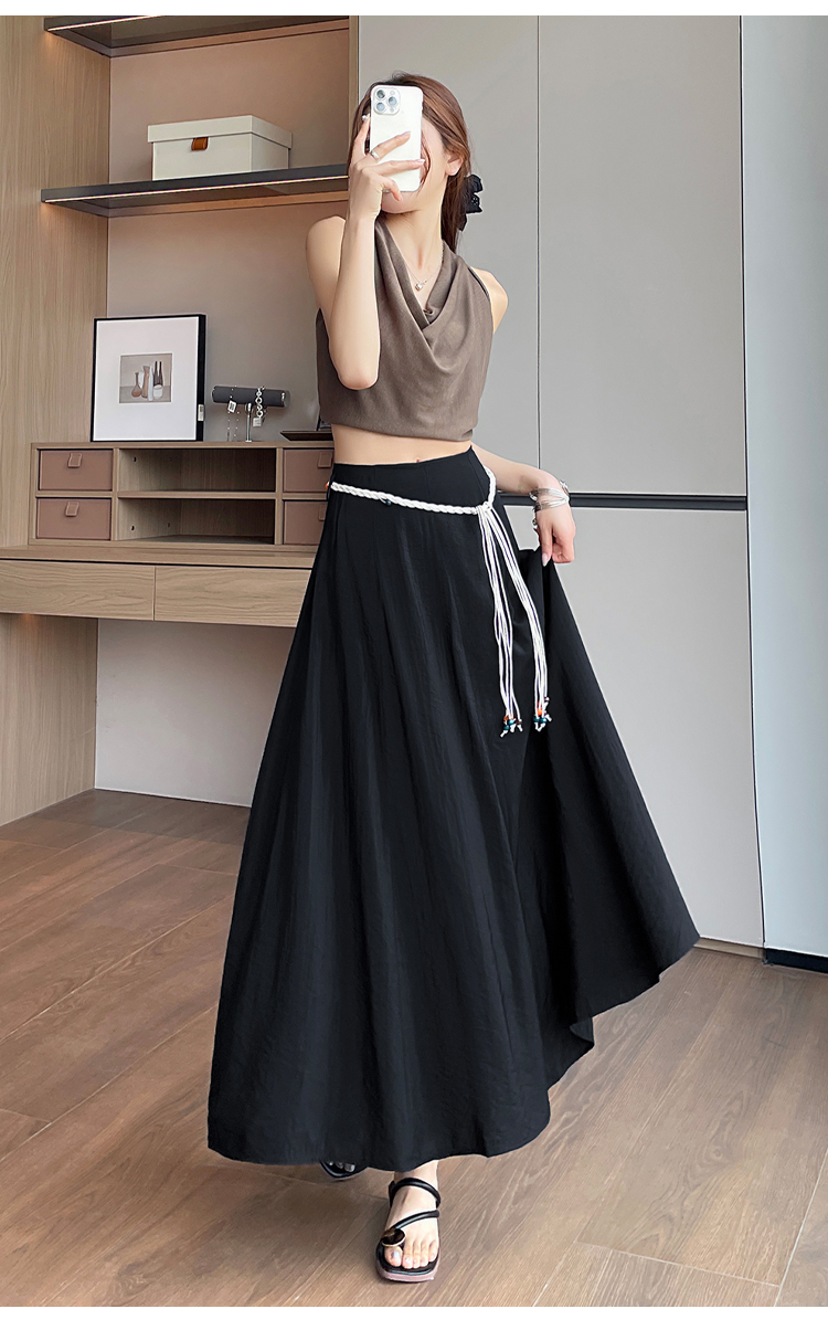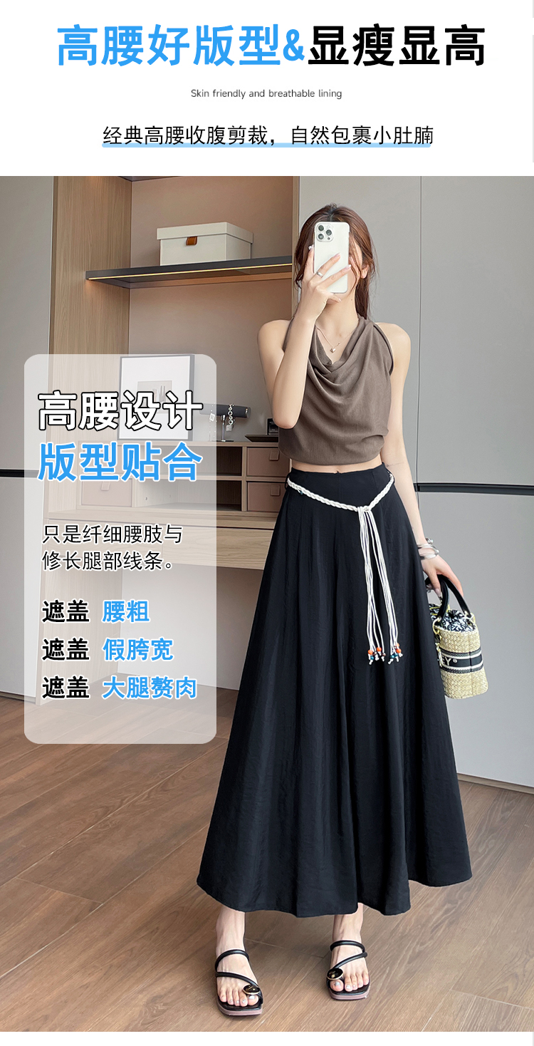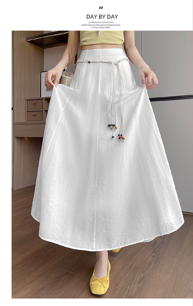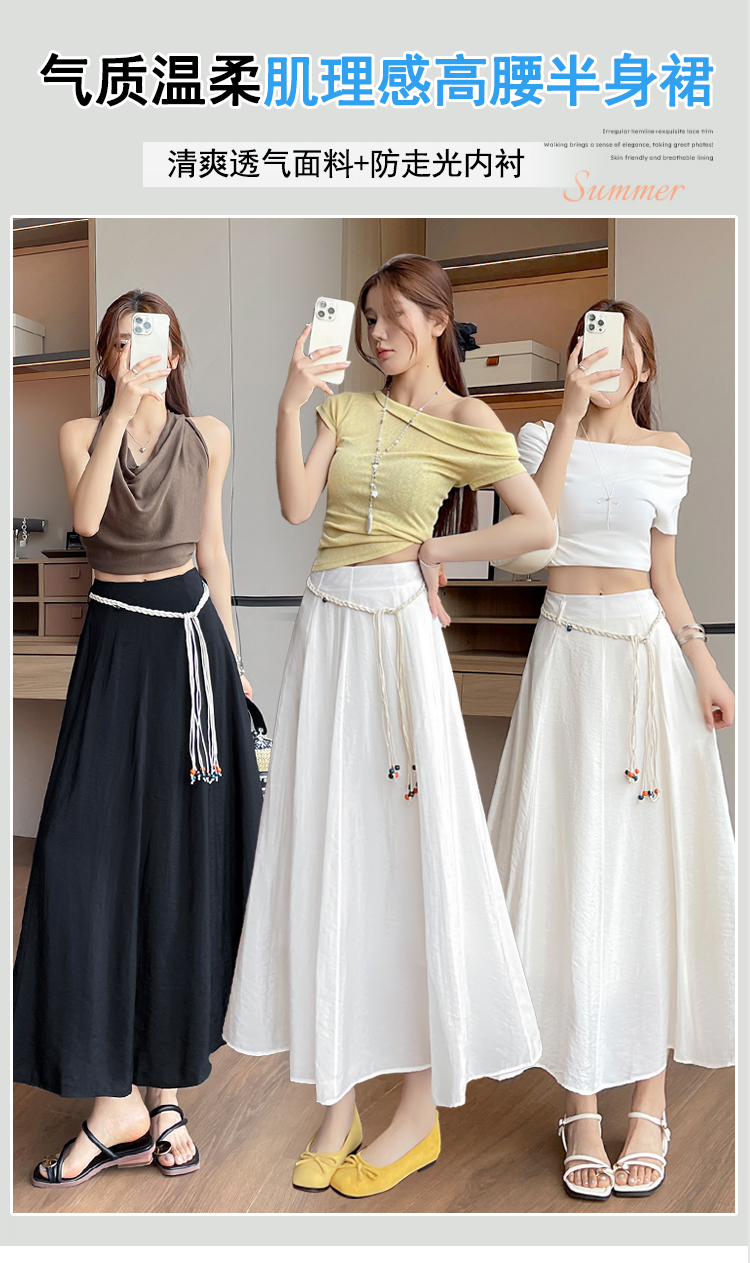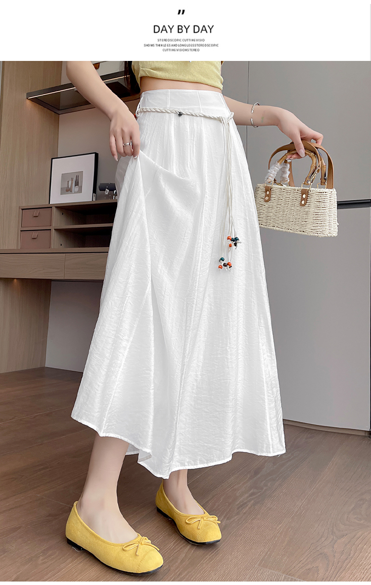 실사 질감 센스 한 마디 반신 스커트 2026 여름 하이웨이스트 슬림해 보이는 패션 다용도 레이스업 캐주얼 빅 플레어 스커트