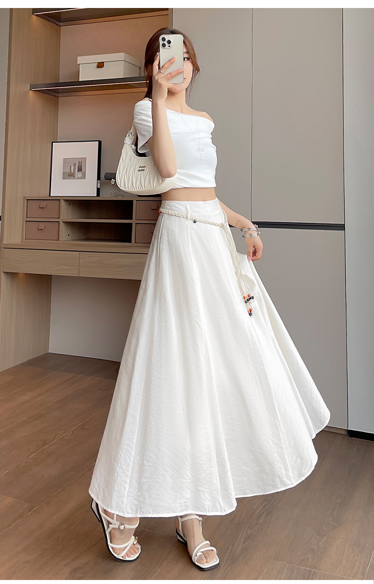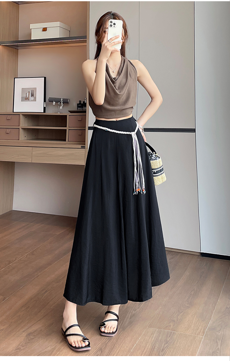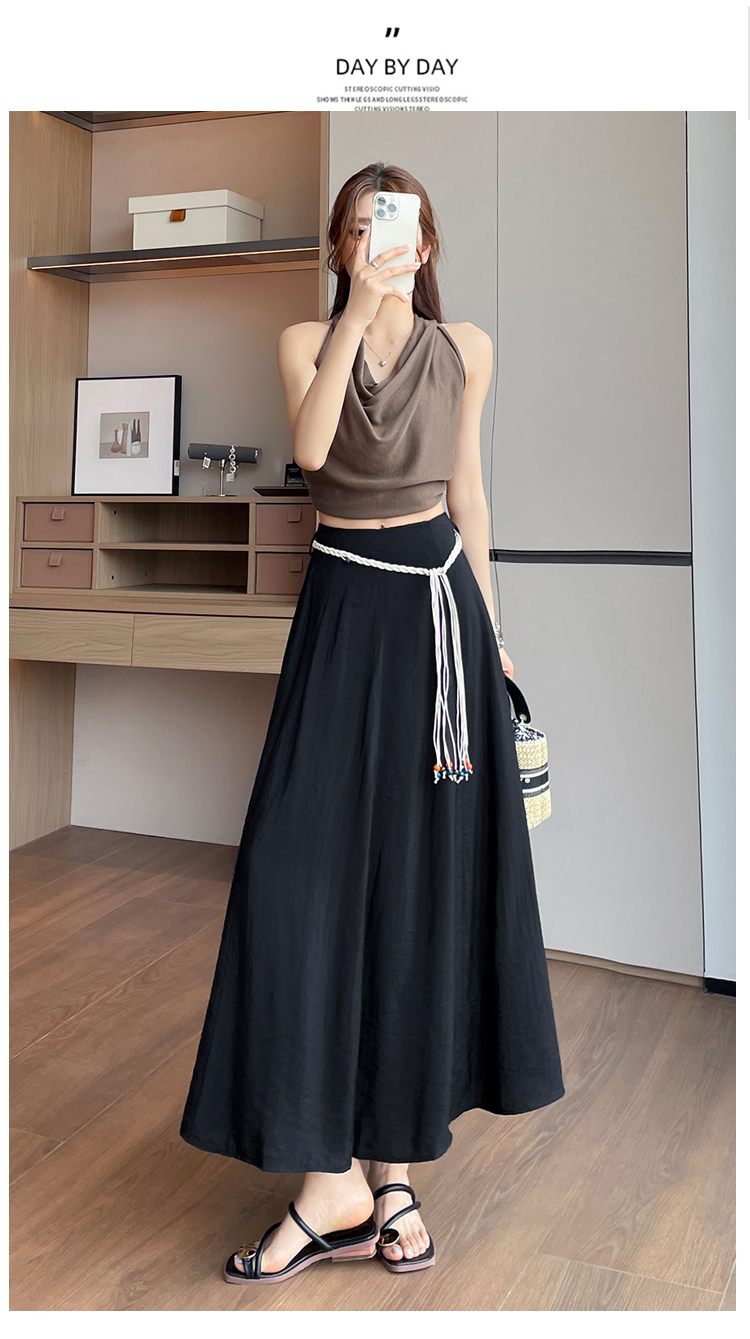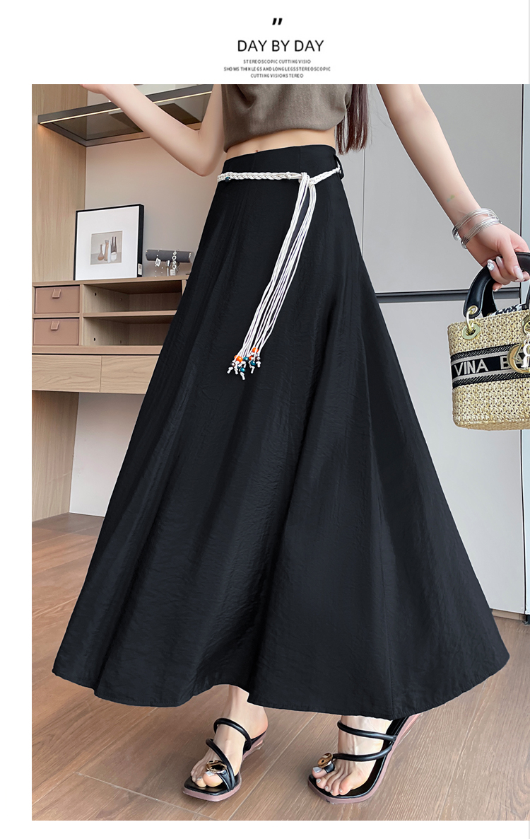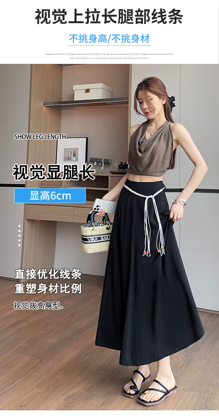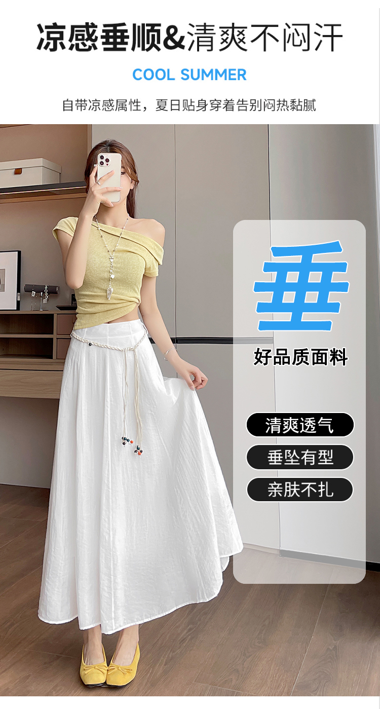 실사 질감 센스 한 마디 반신 스커트 2026 여름 하이웨이스트 슬림해 보이는 패션 다용도 레이스업 캐주얼 빅 플레어 스커트