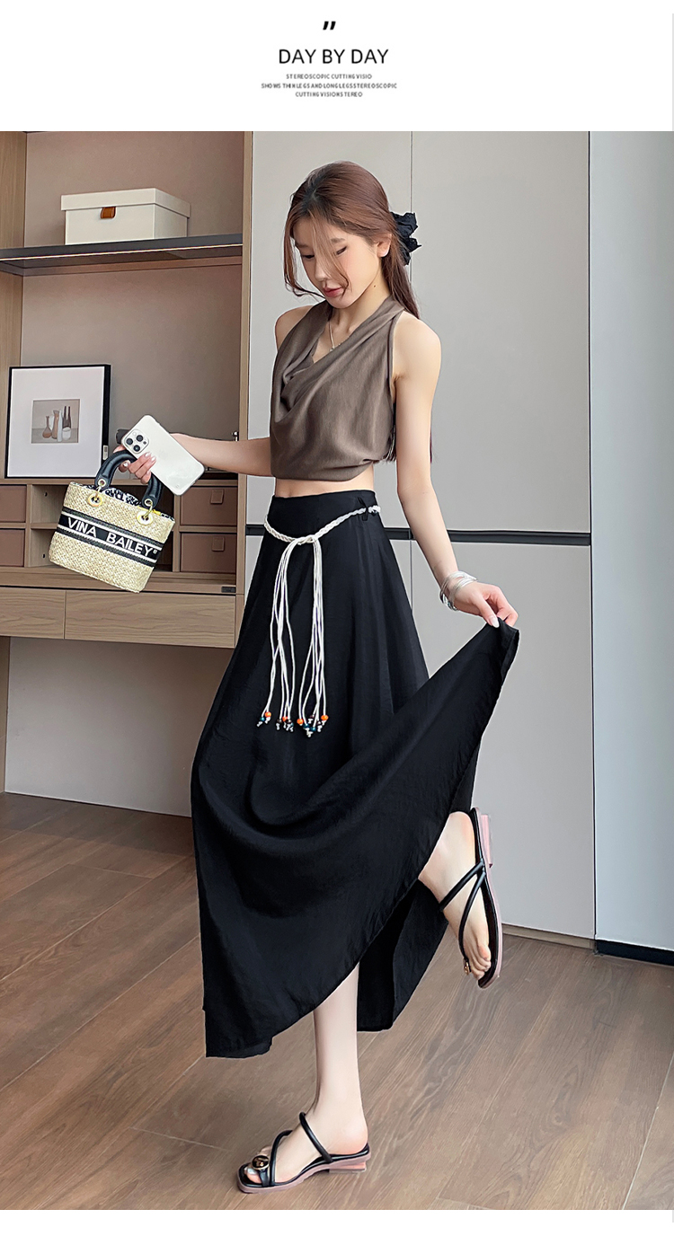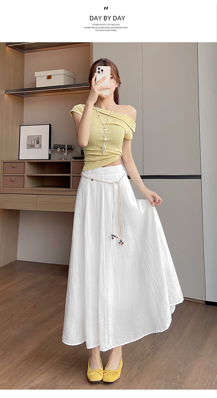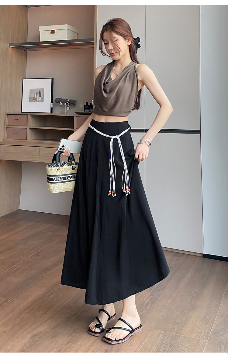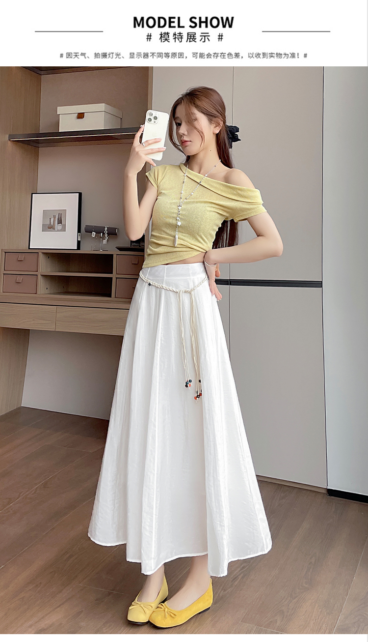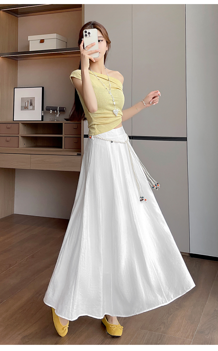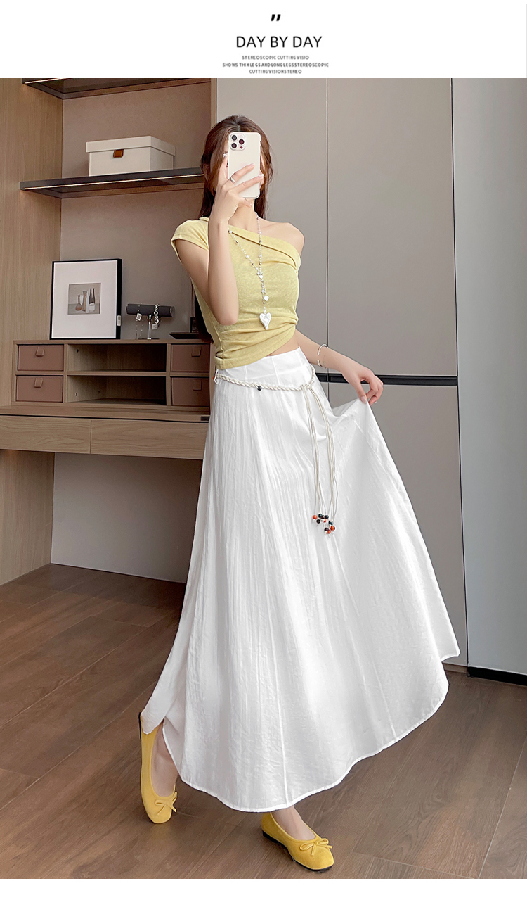 실사 질감 센스 한 마디 반신 스커트 2026 여름 하이웨이스트 슬림해 보이는 패션 다용도 레이스업 캐주얼 빅 플레어 스커트