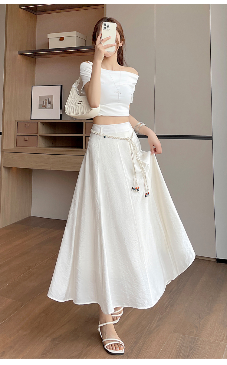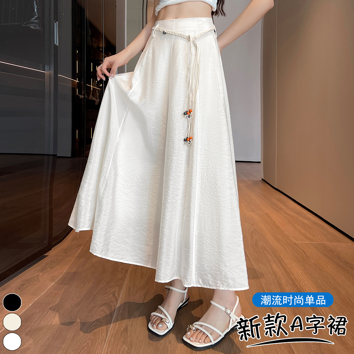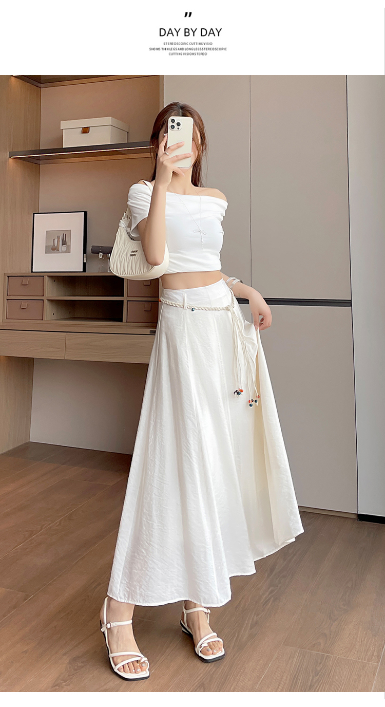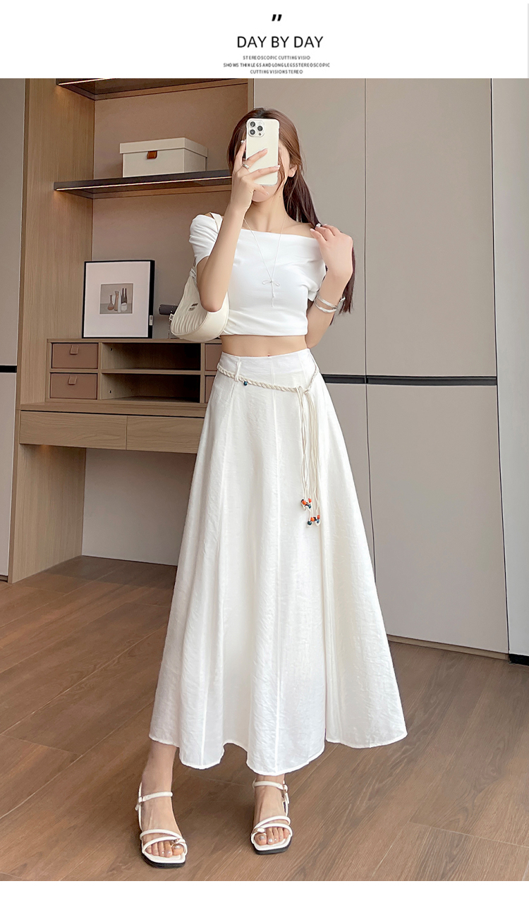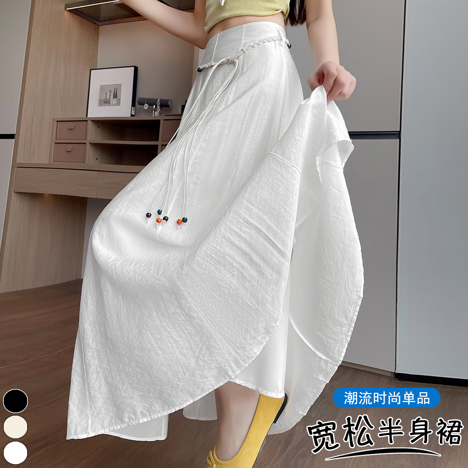 실사 질감 센스 한 마디 반신 스커트 2026 여름 하이웨이스트 슬림해 보이는 패션 다용도 레이스업 캐주얼 빅 플레어 스커트