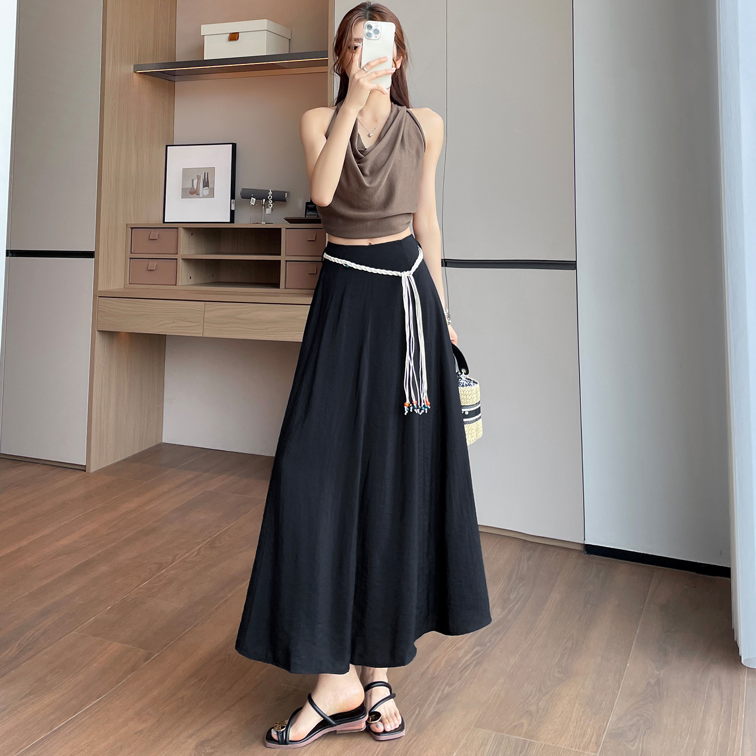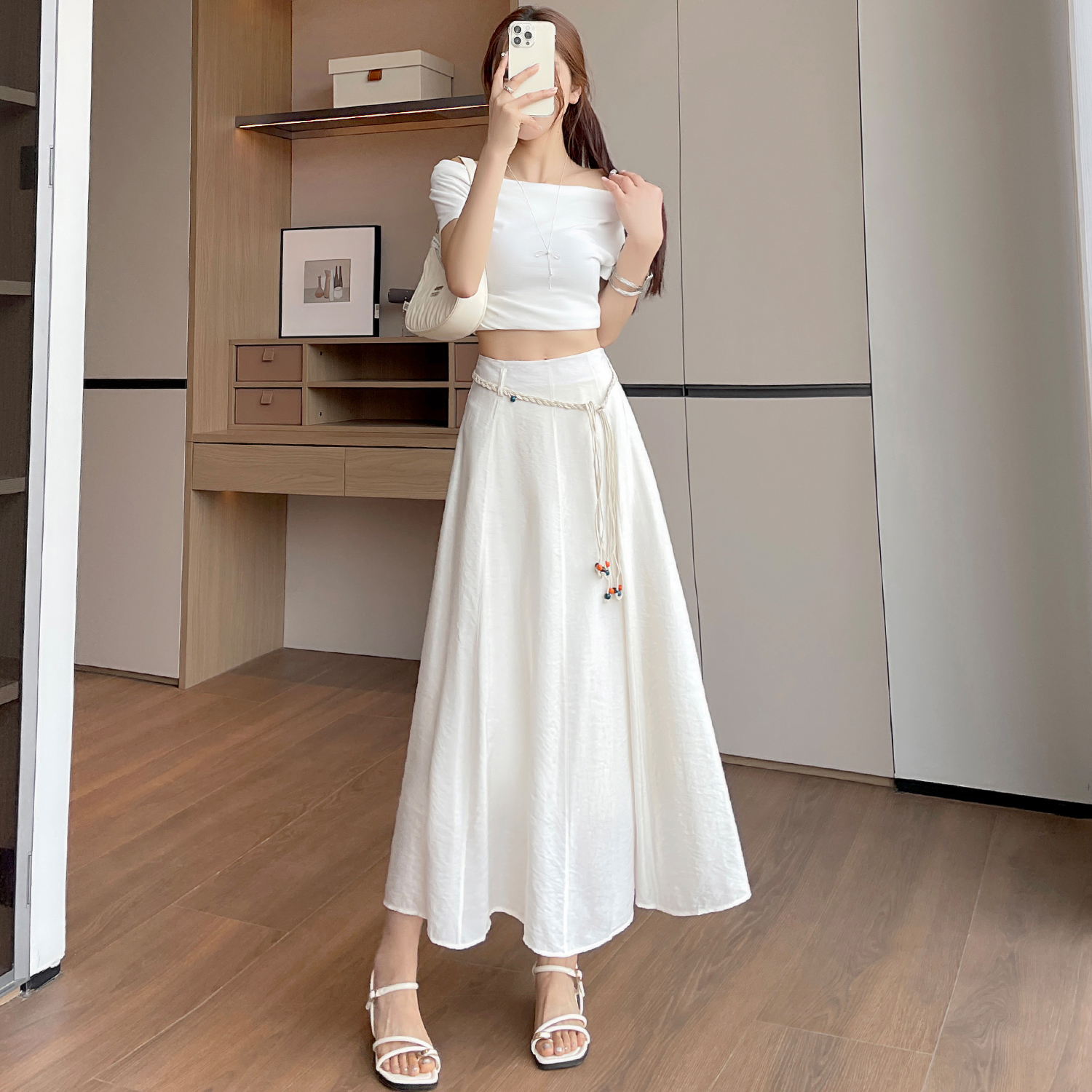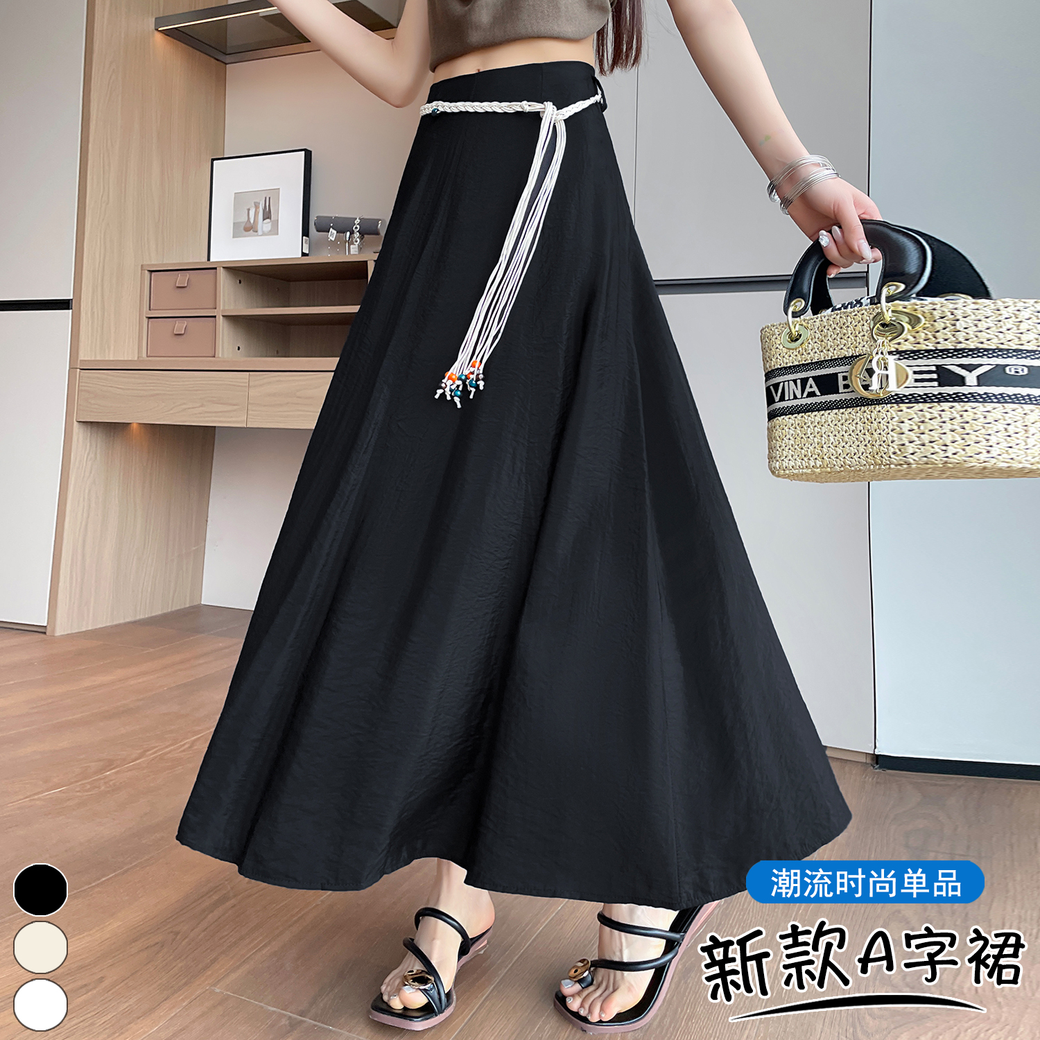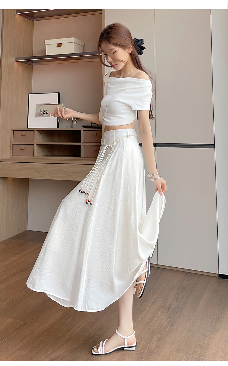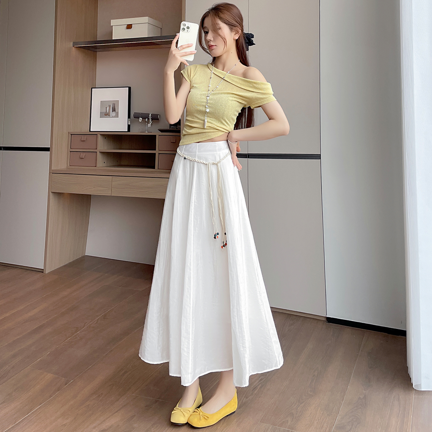 실사 질감 센스 한 마디 반신 스커트 2026 여름 하이웨이스트 슬림해 보이는 패션 다용도 레이스업 캐주얼 빅 플레어 스커트