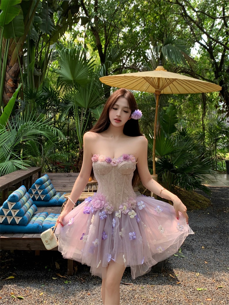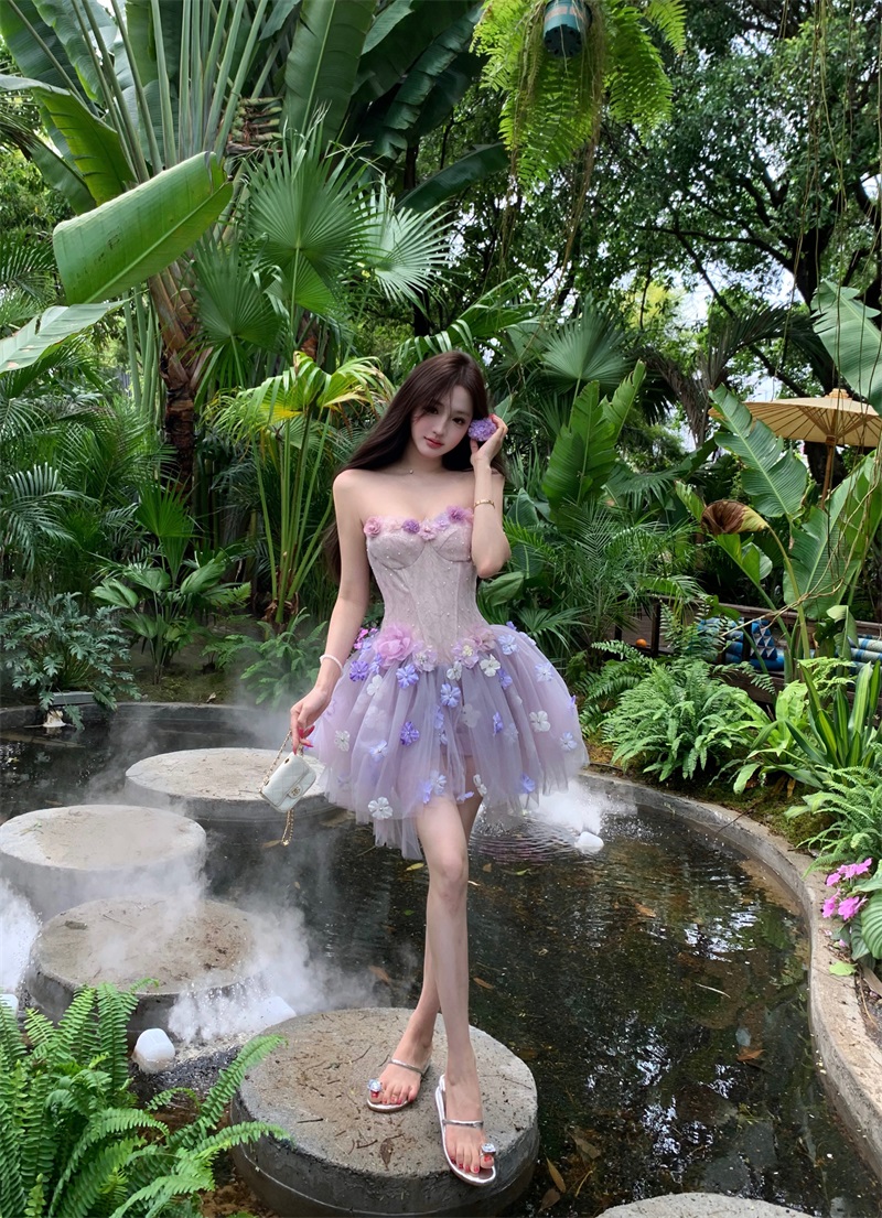 실사 정가 보라색 안개 요정 순수한 욕망 요정 가스 달콤함 3 차원 꽃 생선뼈 허리 수축 한 마디 퍼프 스커트