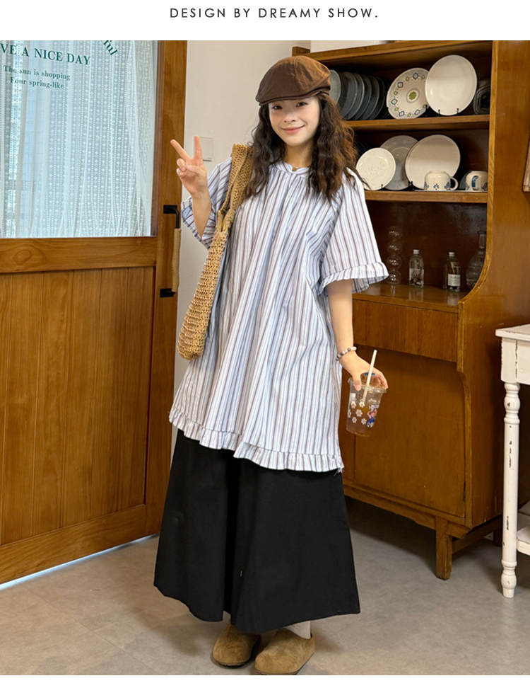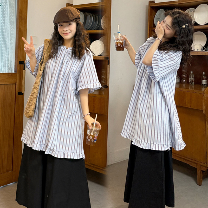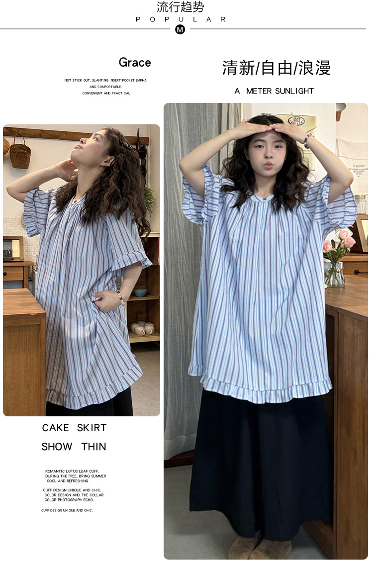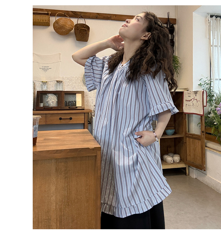 실사 2026 여름 드레스 새로운 스트라이프 루즈핏 반팔 셔츠 출산 착용