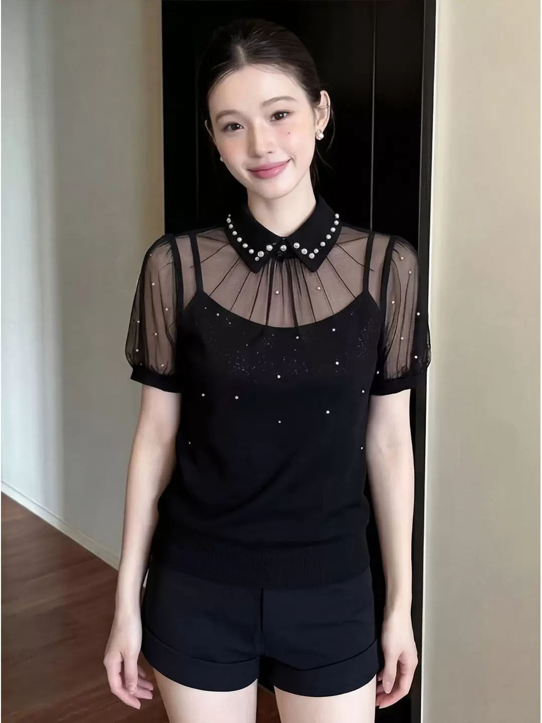 한 부서 ins 부드러운 달콤함 인형 폴로 칼라 작은 셔츠 여성 2026 여름 디자인 센스 연령 감소 몸매 가꾸기 다용도 셔츠