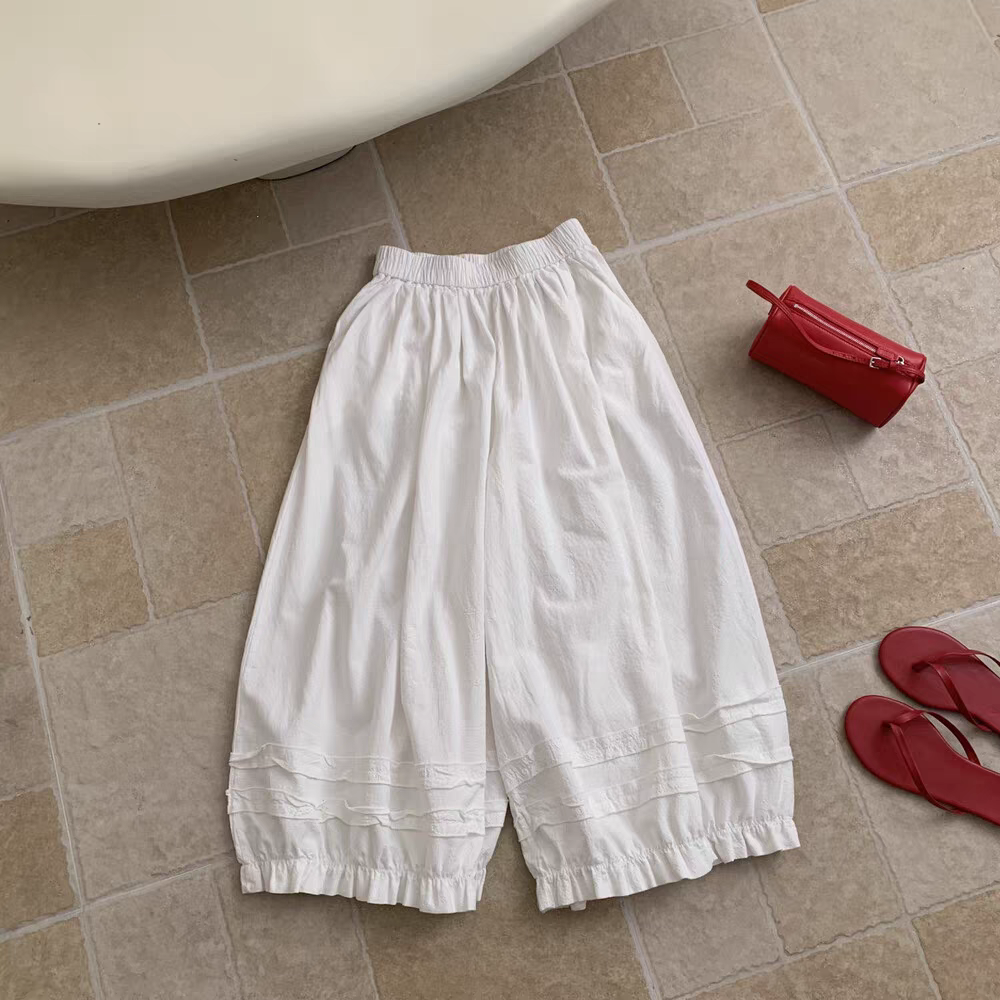 여름 섹션 새로운 프릴 도루 센스 와이드 레그 팬츠 캐주얼 바지 여성
