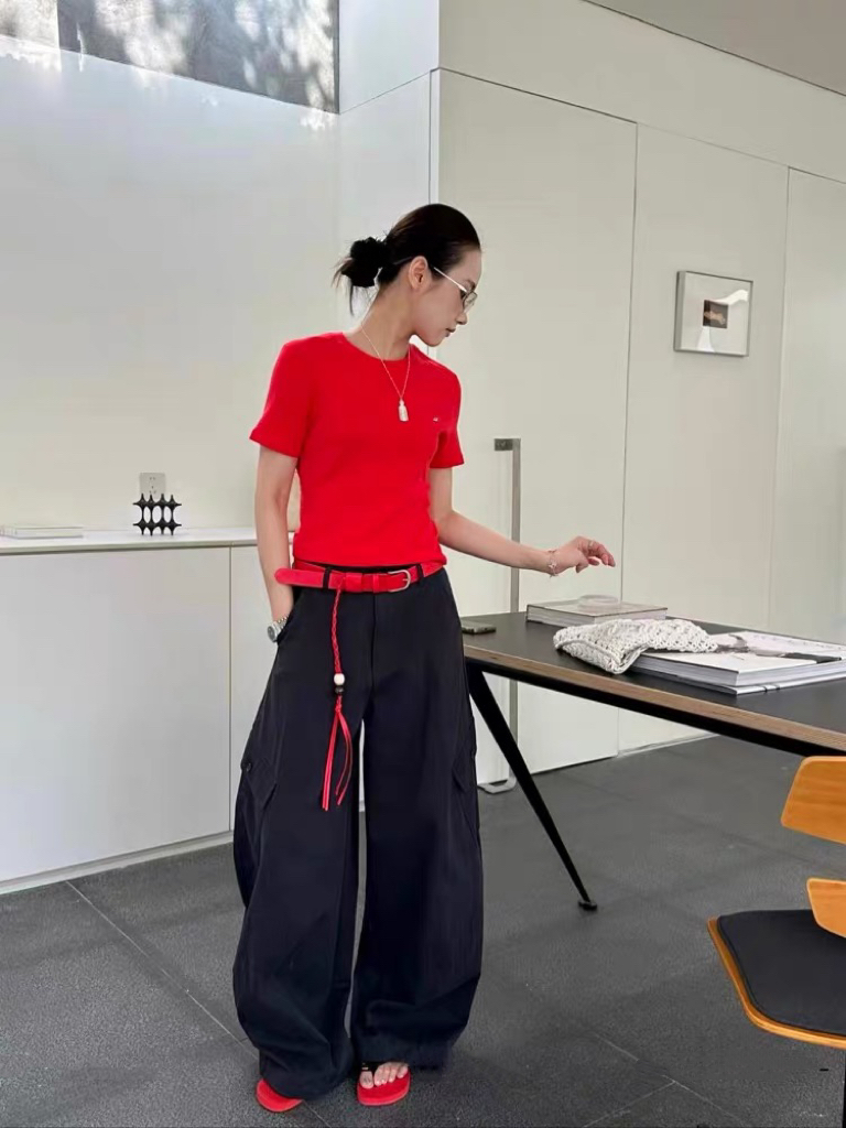 물리적 인지도 있음 업데이트 여름 섹션 새로운 미니멀리즘 일상 다용도 빛 사람들 센스 캐주얼 바지 와이드 레그 팬츠