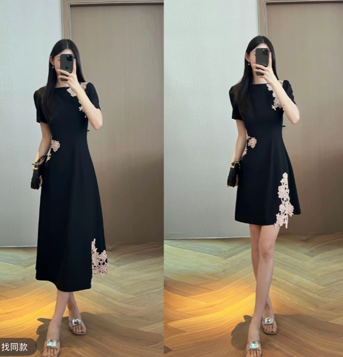 선적 중 망사 패치워크 드레스