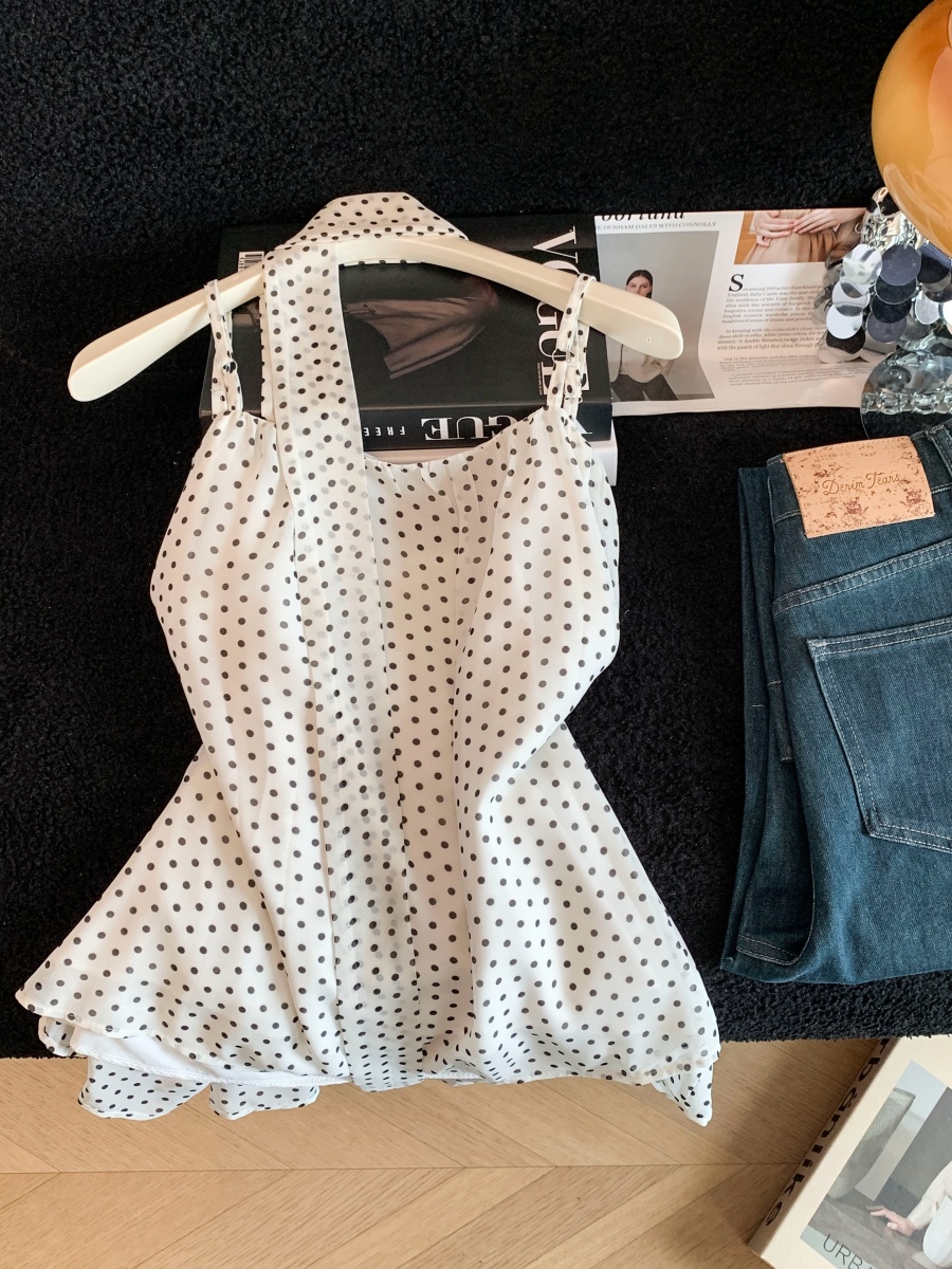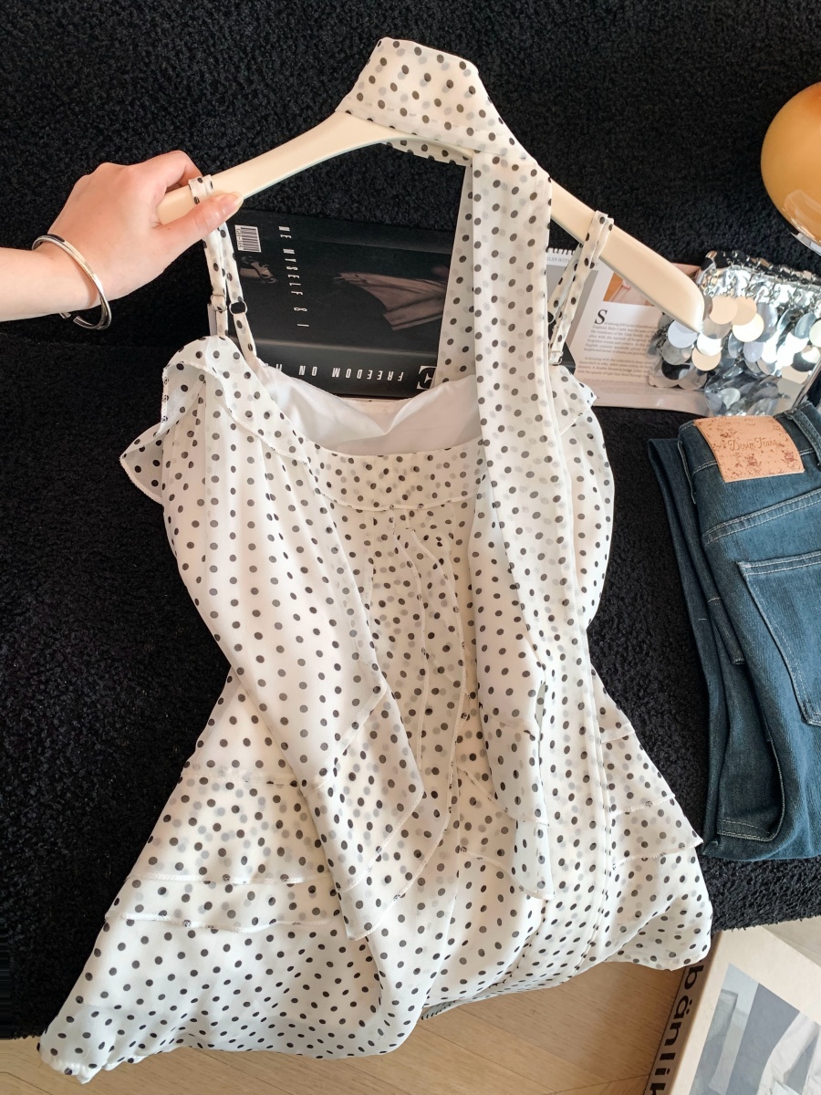 2026 여름 켜기 새로운 패션 한국 스타일 ins 트렌디 다용도 미니멀리즘 도트 무늬 불규칙 레이스 민소매 조끼 셔츠