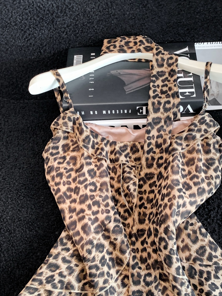 프랑스식 레트로 품격 순수한 욕망 바람 2026 핫걸 섹시함 불규칙 레오파드 무늬 슬립 맨위 여성 여름