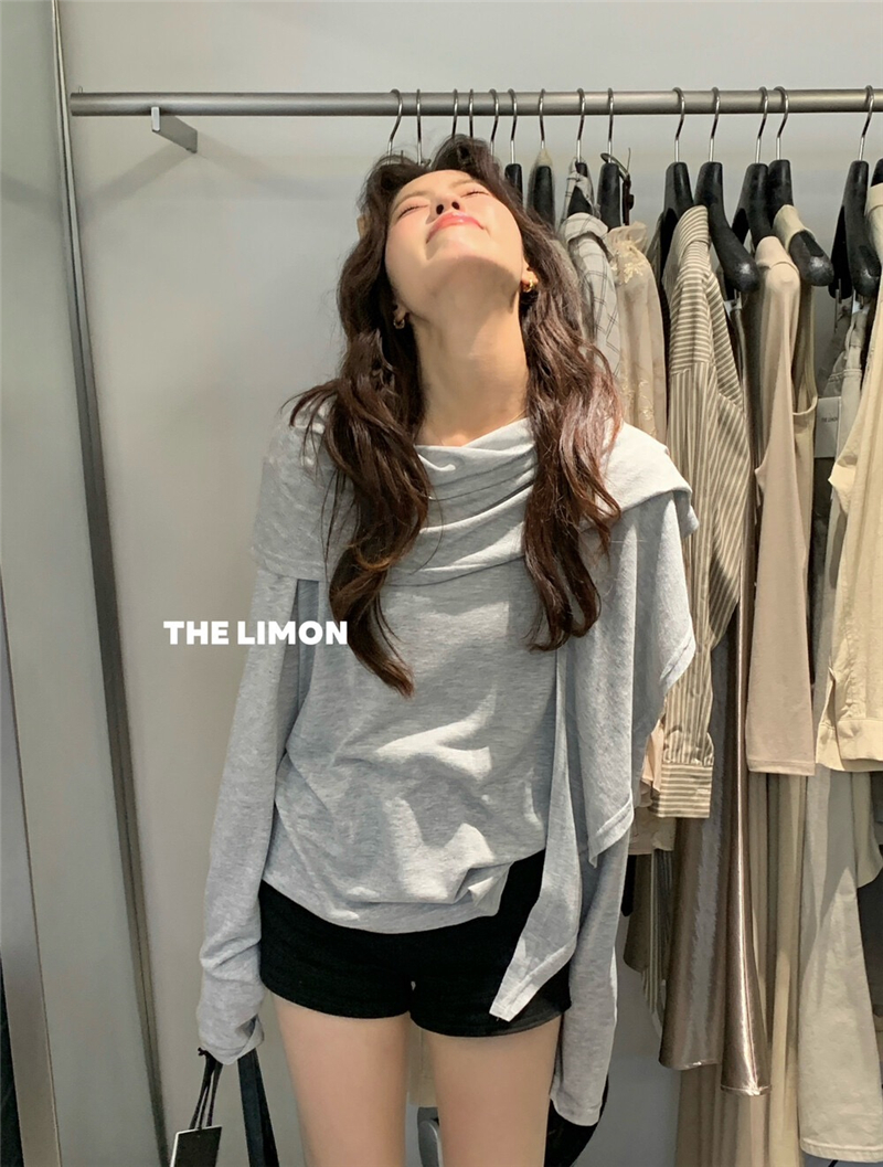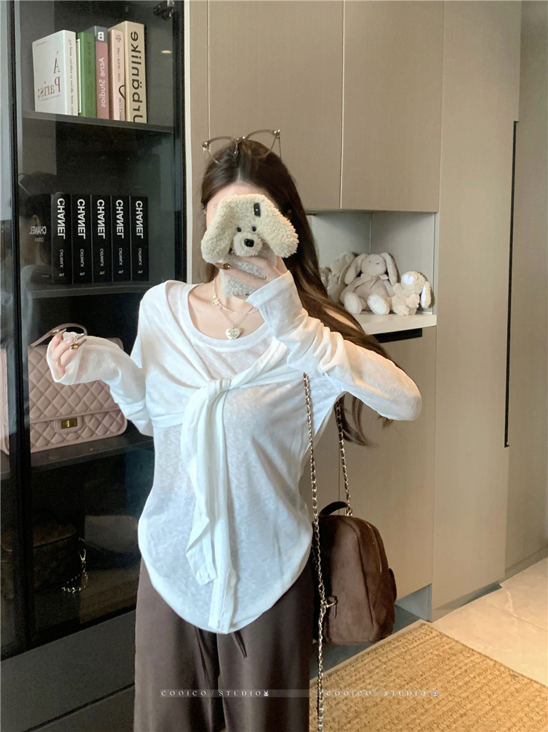 실사 정가 순수한 욕망 부드러운 흔들다 칼라 불규칙 반팔 티셔츠 슬림해 보이는 다용도 페이크 레이어드 맨위 경기 리본