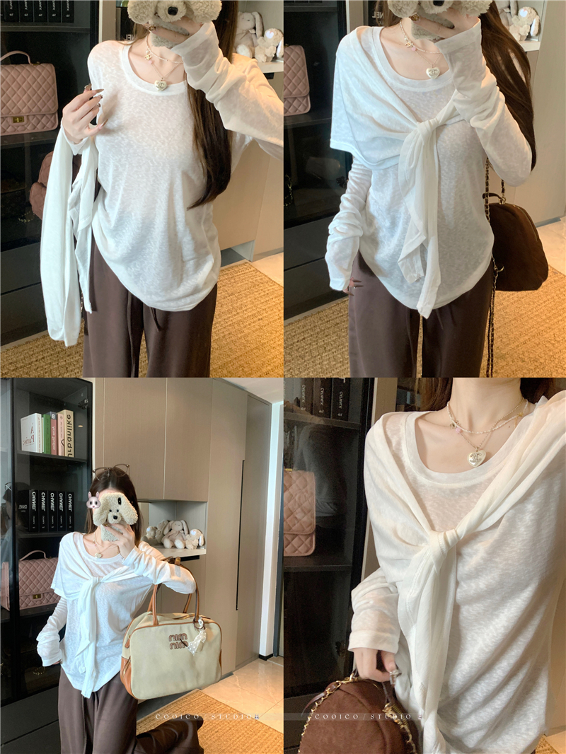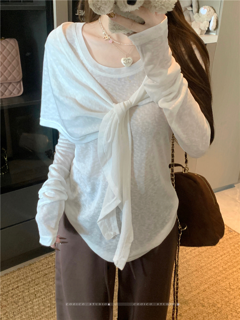 하트 비트 ~ 중 offer 하얀 달빛 동반자 나만의 것을 가져와 라. 잃어버린 초점 센스 망사 비스듬한 어깨 몸매 가꾸기 니트 작은 셔츠