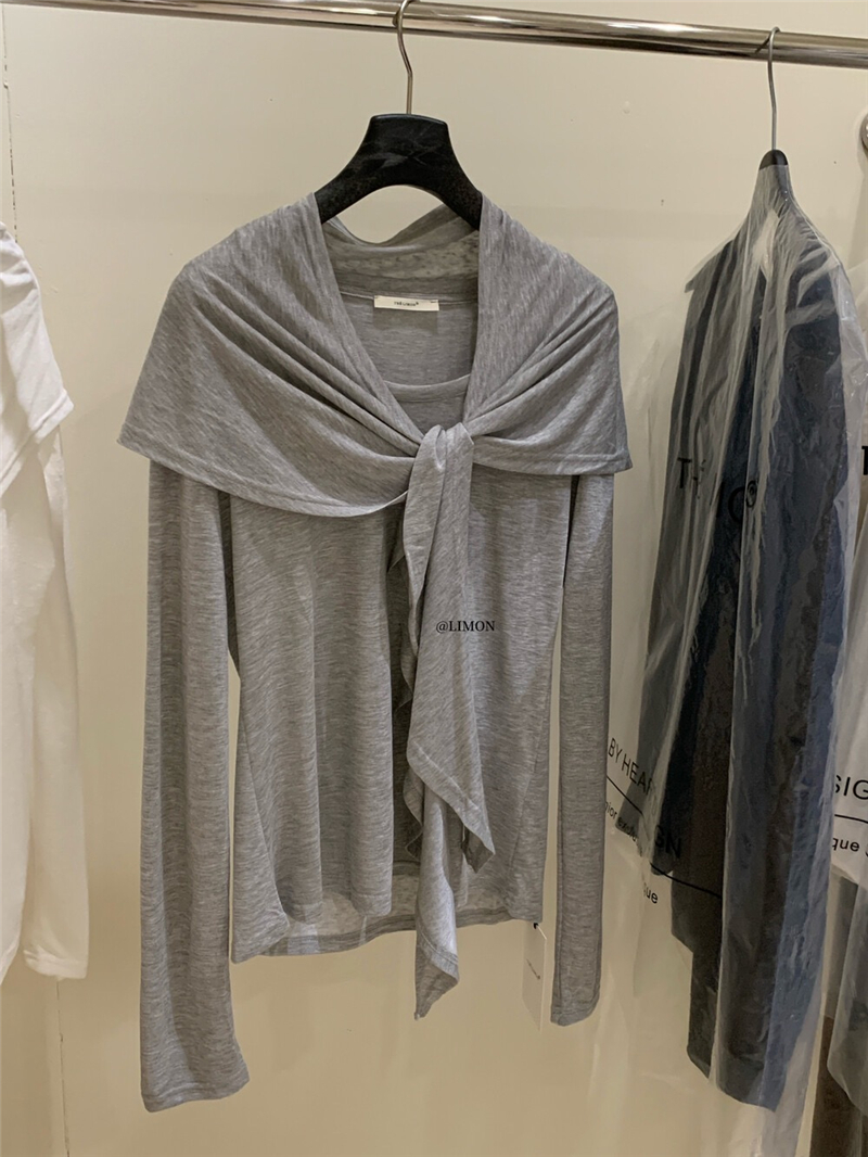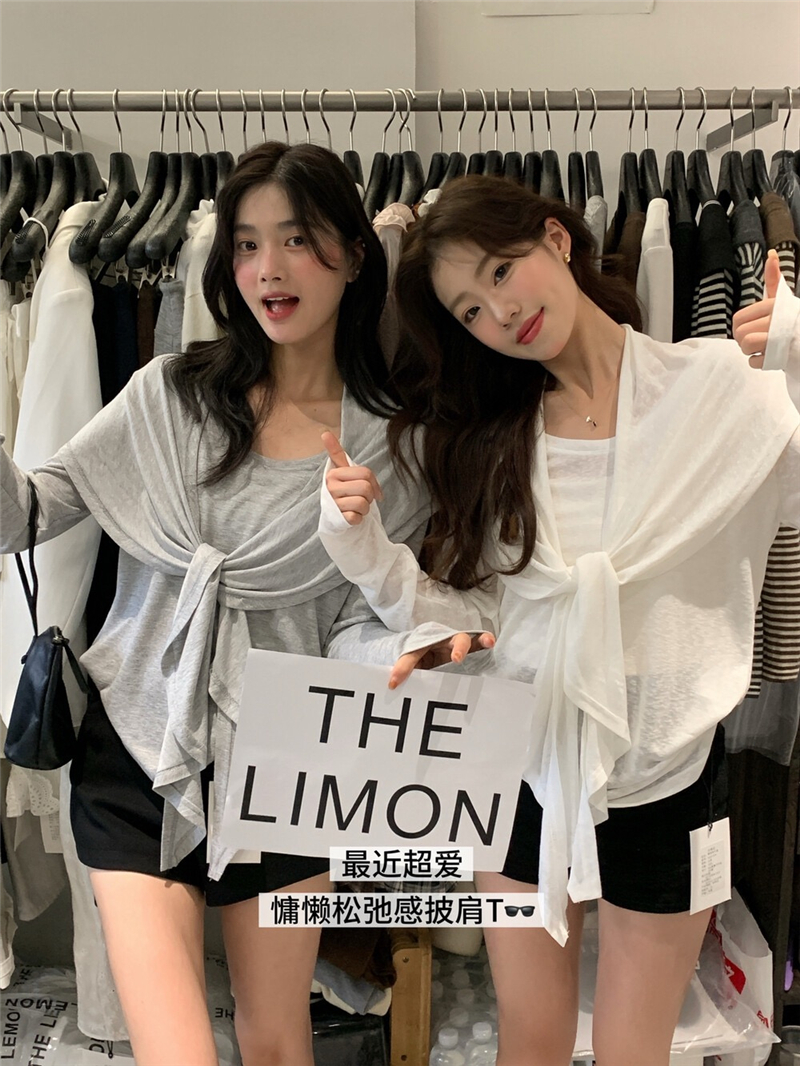 부드럽다 프로 피부 레몬 녹차 비스듬한 어깨 리본 디자인 센스 슬림해 보이는 반팔 티셔츠 리본 아니요 철거