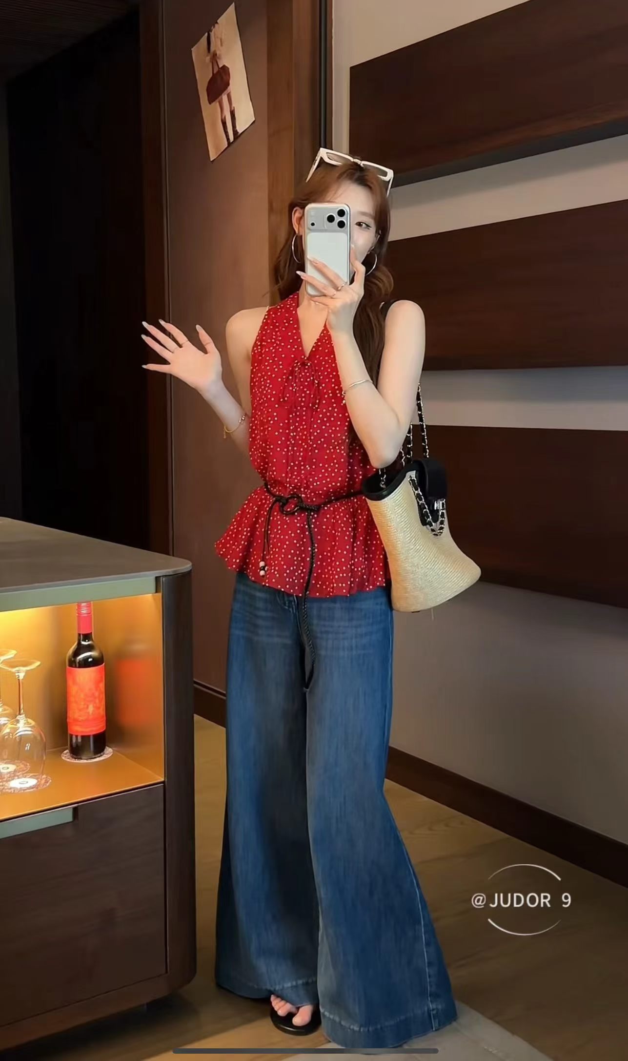 한국 동대문 여성 의류 2026 봄 여름 레이스 레이스 슬립 허리 수축 니트 반팔 흔들다 칼라