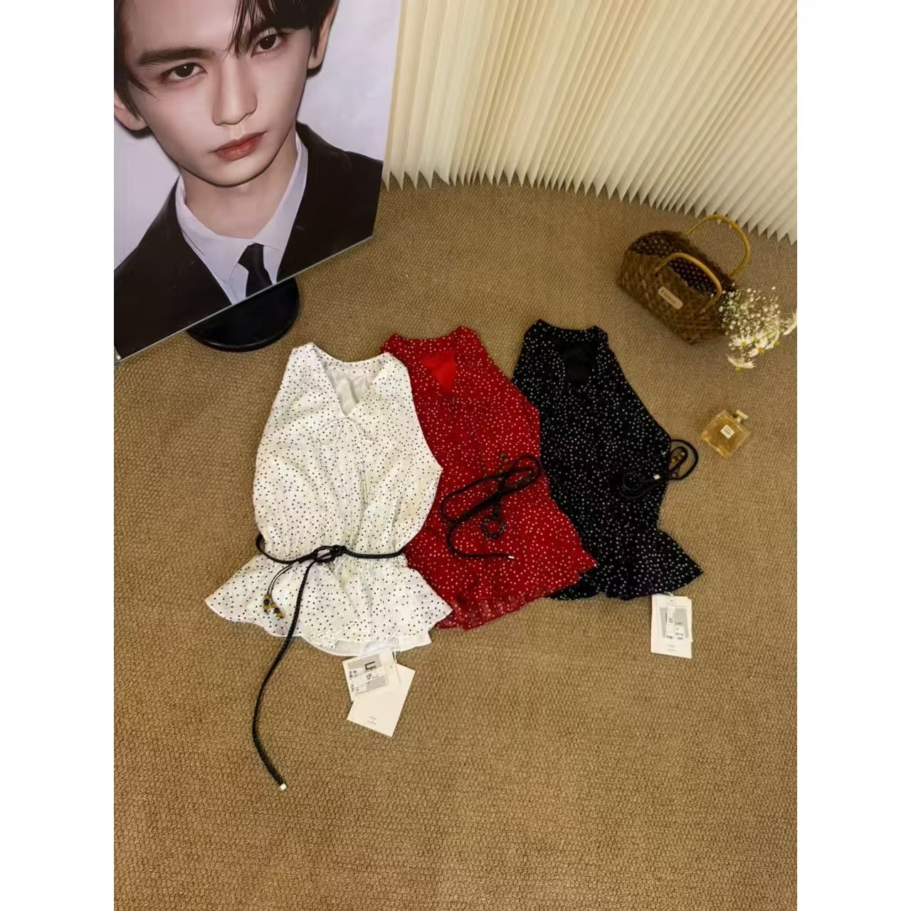 2026 봄 새로운 고급 센스 프랑스식 작은 셔츠 쇼트 스타일 셔츠 도트 무늬 반 스커트 투피스 세트