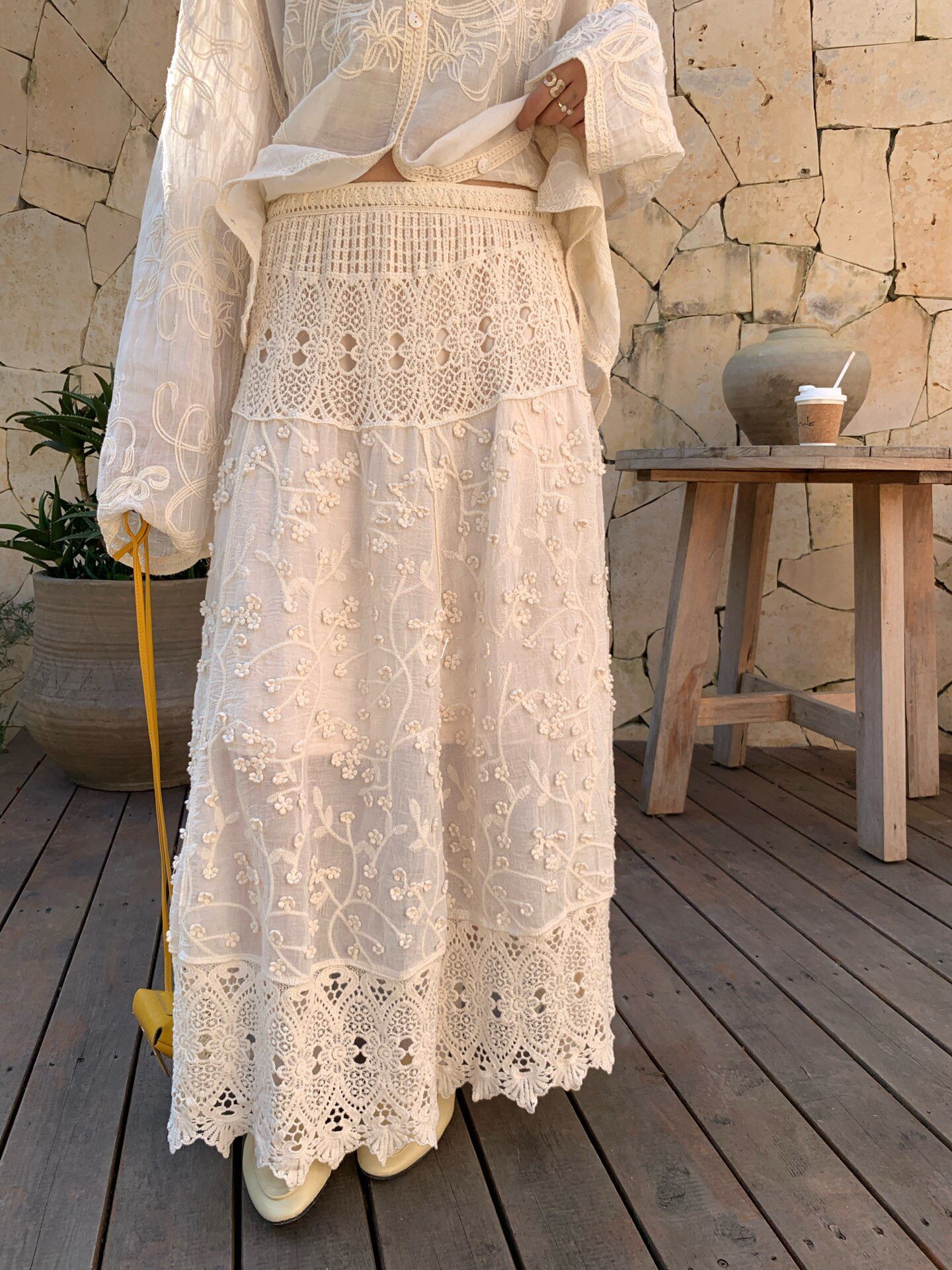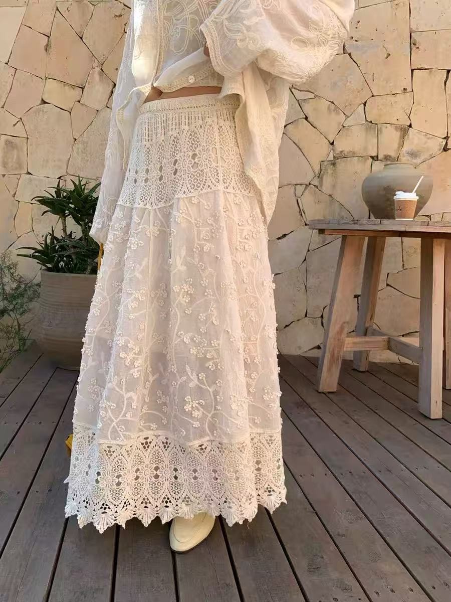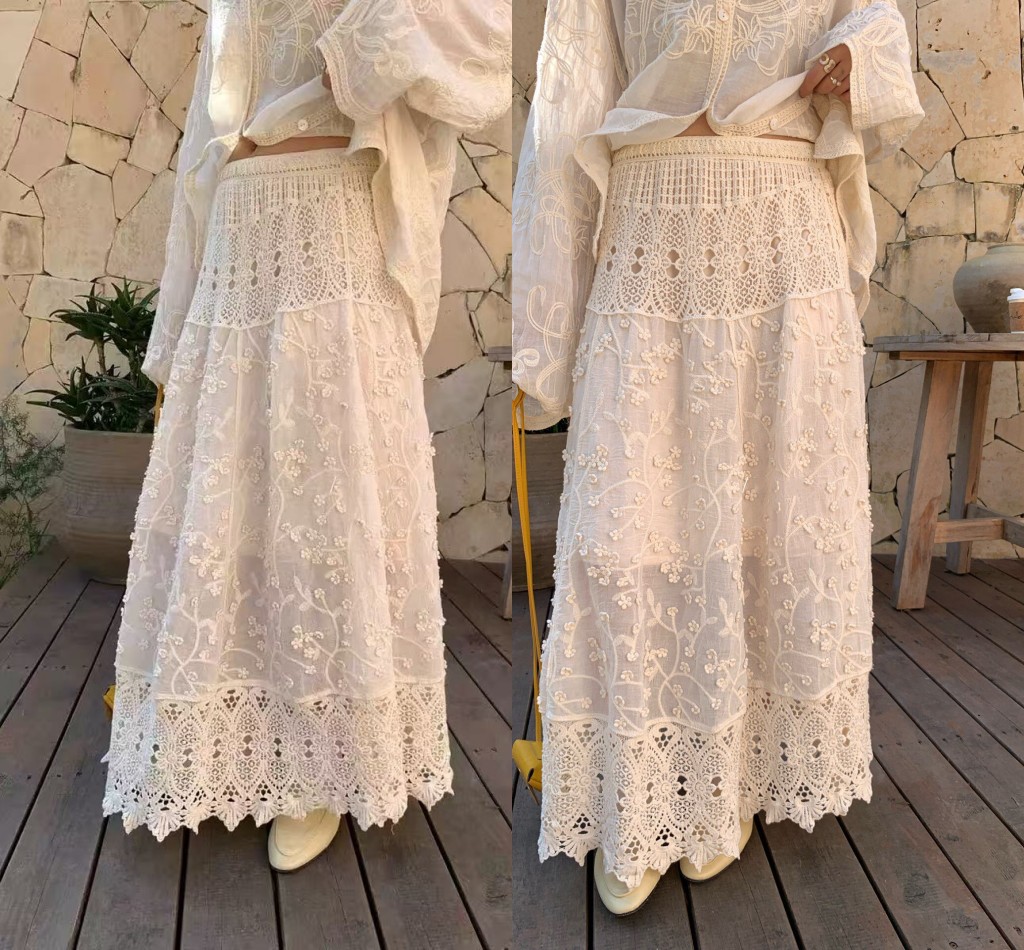 화이트 레트로 허리밴드 자수 캐주얼 바지 2026 새로운 프랑스식 다용도 휴가 바람 홀로우 아웃 스트레이트 팬츠