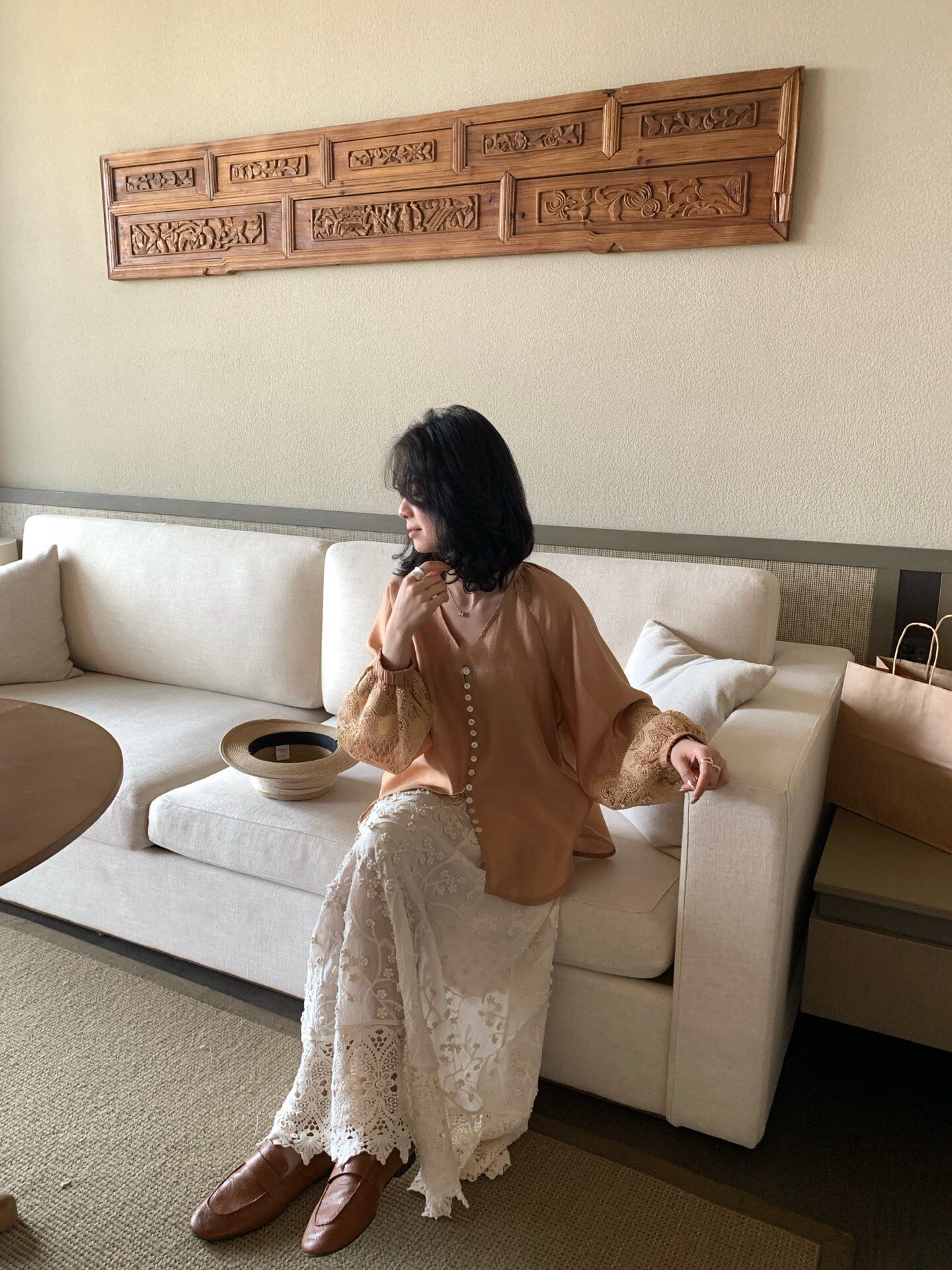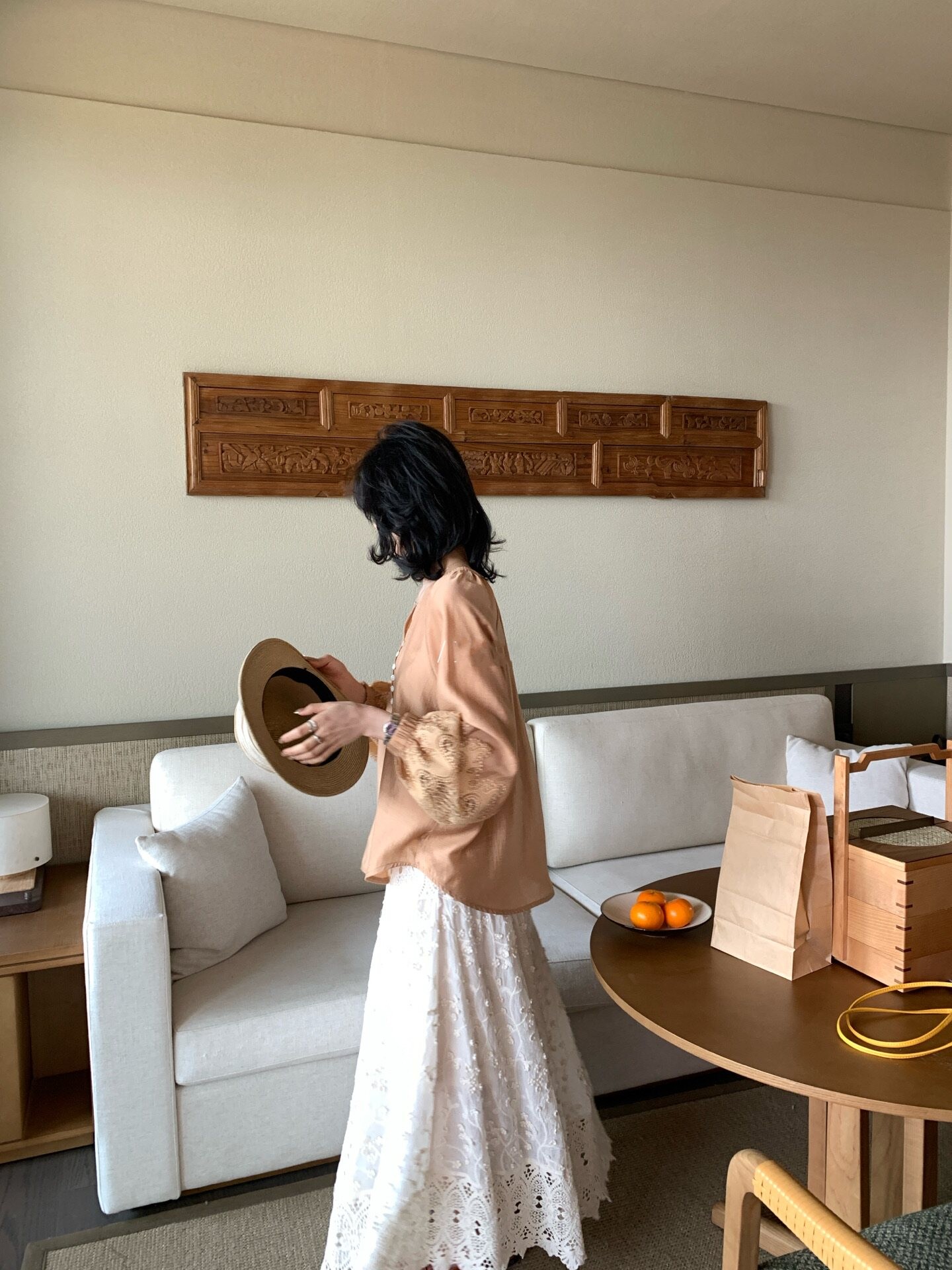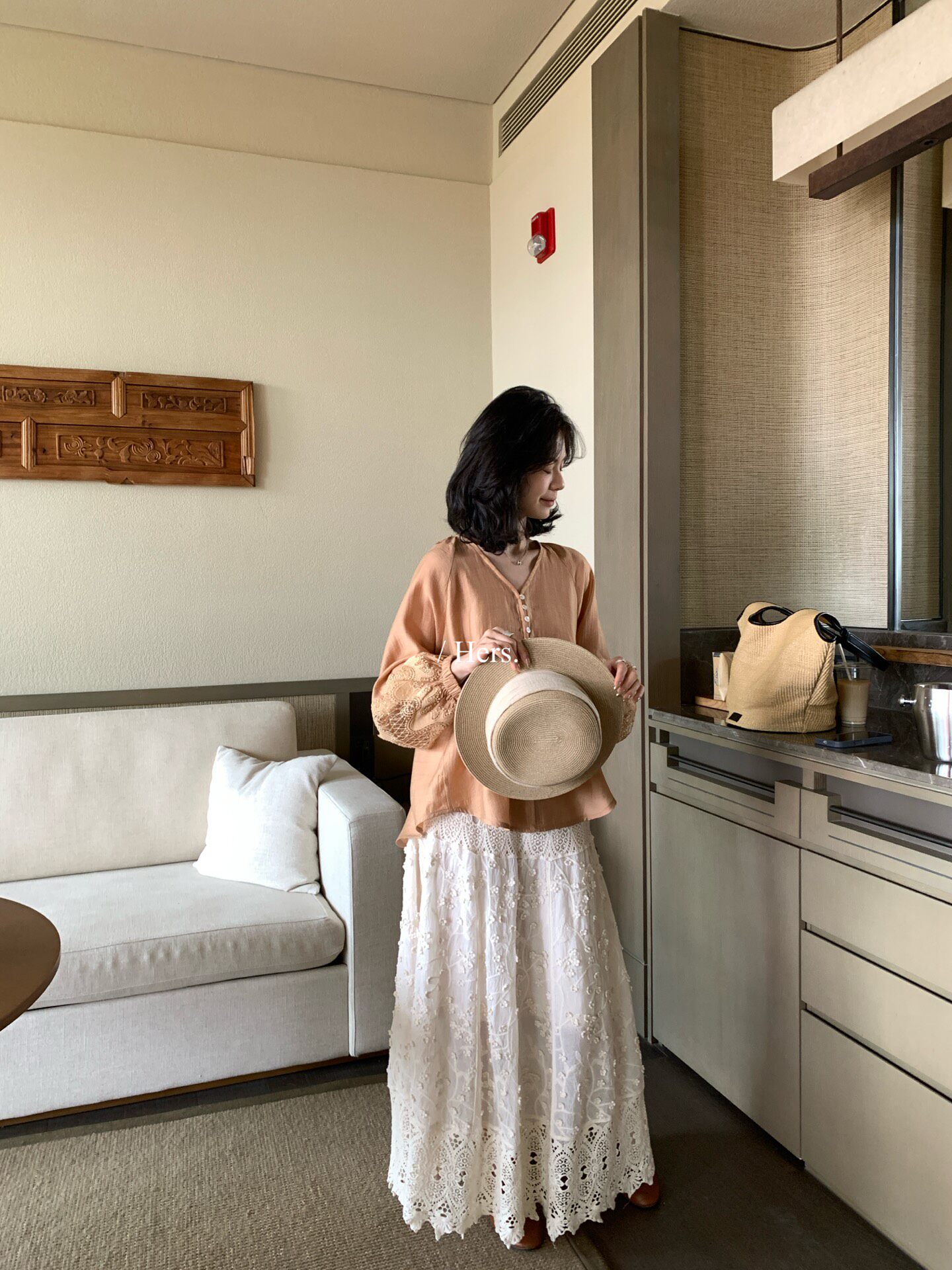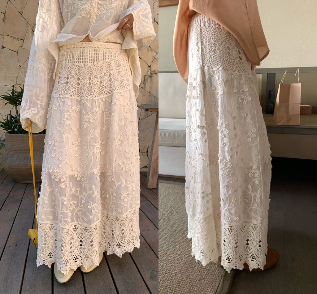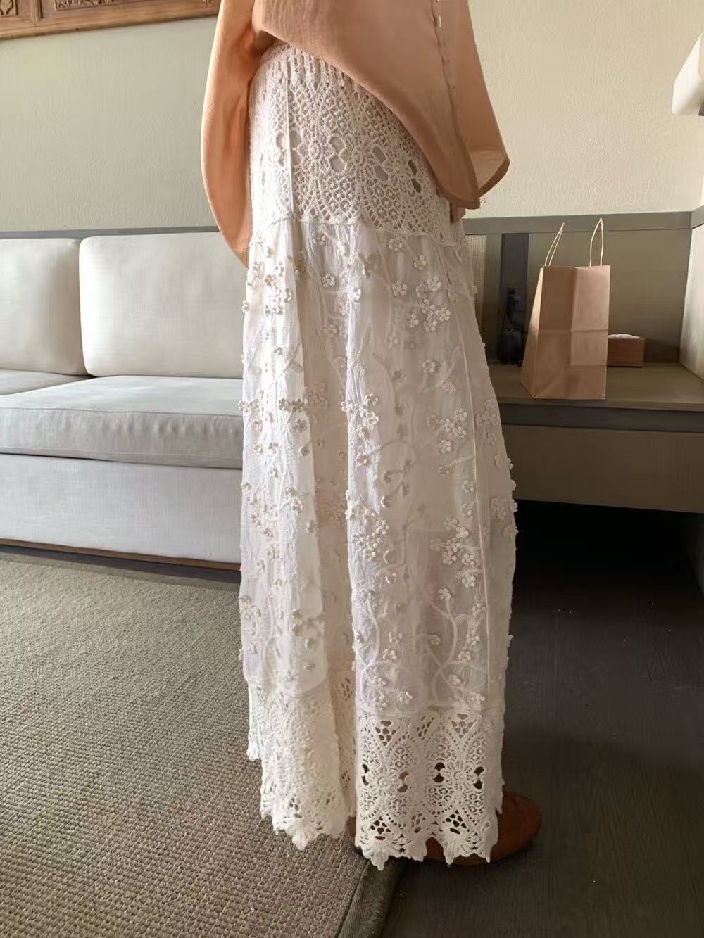 자수 레이스 와이드 레그 팬츠 디자인 센스 하이웨이스트 슬림해 보이는 허리밴드 레이스 패치워크 바지 도루 센스 캐주얼 바지