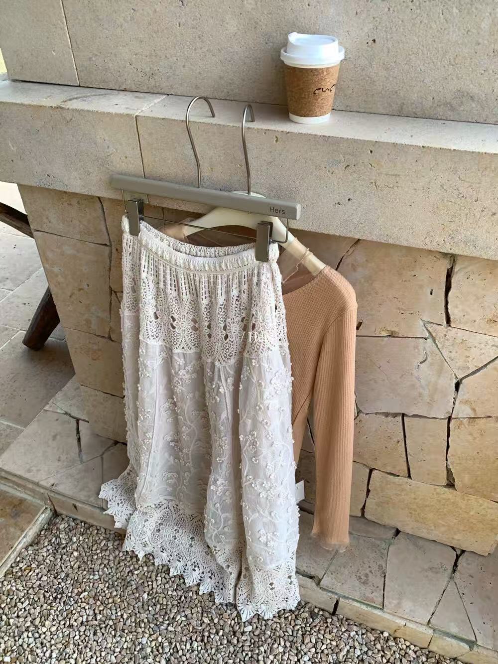 자수 레이스 와이드 레깅스 바지 여름 새로운 디자인 센스 슬림해 보이는 레이스 패치워크 도루 센스 캐주얼 바지