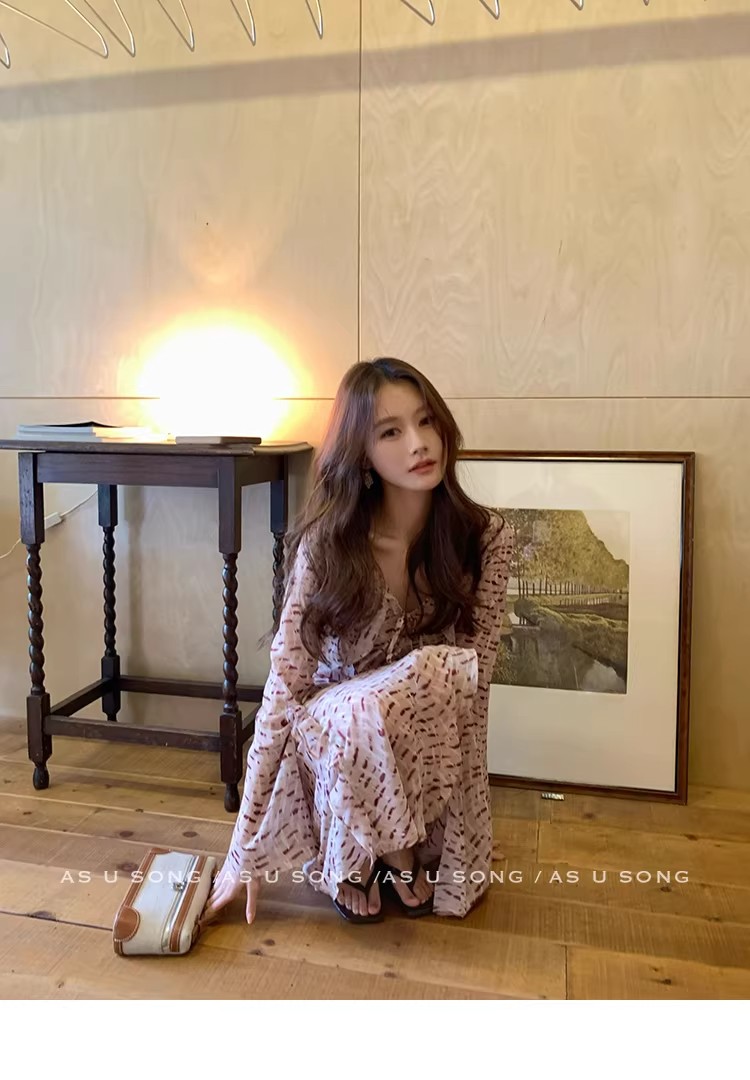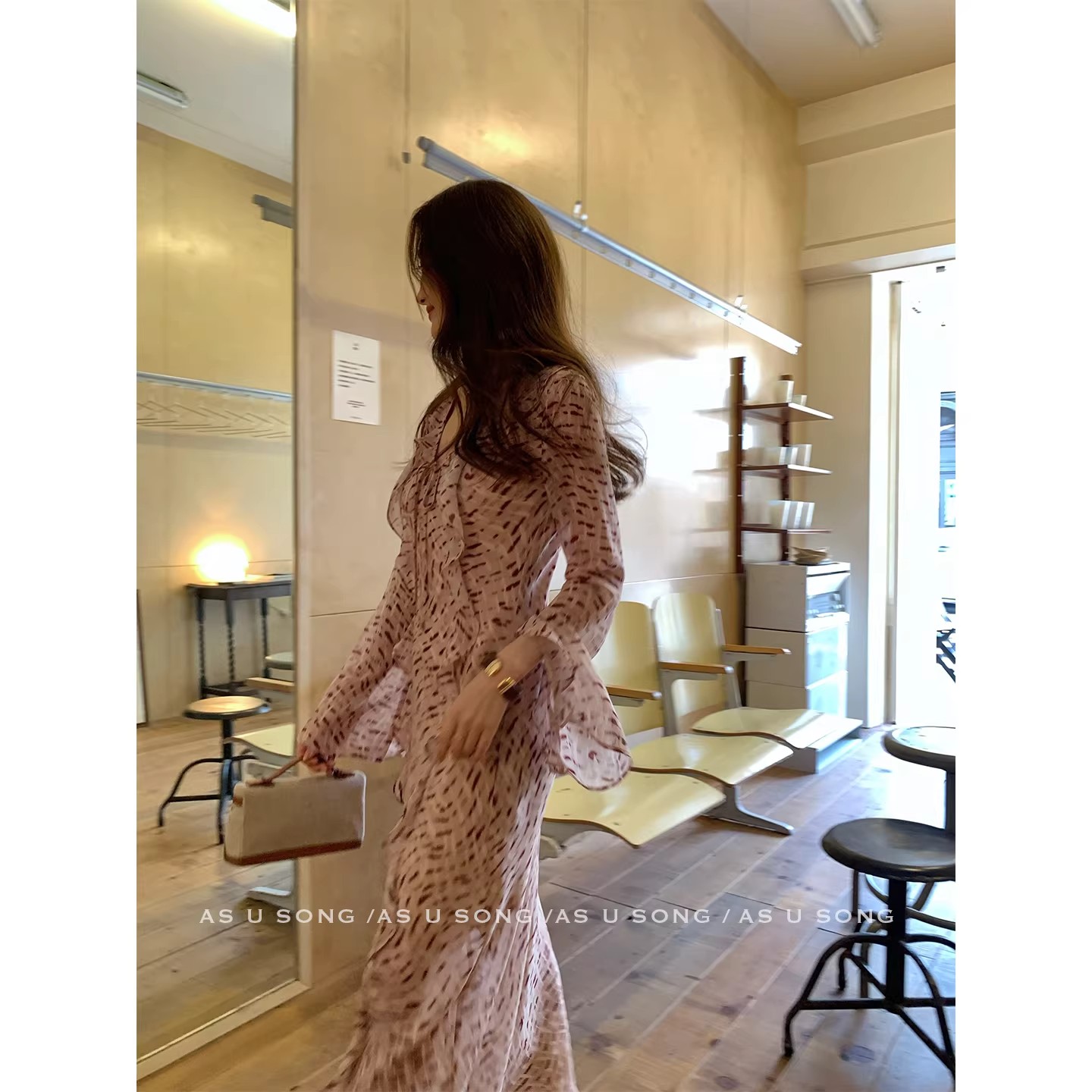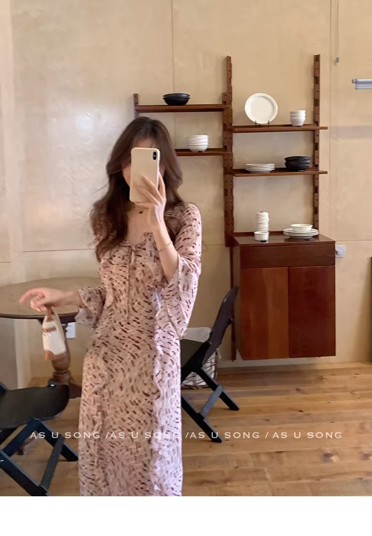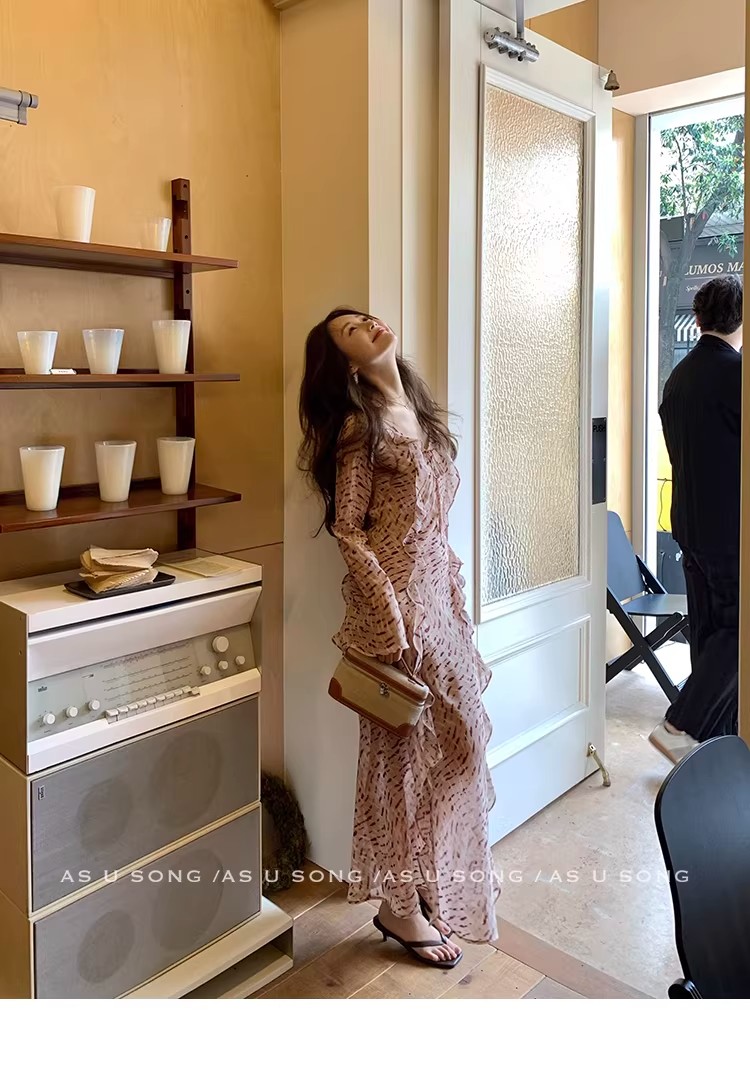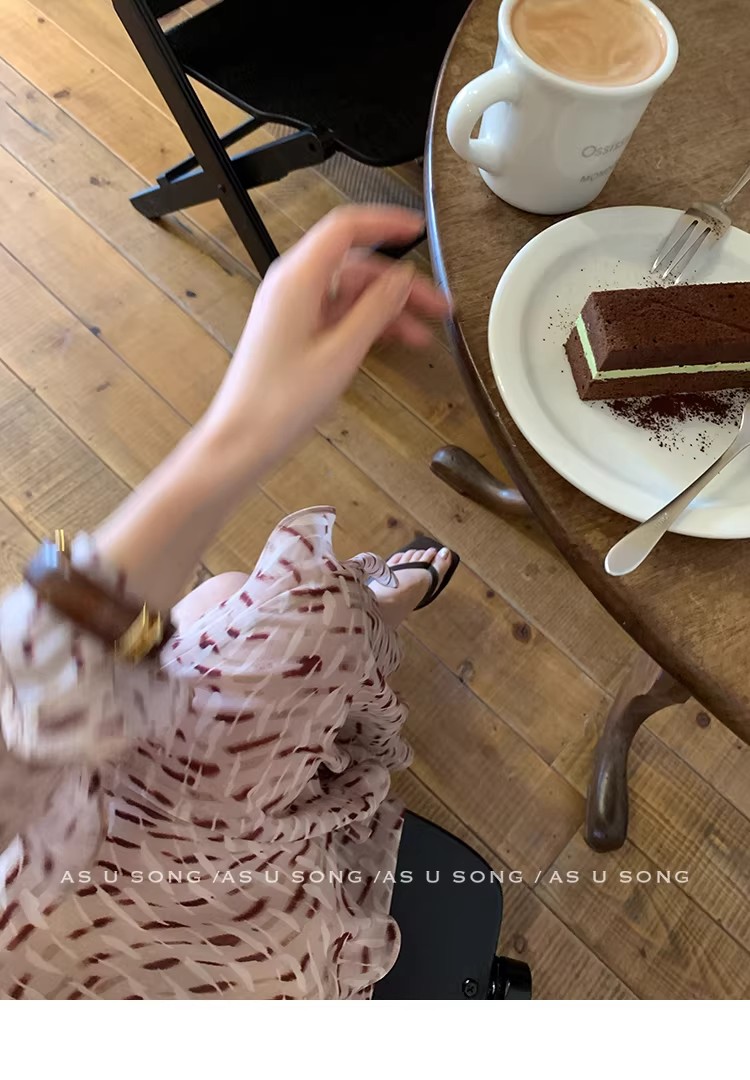 sisi jiang 달 그림자 유리 프랑스식 우아함 허리 수축 휴가 망사 자카드 품격 행침 목 롱 스커트