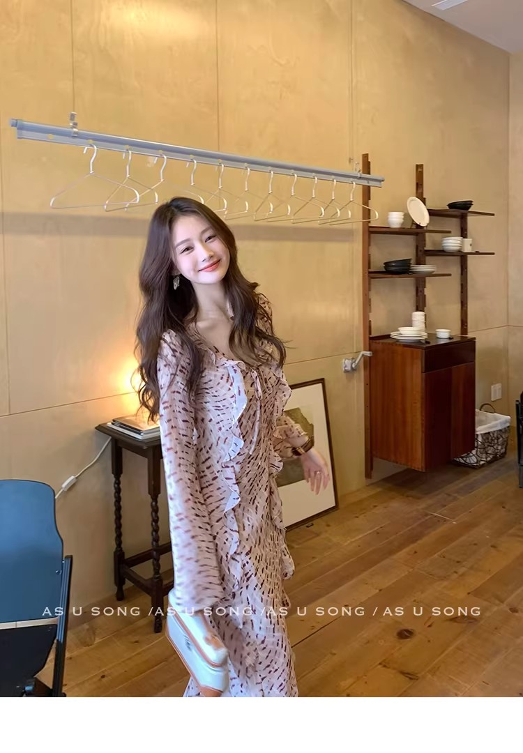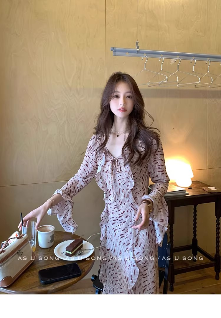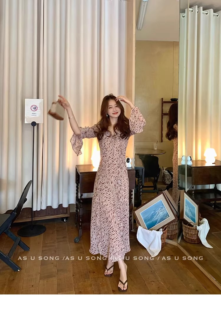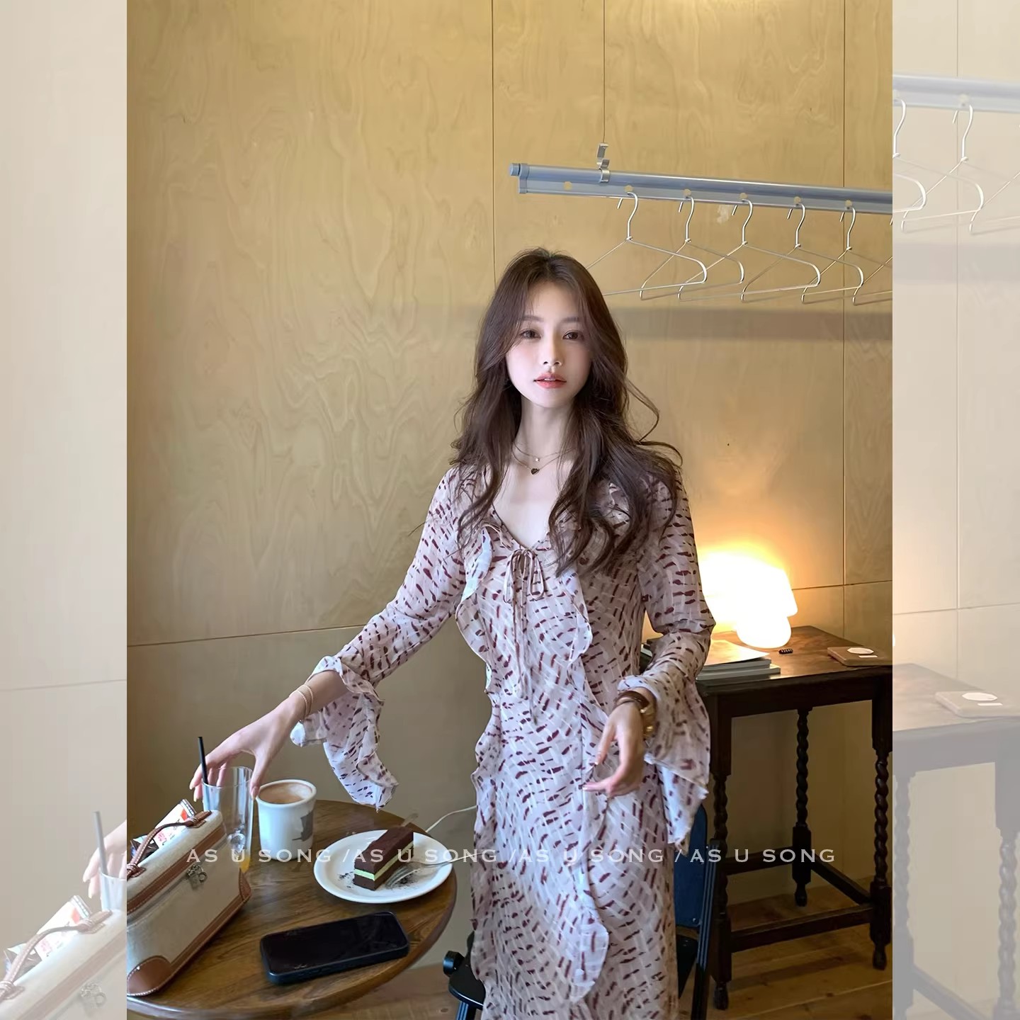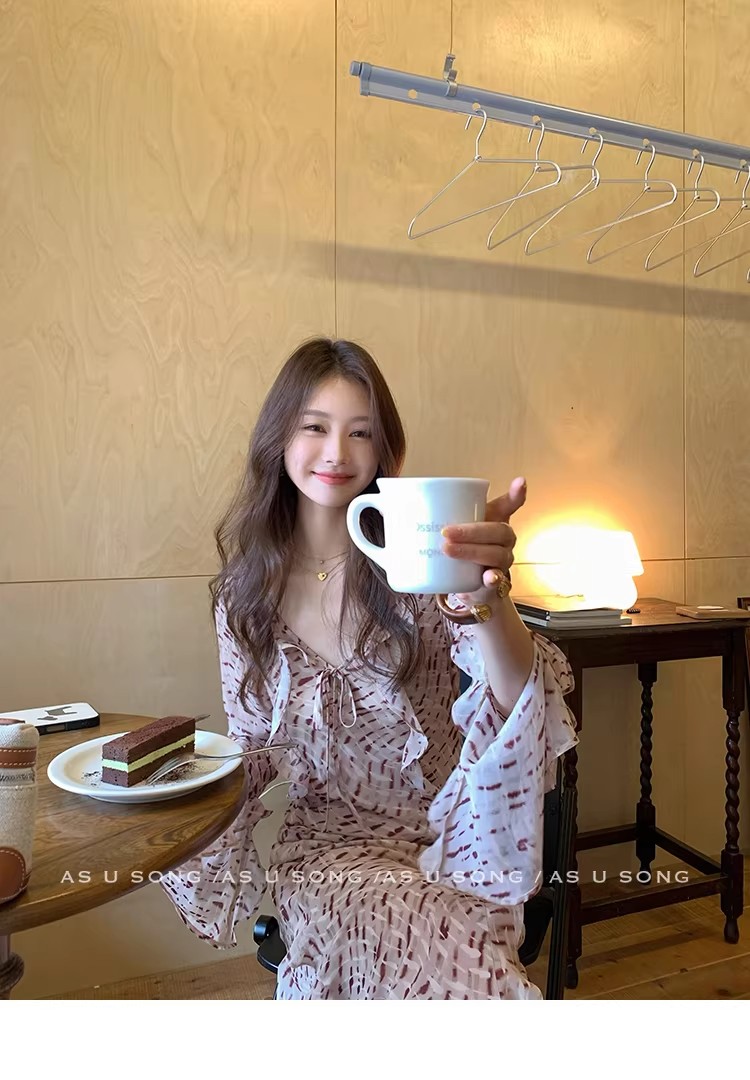 sisi jiang 달 그림자 유리 프랑스식 우아함 허리 수축 휴가 망사 자카드 품격 행침 목 롱 스커트