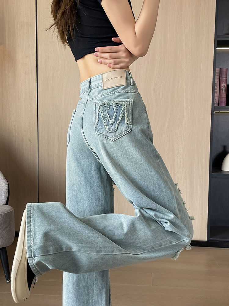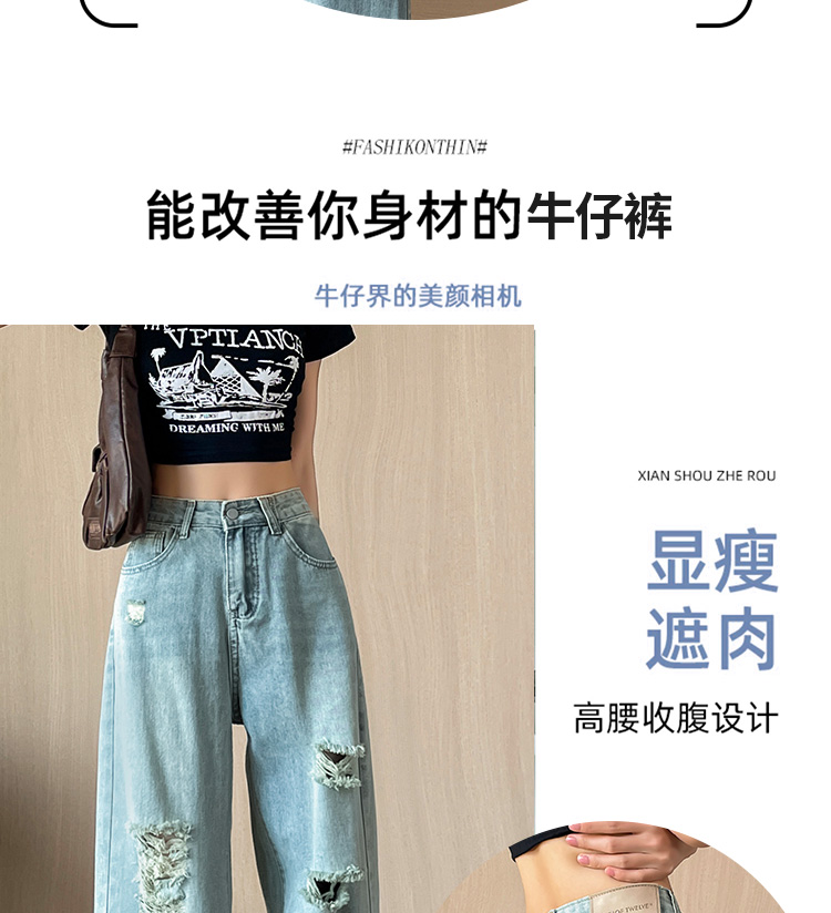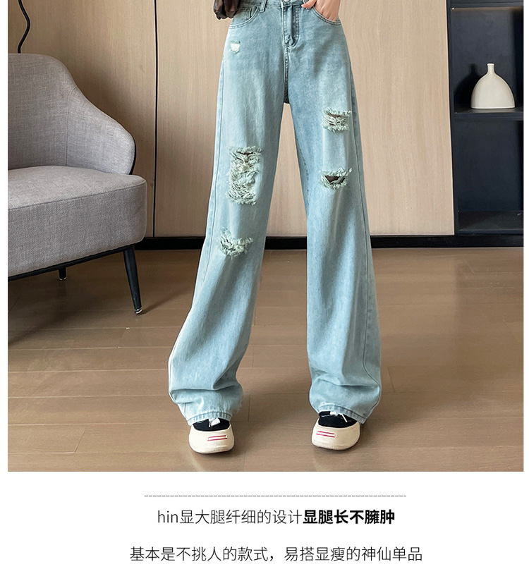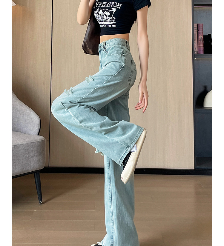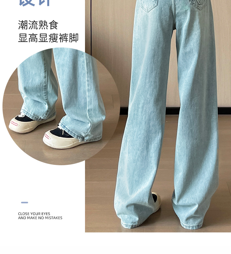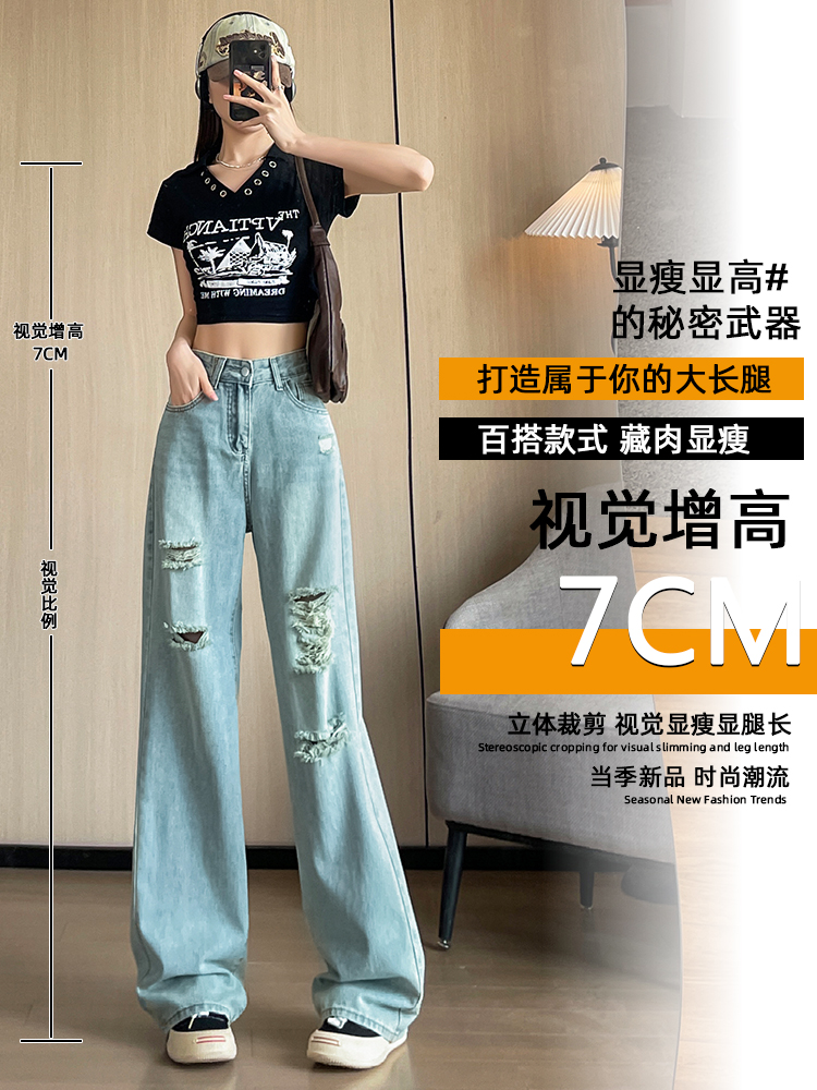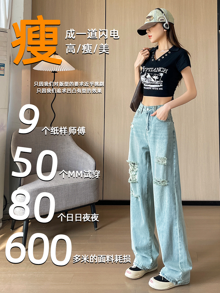 실사 작은 키 8 점 밝은색 넓은 다리 청바지 여성 여름 얇은 스타일 하이웨이스트 루즈핏 디자인 센스 할머니 바지 여성
