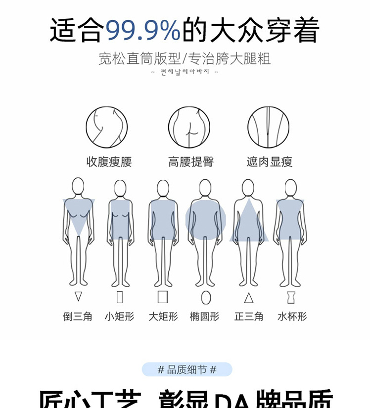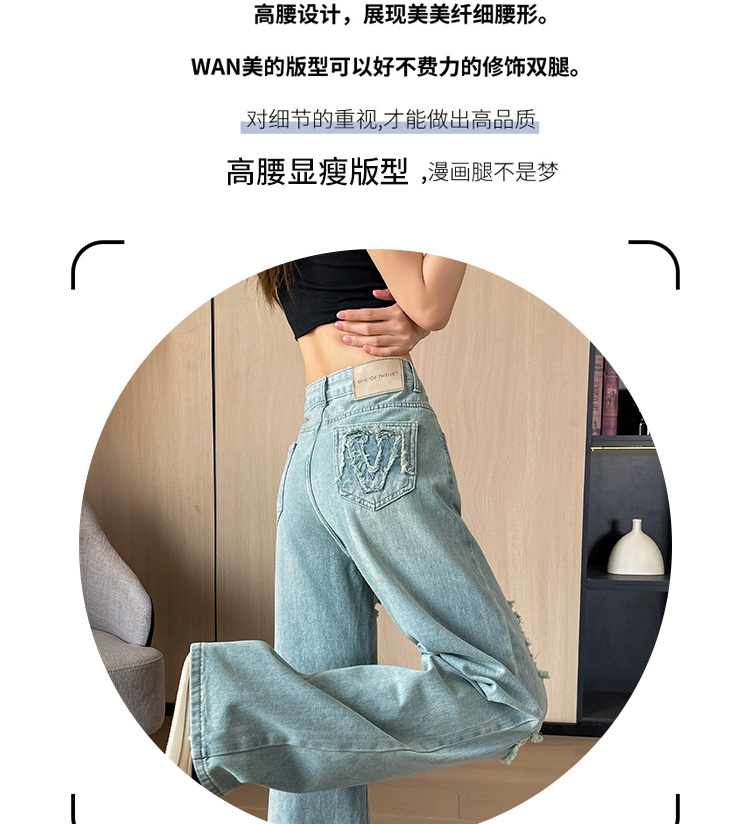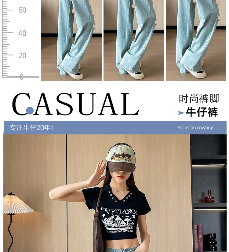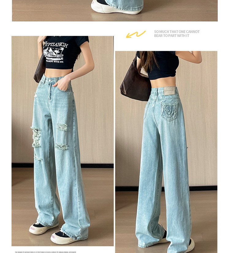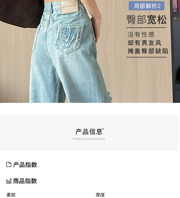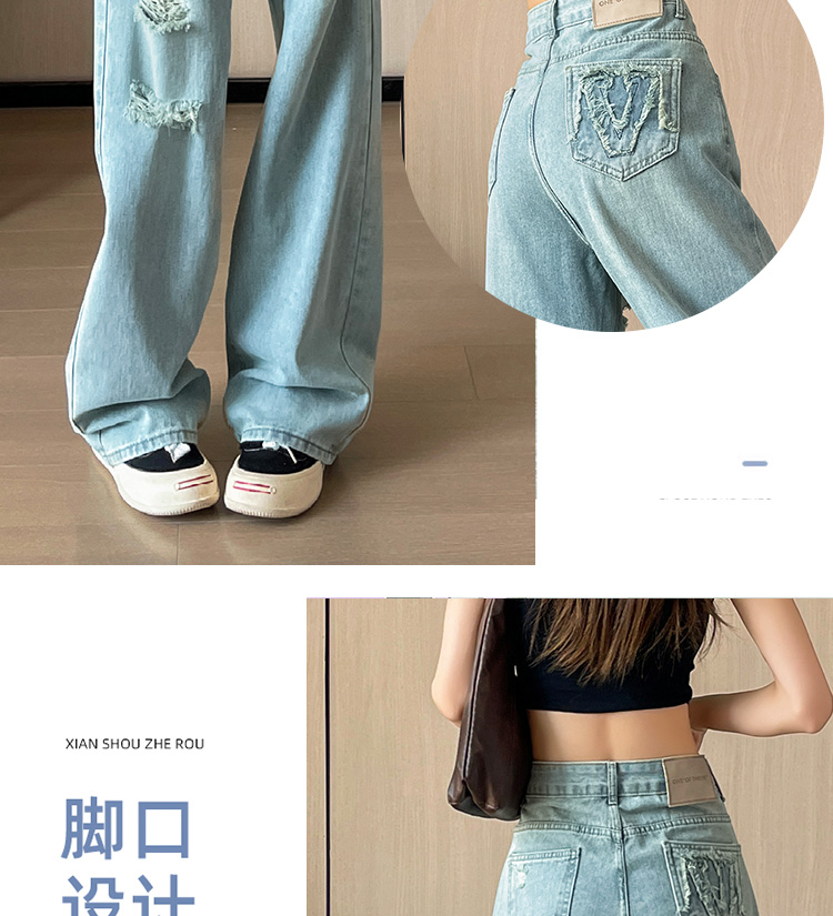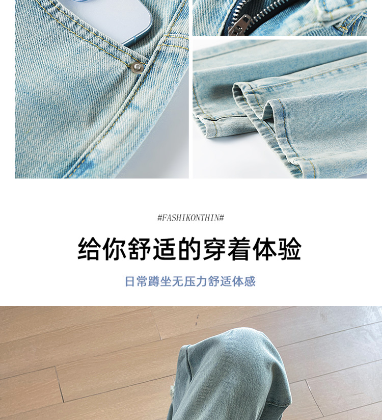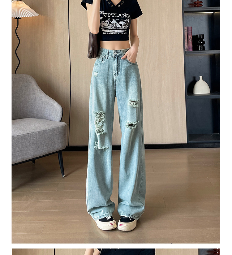 실사 작은 키 8 점 밝은색 넓은 다리 청바지 여성 여름 얇은 스타일 하이웨이스트 루즈핏 디자인 센스 할머니 바지 여성
