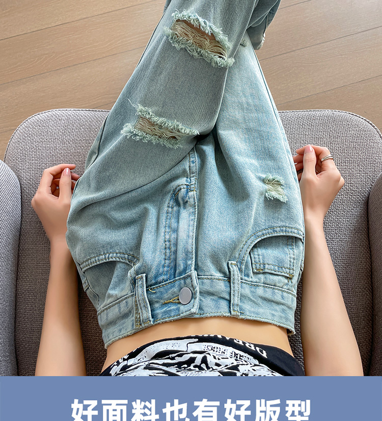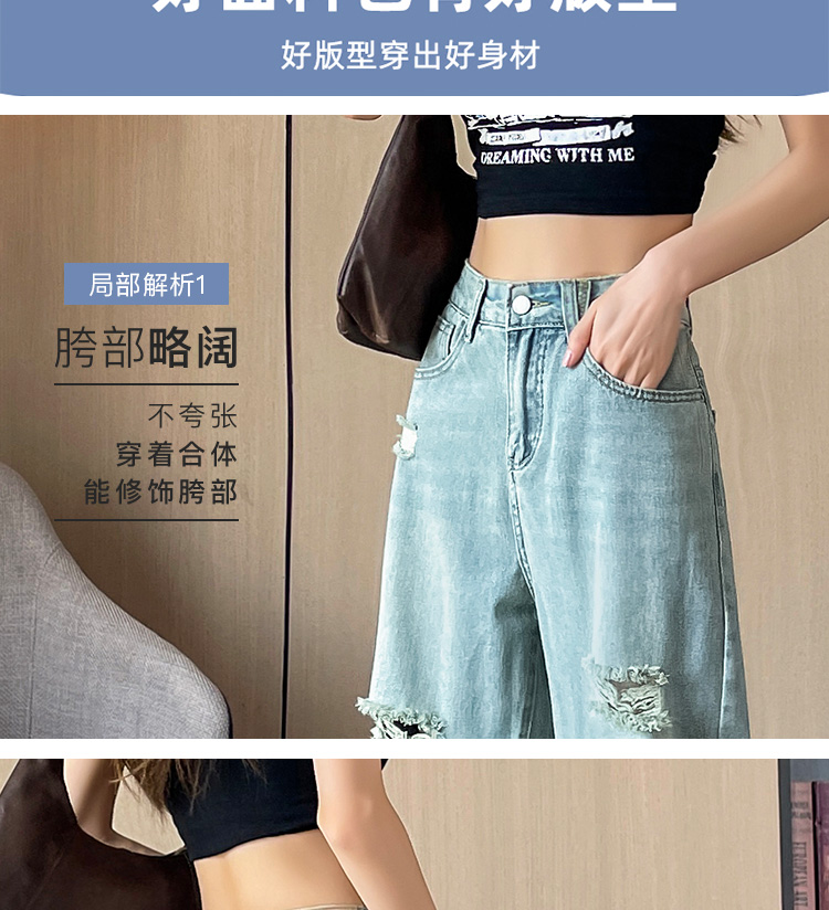 실사 무릎 아래 데님 반바지 여성 오부 바지 여름 얇은 하이웨이스트 루즈핏 넓은 다리 배 종류 몸 한 마디 스트레이트 팬츠