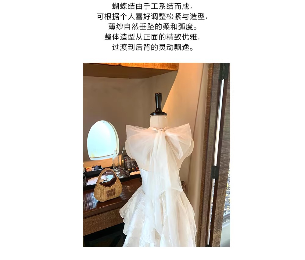 회화 솔루션 wahju 별 비밀 오프숄더 나비 매듭 꽃 꾸밈음 디자인 허리 수축 슬림해 보이는 드레스 봄