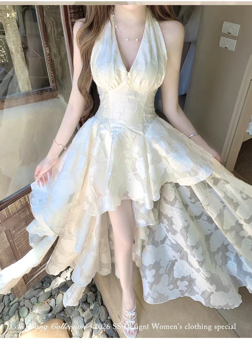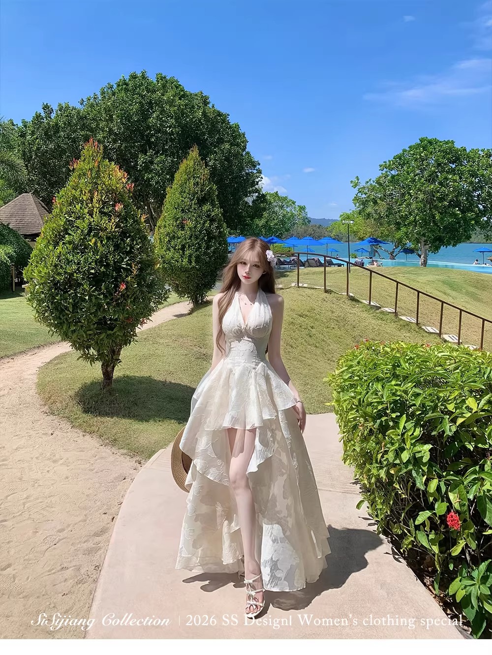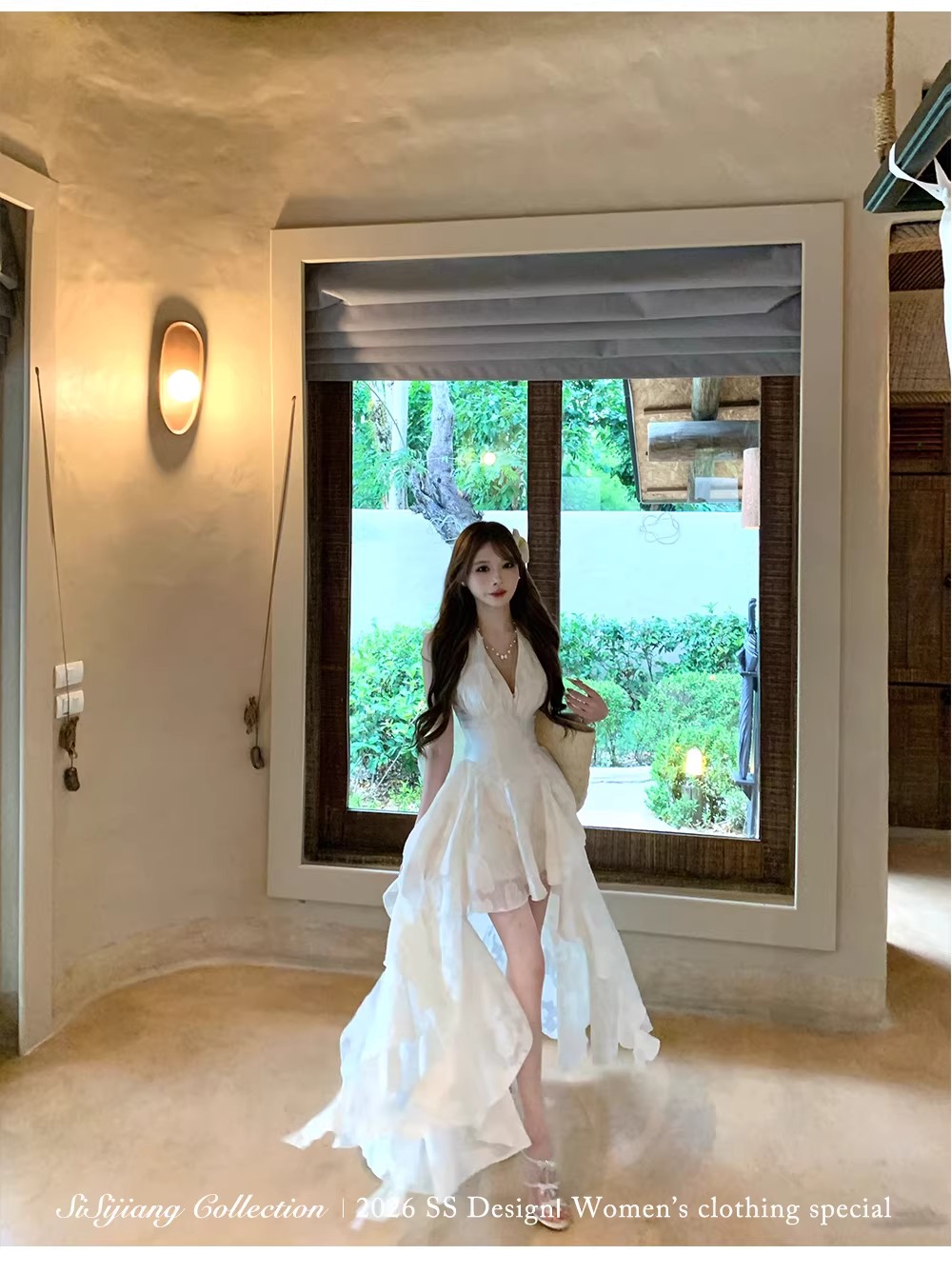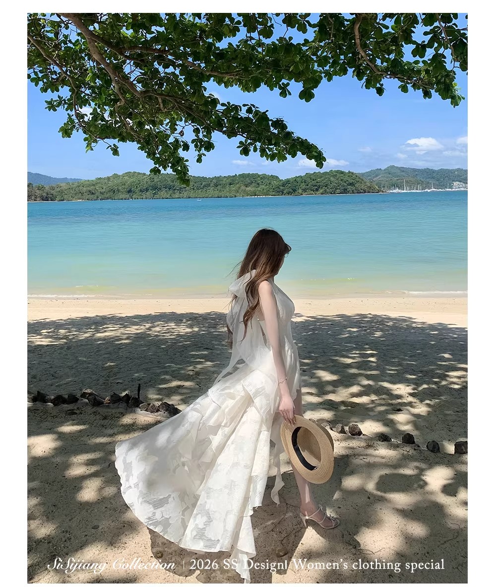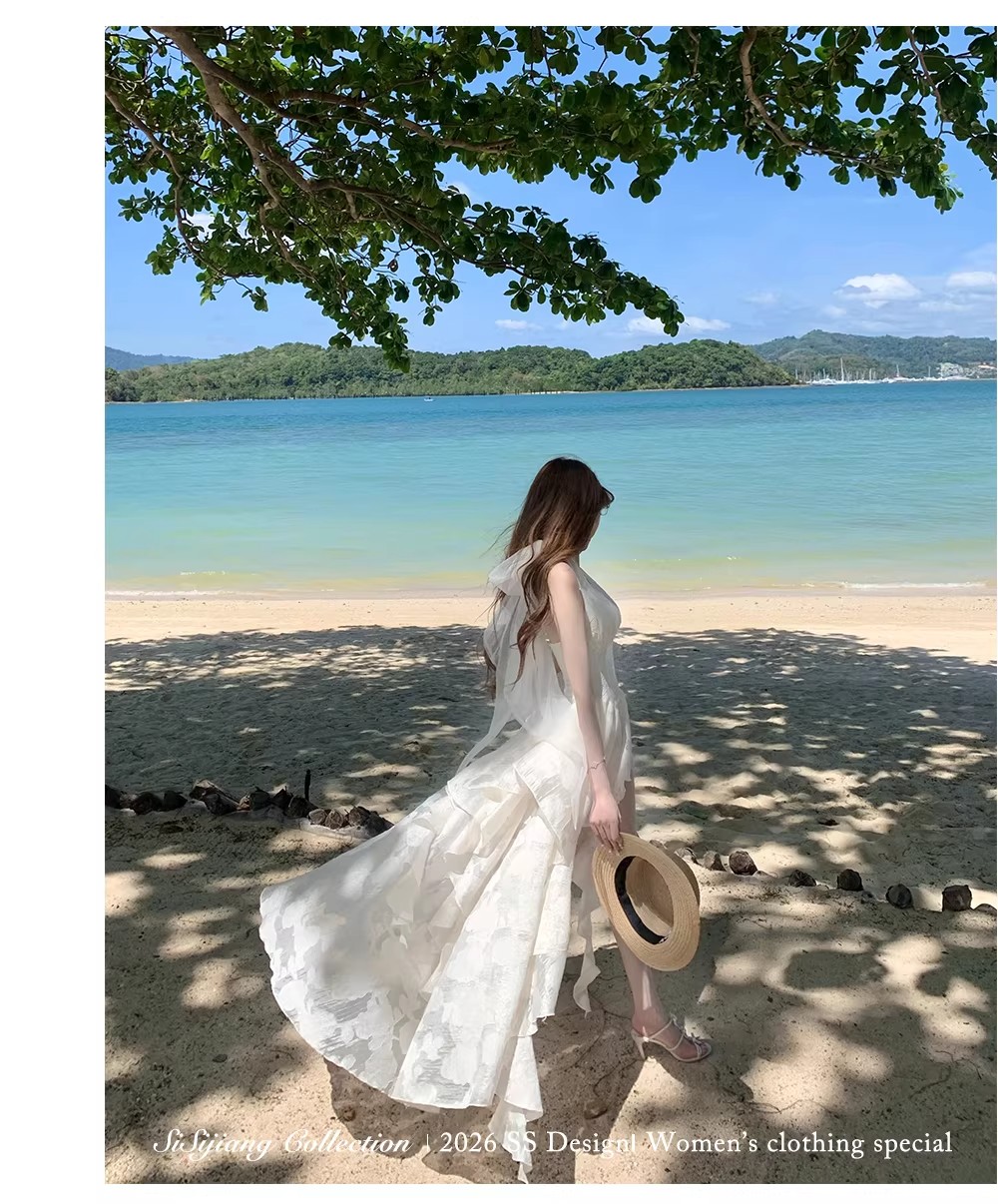 있음 후안 youwe2026 자이언트 잘 생긴 여성 드레스 새로운 여름 새로운 중식 민소매 화이트 조끼 스커트 롱 스커트
