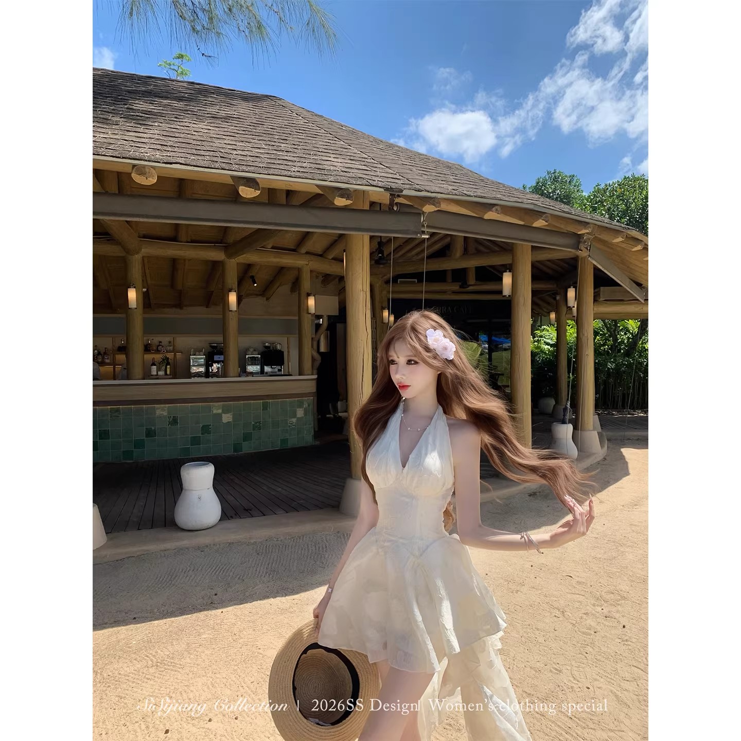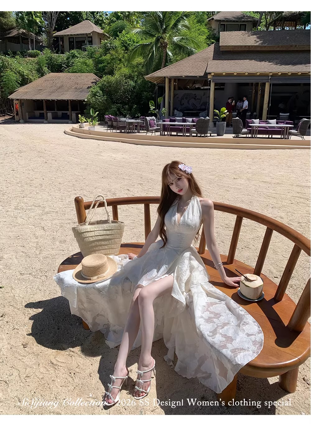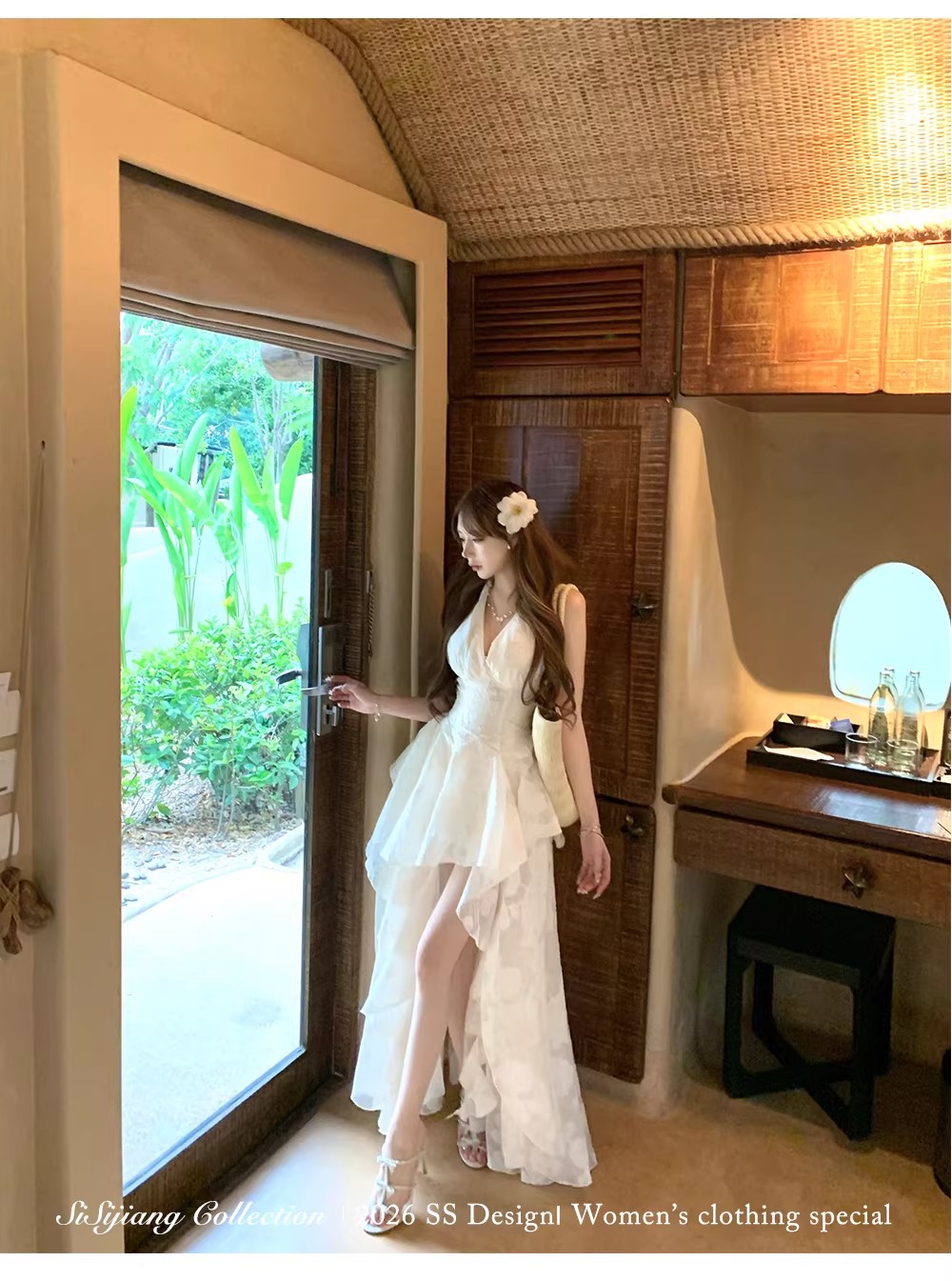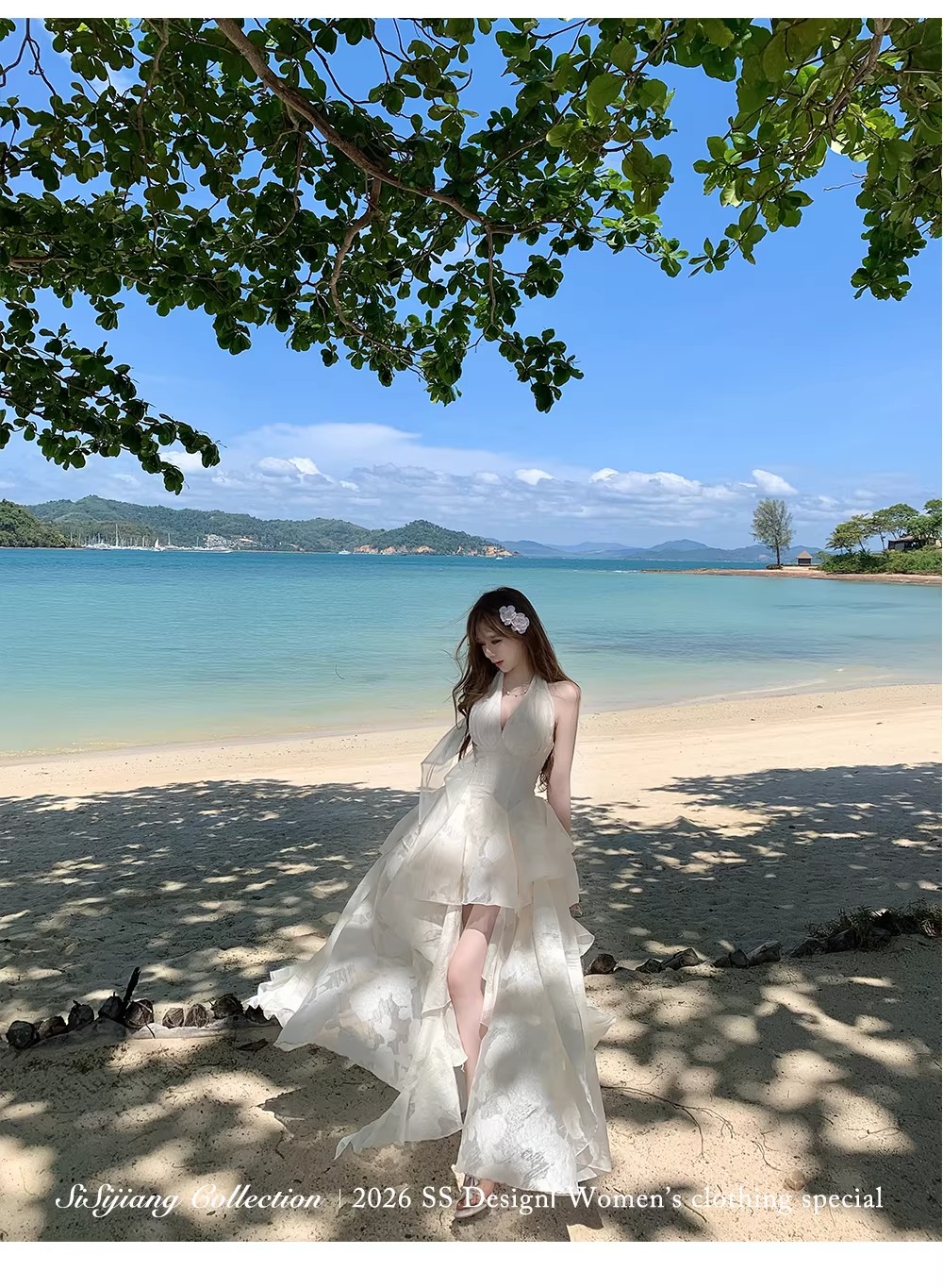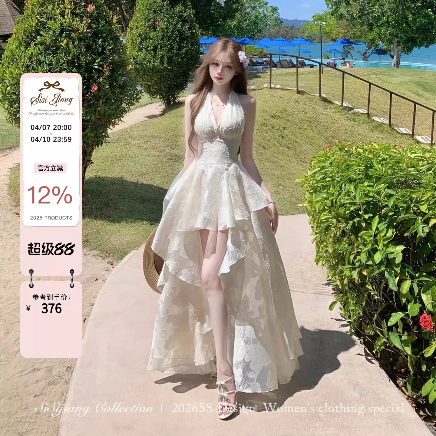 있음 후안 youwe2026 자이언트 잘 생긴 여성 드레스 새로운 여름 새로운 중식 민소매 화이트 조끼 스커트 롱 스커트