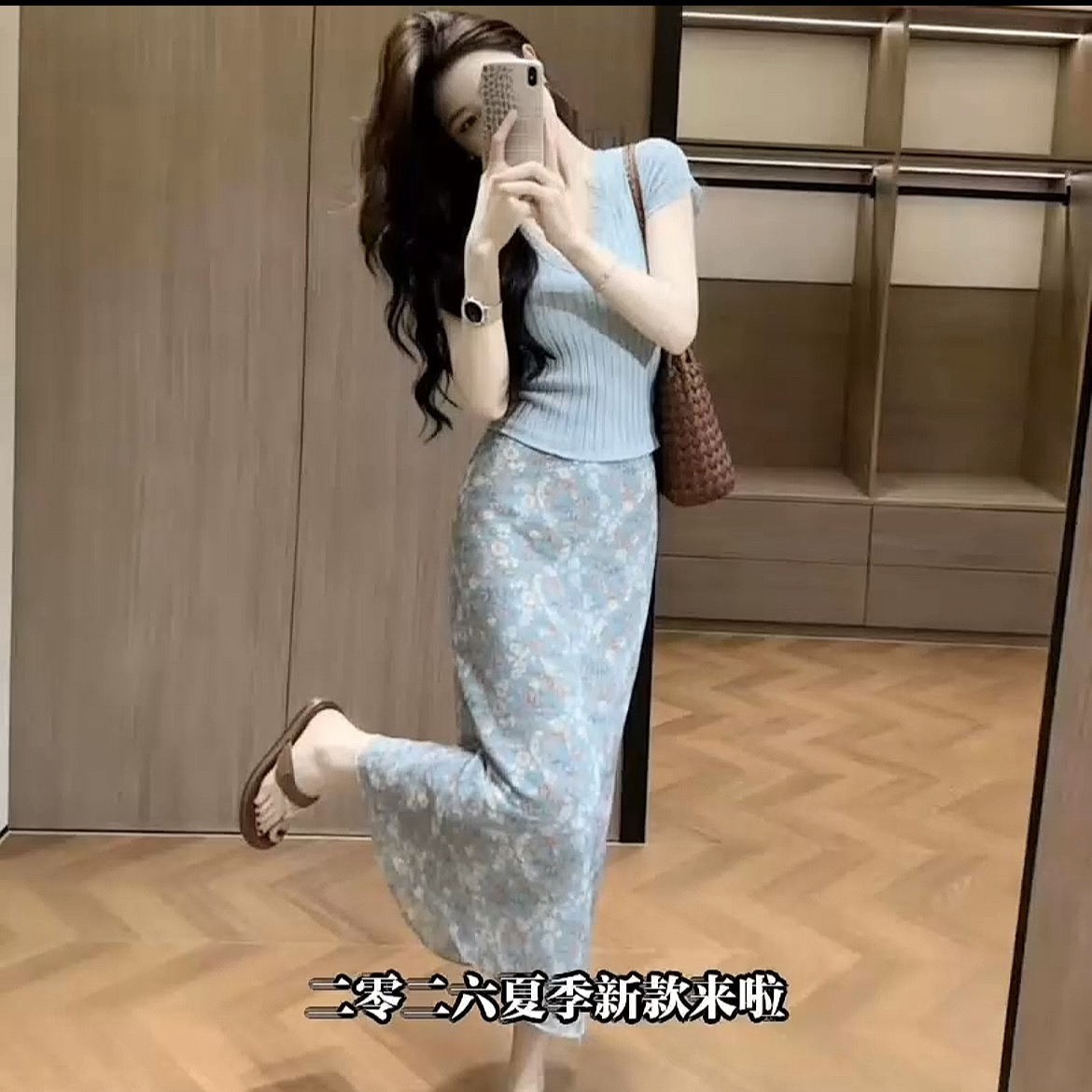 2026 여름 새로운 한 부서 순수한 욕망 바람 몸매 가꾸기 슬림해 보이는 맨위 경기 하이웨이스트 꽃무늬 반신 스커트 투피스 세트