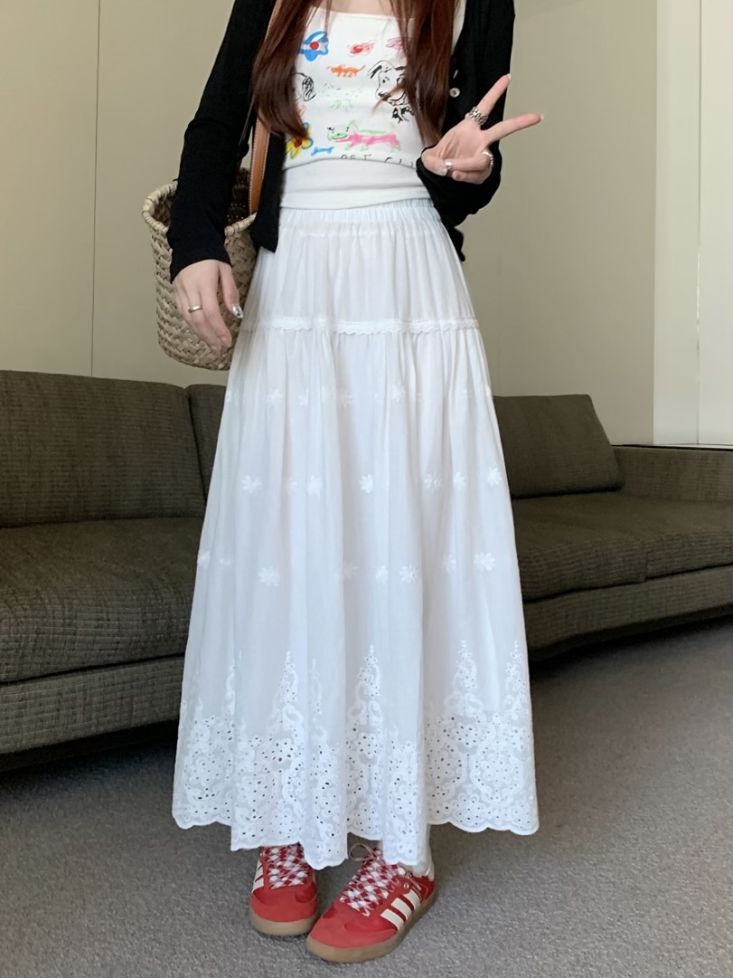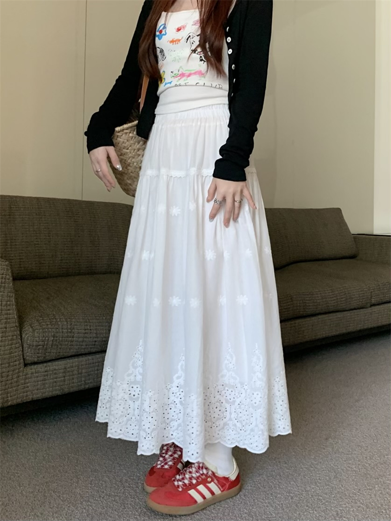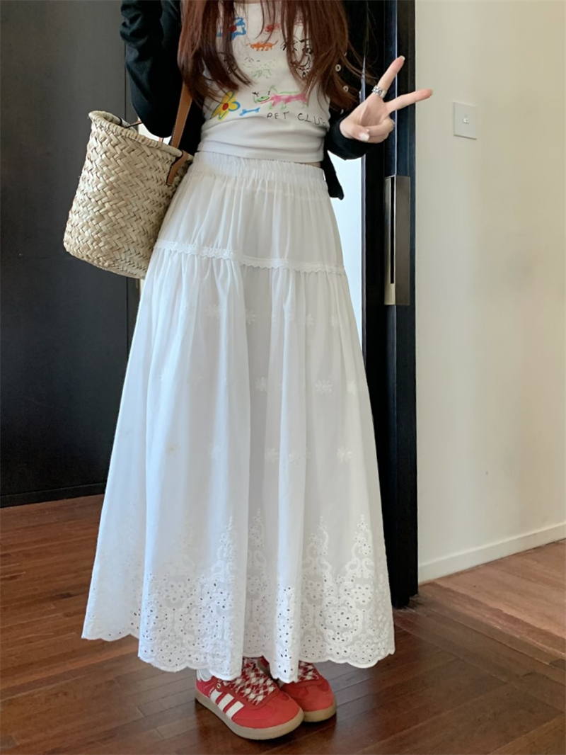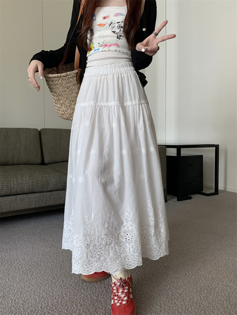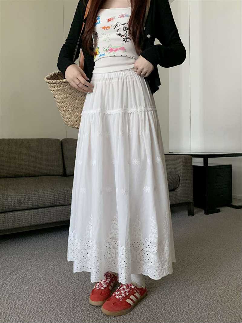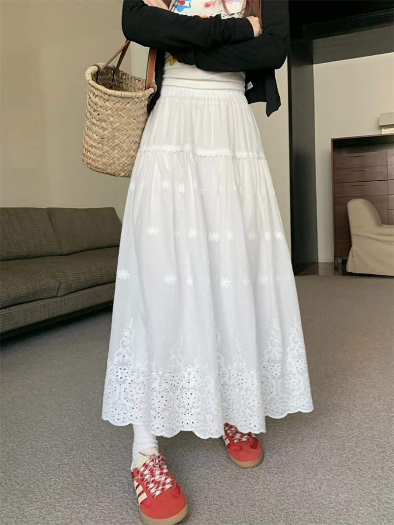 실사 정가 새로운 한국 스타일 달콤함 디자인 센스 자수 무거운 작업 다용도 반신 롱 스커트