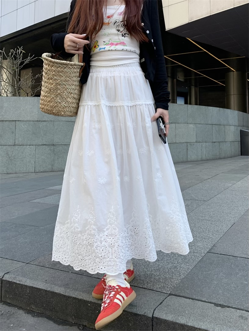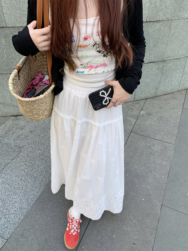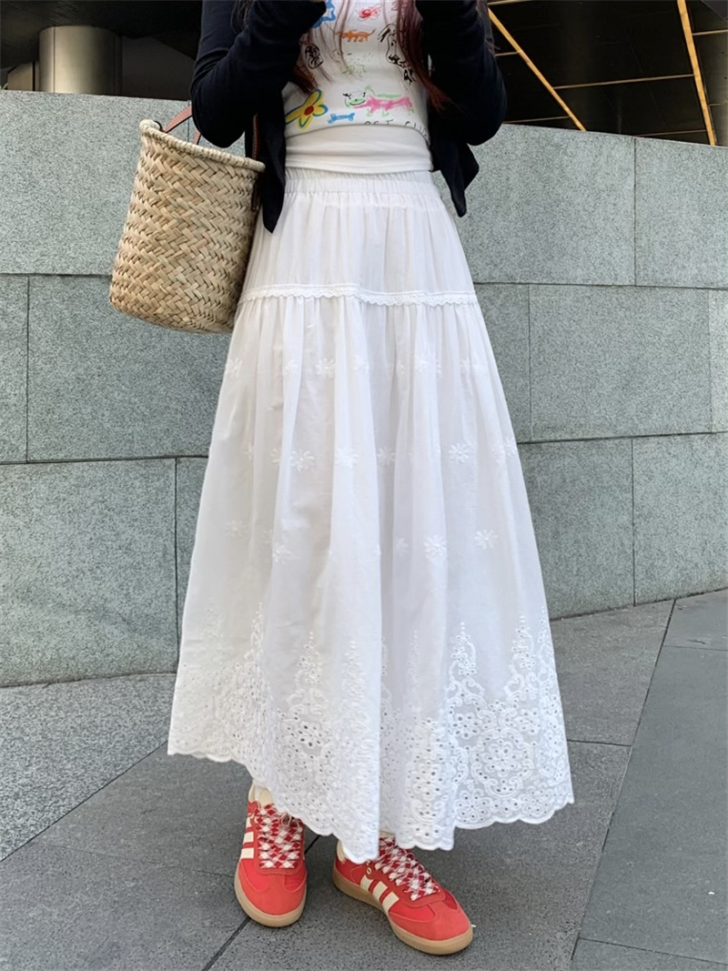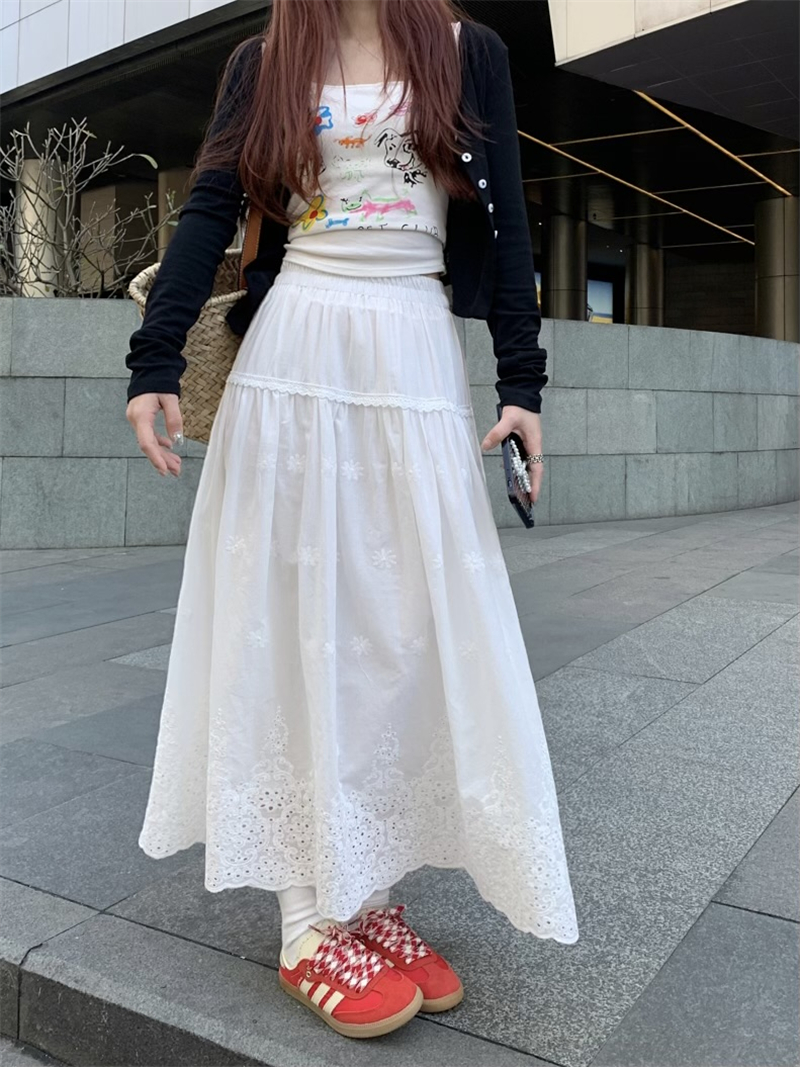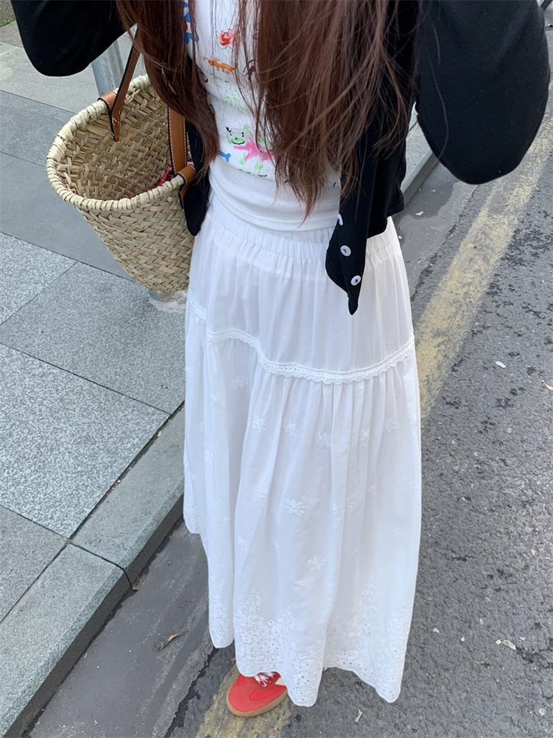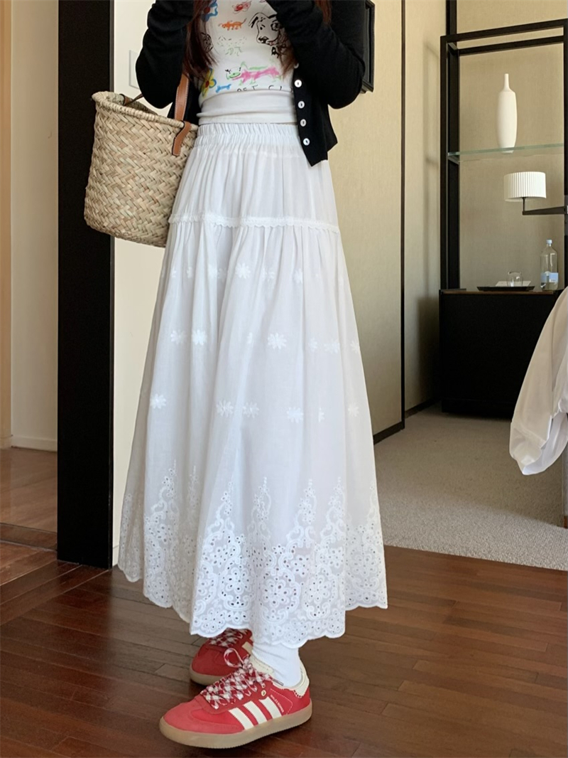 실사 정가 새로운 한국 스타일 달콤함 디자인 센스 자수 무거운 작업 다용도 반신 롱 스커트