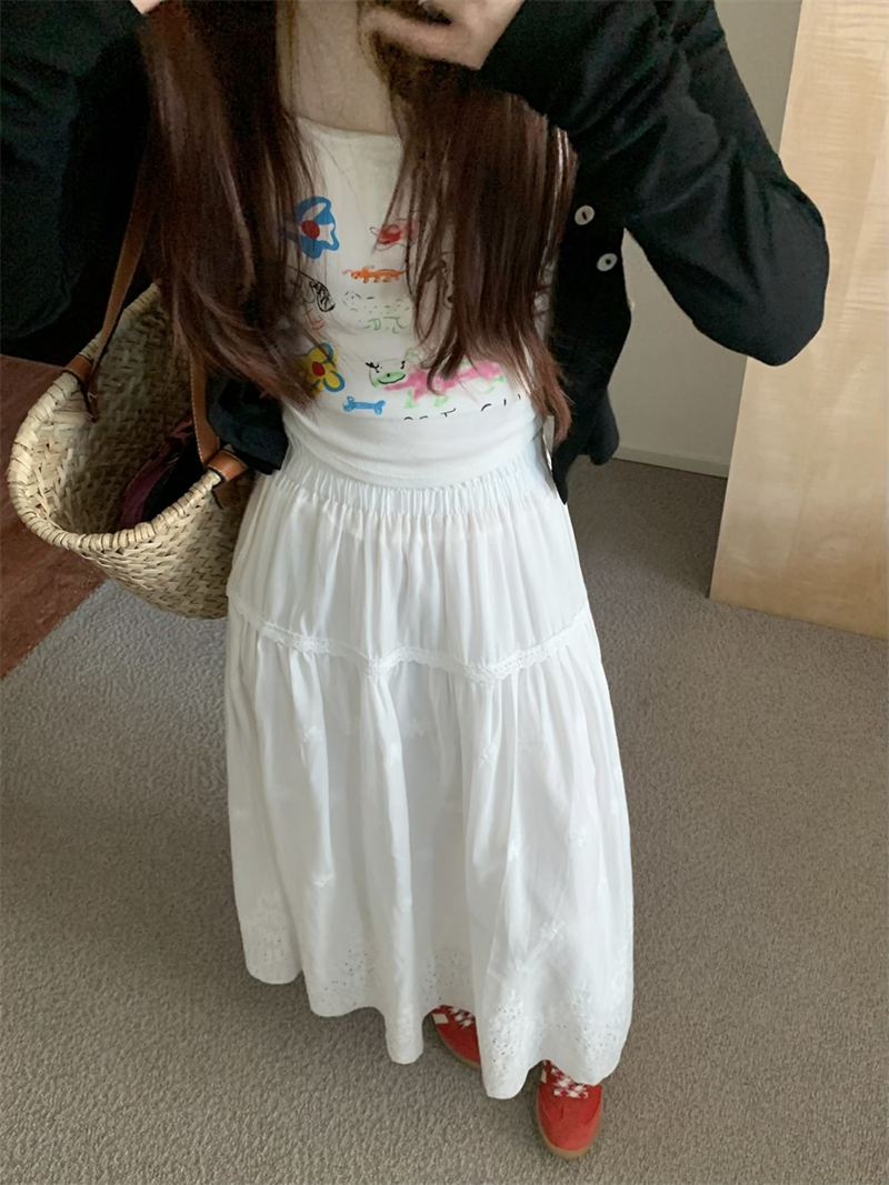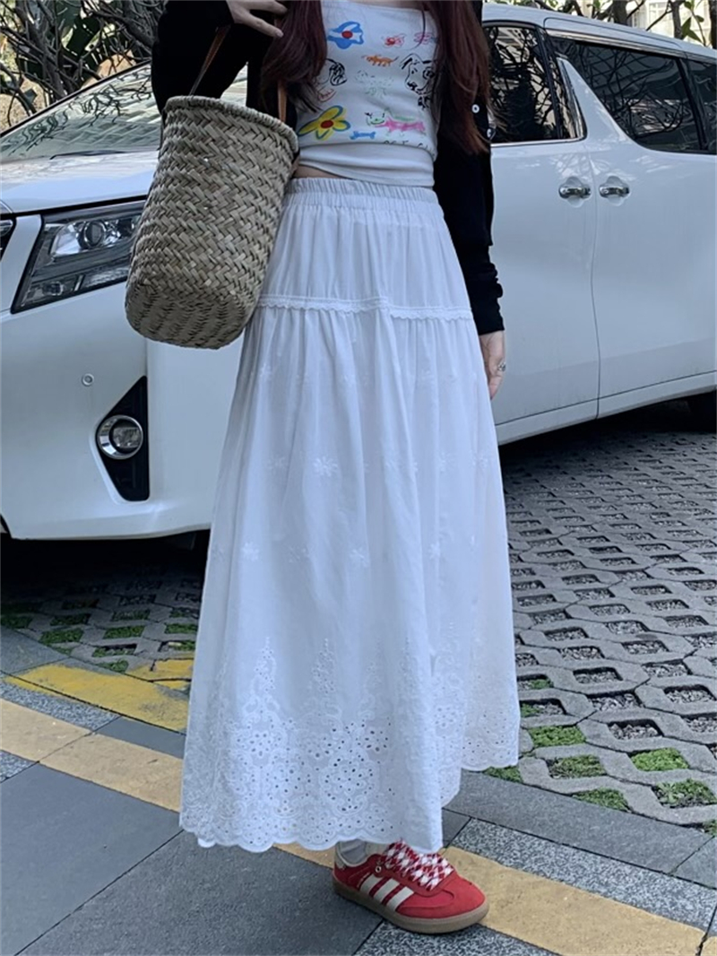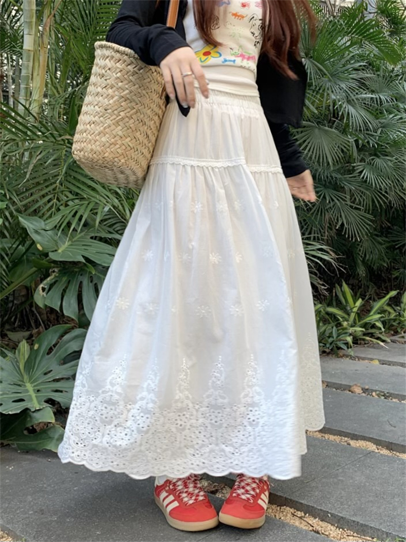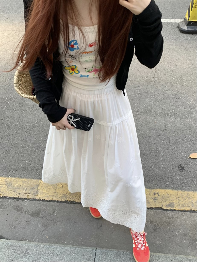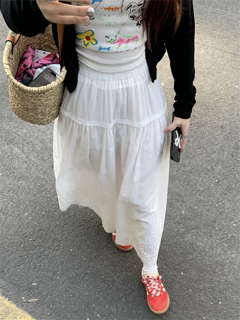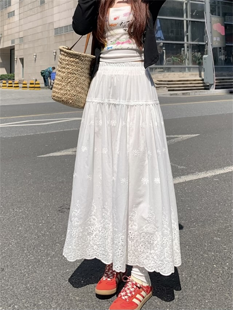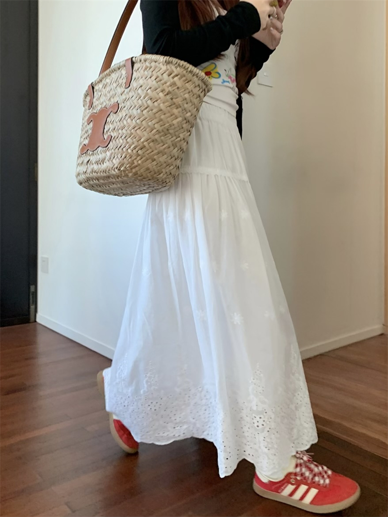 실사 정가 새로운 한국 스타일 달콤함 디자인 센스 자수 무거운 작업 다용도 반신 롱 스커트