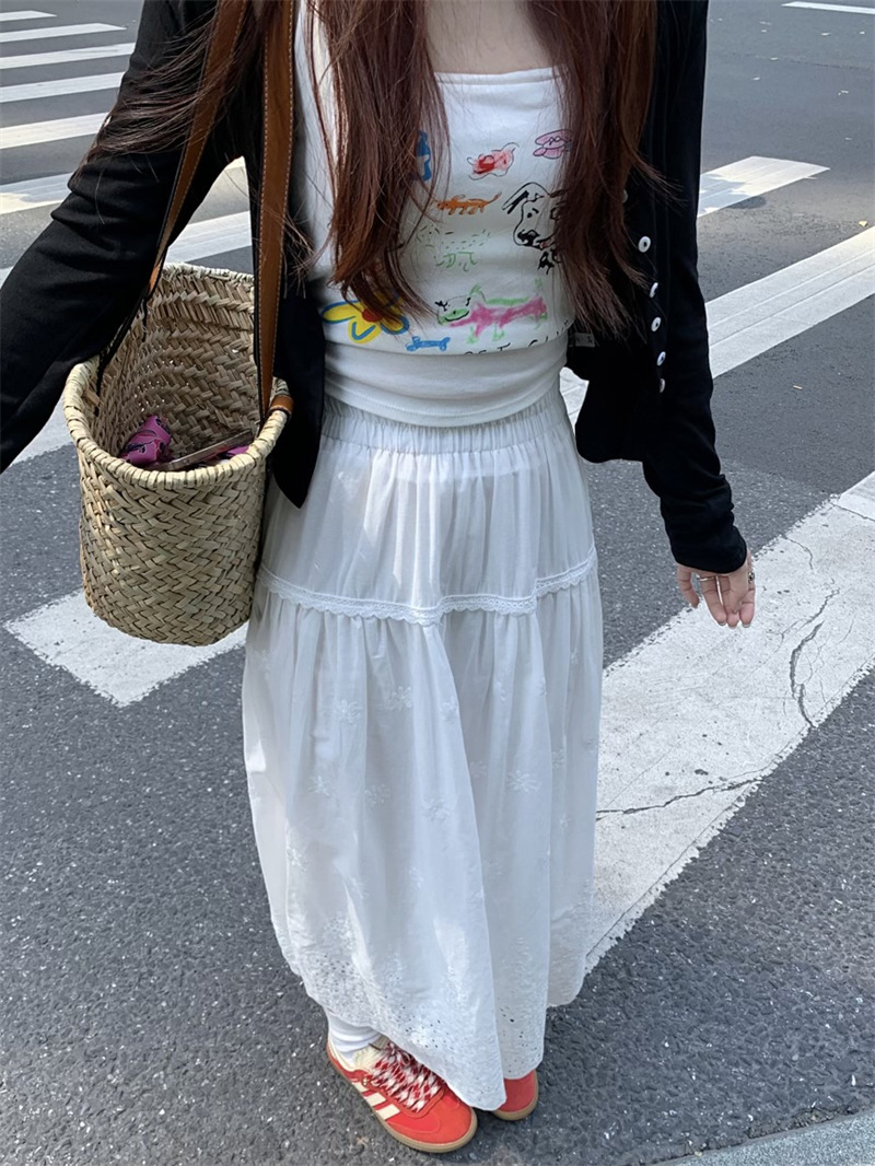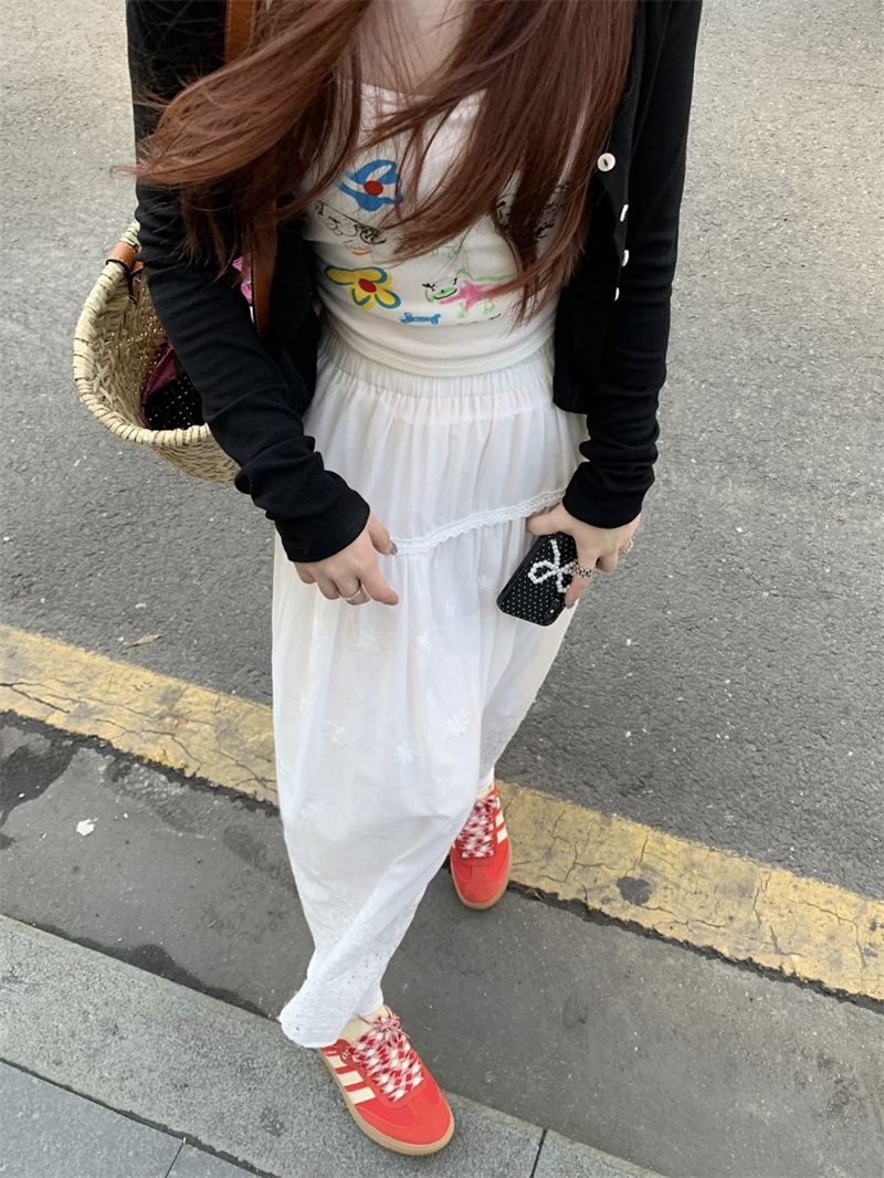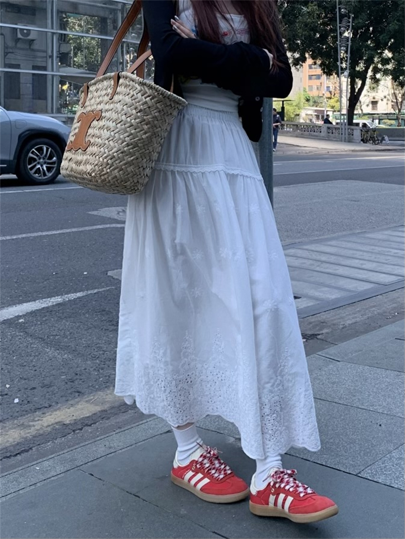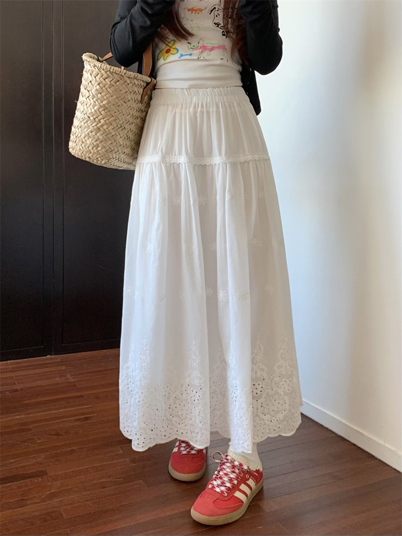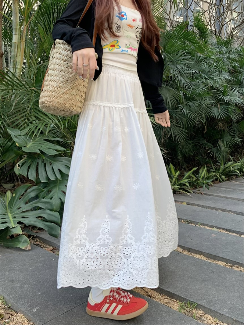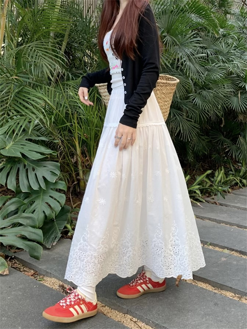 실사 정가 새로운 한국 스타일 달콤함 디자인 센스 자수 무거운 작업 다용도 반신 롱 스커트