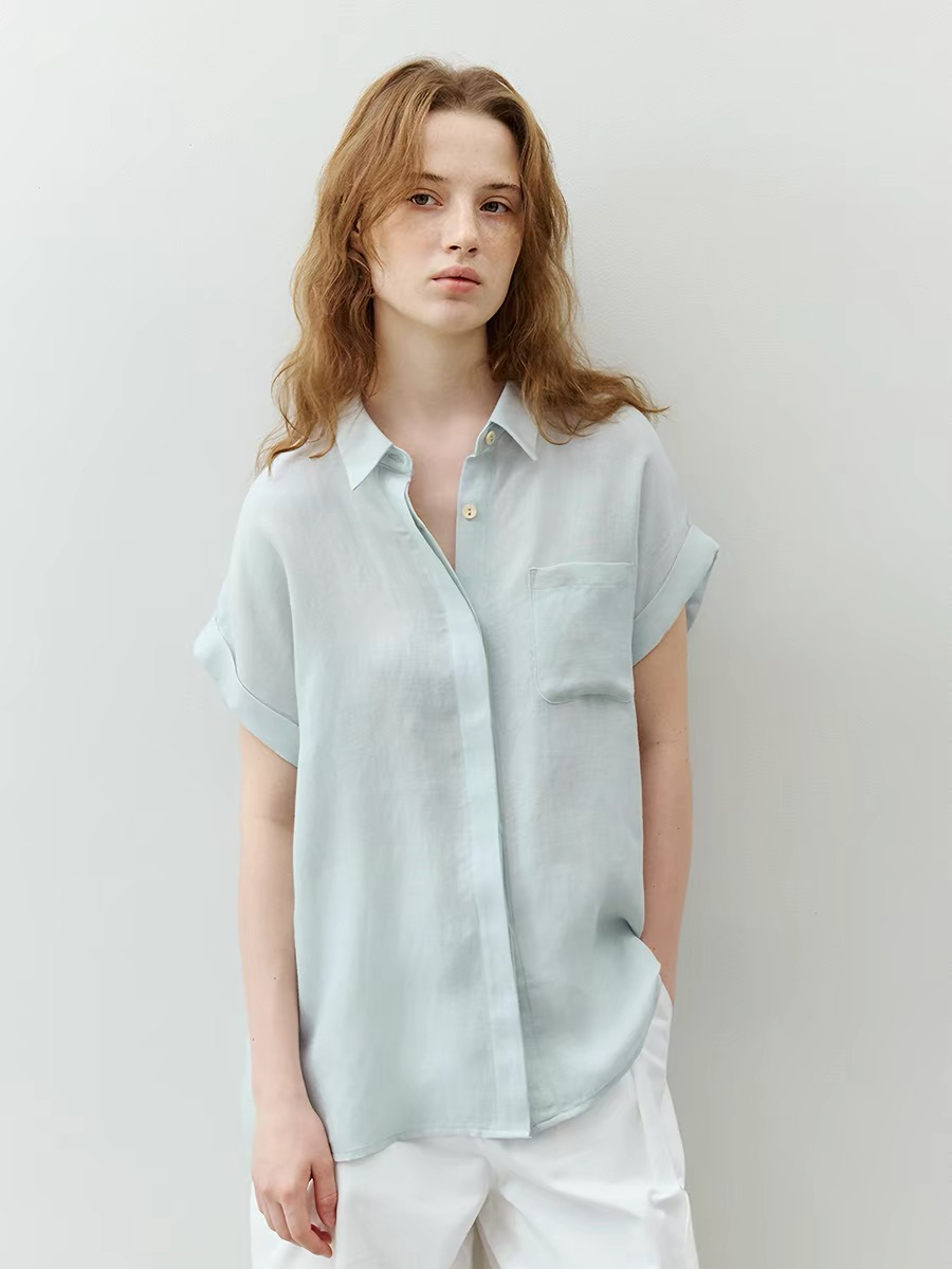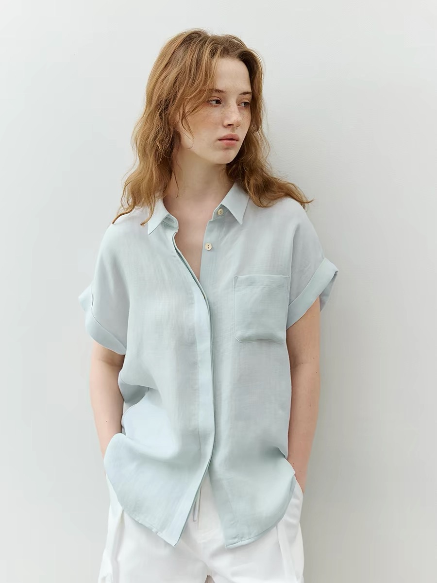 실크 여성 셔츠 반팔 봄 여름 프랑스식 Chic 품격 맨위 출퇴근 미니멀리즘 경력 ol 고급 센스 셔츠