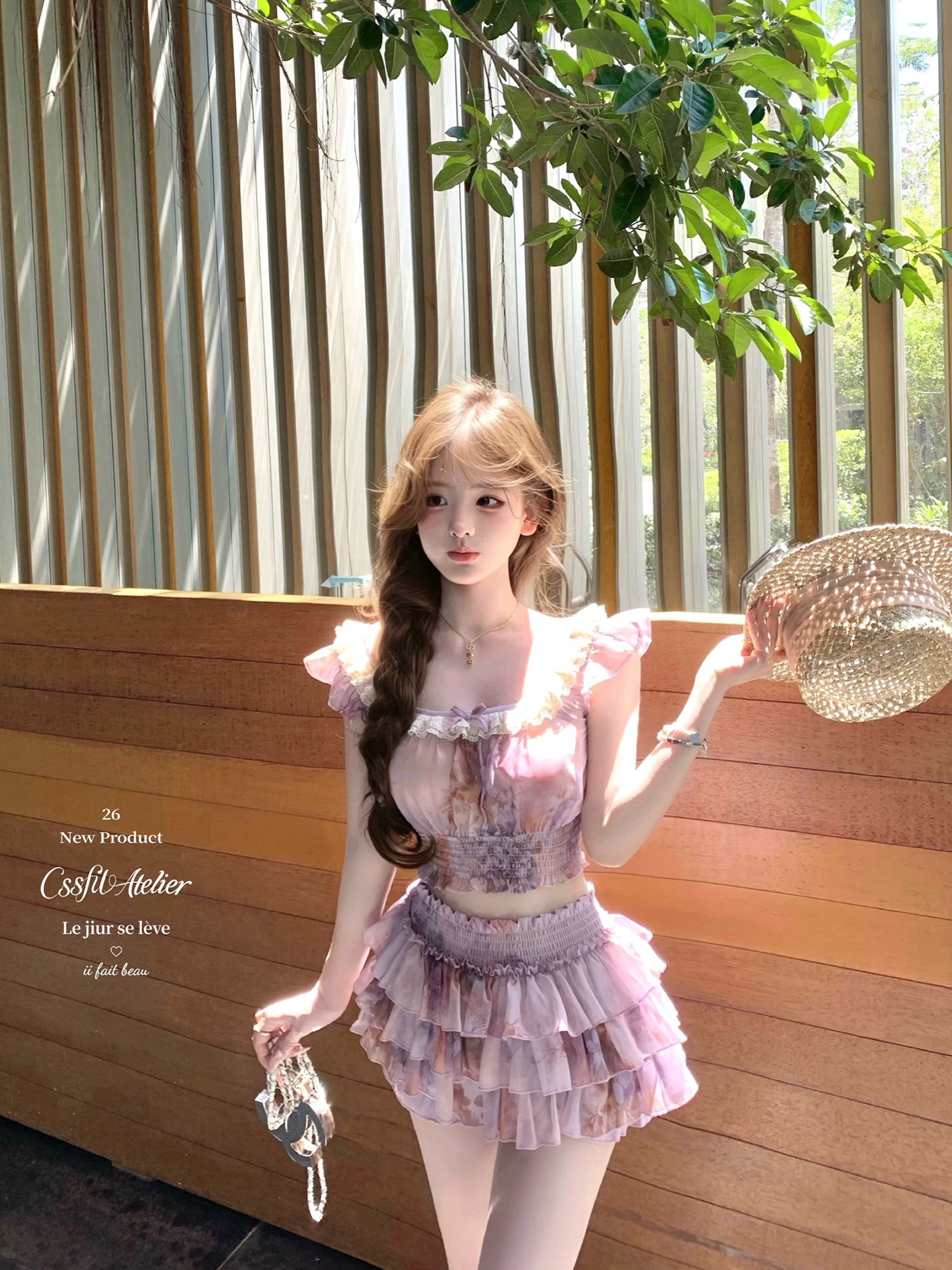 4.7 10 00am 켜기 새로운 시리아 여름 레이스 치마 튜브탑 투피스 세트