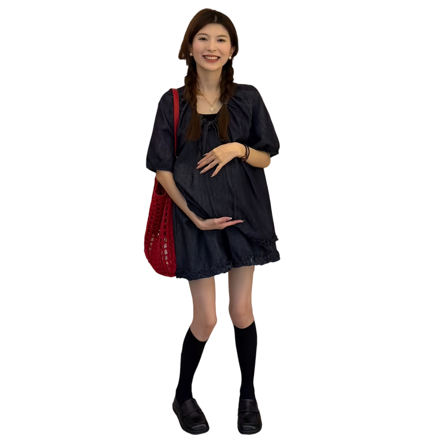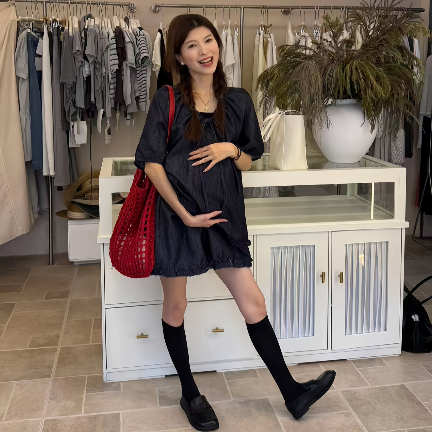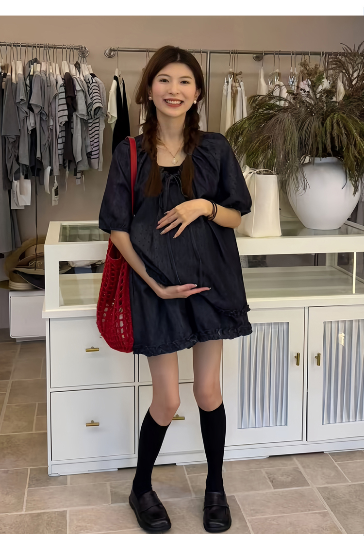 출산 착용 드레스 루즈핏 슬림해 보이는 매운맛 엄마 2026 여름 새로운 양면 착용 중간 길이 임신 기간 착용 가져 가라. 치마