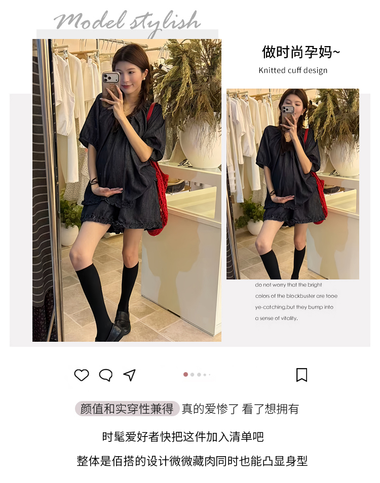 봄 여름 새로운 출산 착용 3종 세트 매운맛 엄마 섹션 2026 인터넷 유명인 섹션 임신 기간 착용 가져 가라. 빅 사이즈 세트 와이드 레그 팬츠