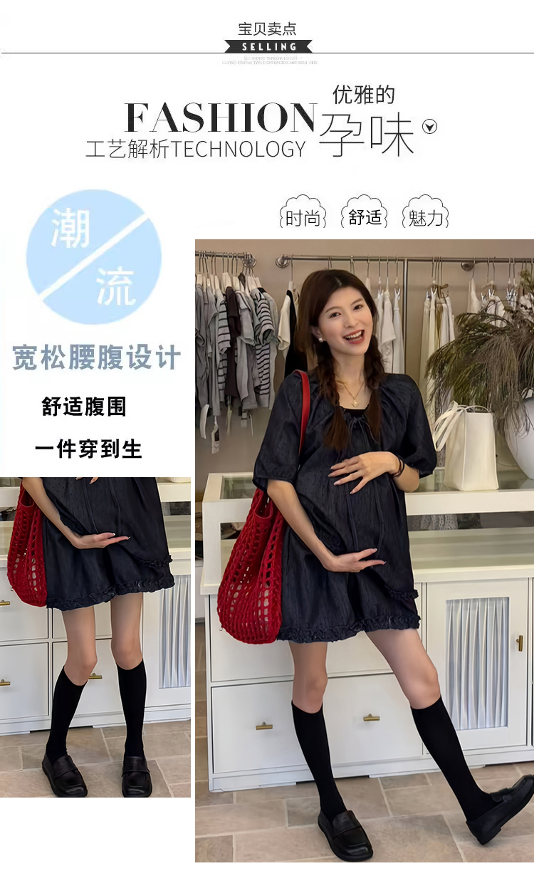 인터넷 유명인 섹션 임신 기간 착용 가져 가라. 중간 길이 치마 2026 여름 새로운 빅 사이즈 루즈핏 슬림해 보이는 출산 착용 드레스