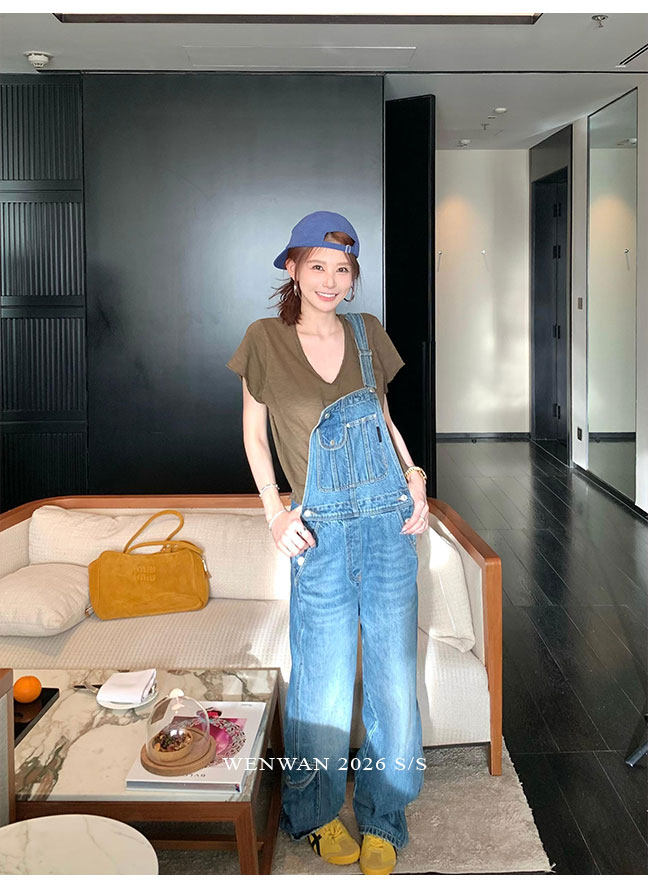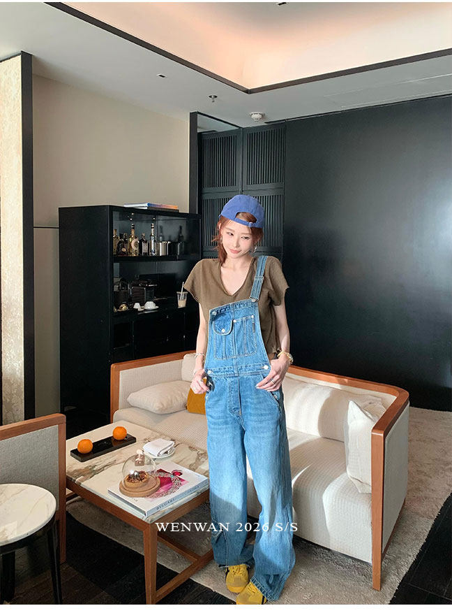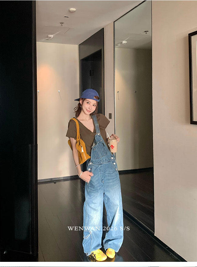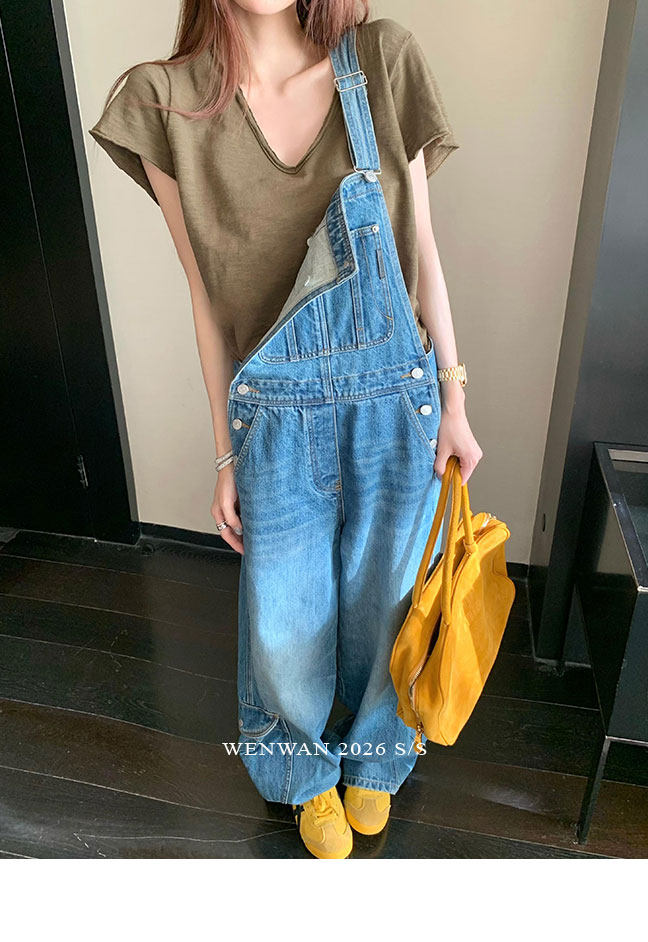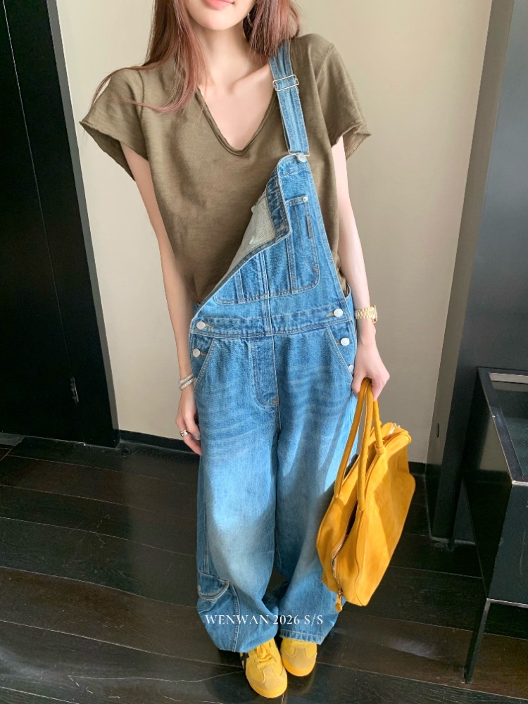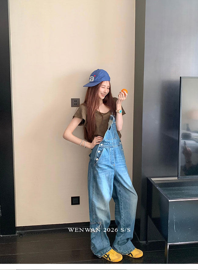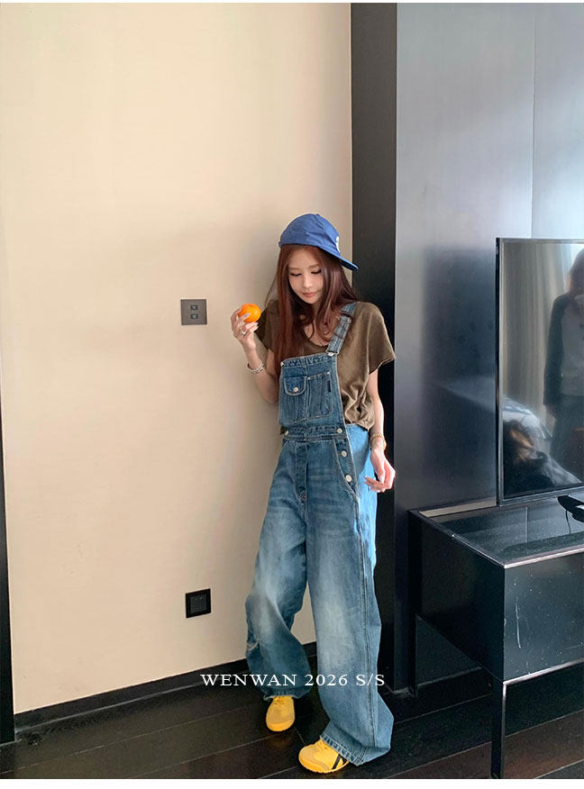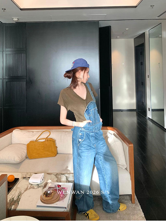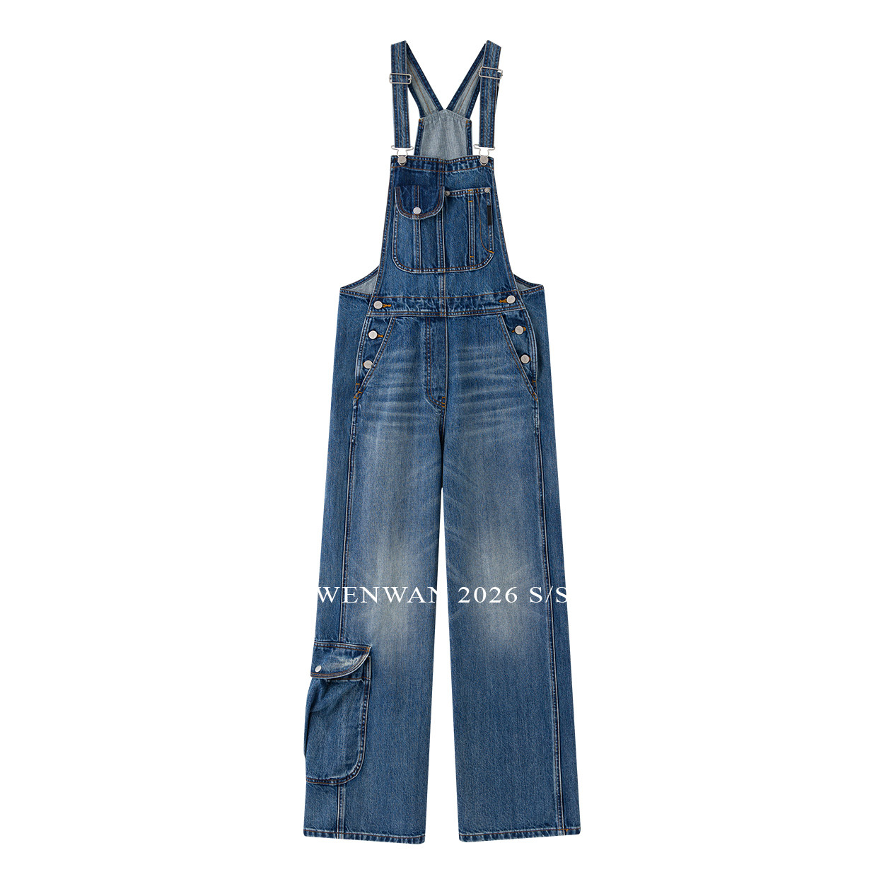 2026 여름 워크웨어 바람 멜빵 바지 스트레이트 청바지 여성 루즈핏 캐주얼 연령 감소 올인원 바지 넓은 다리 길이 바지