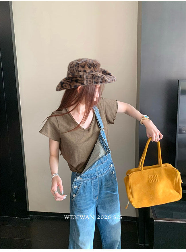 2026 년 여름 새로운 외국 가스 패션 고급 외국 가스 연령 감소 레트로 루즈핏 하이웨이스트 데님 멜빵 바지 여성