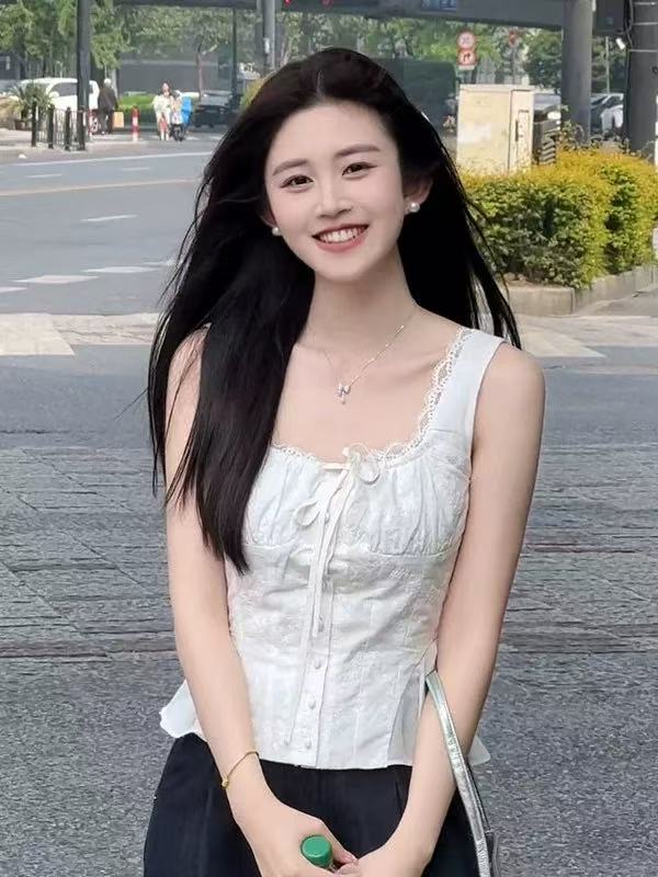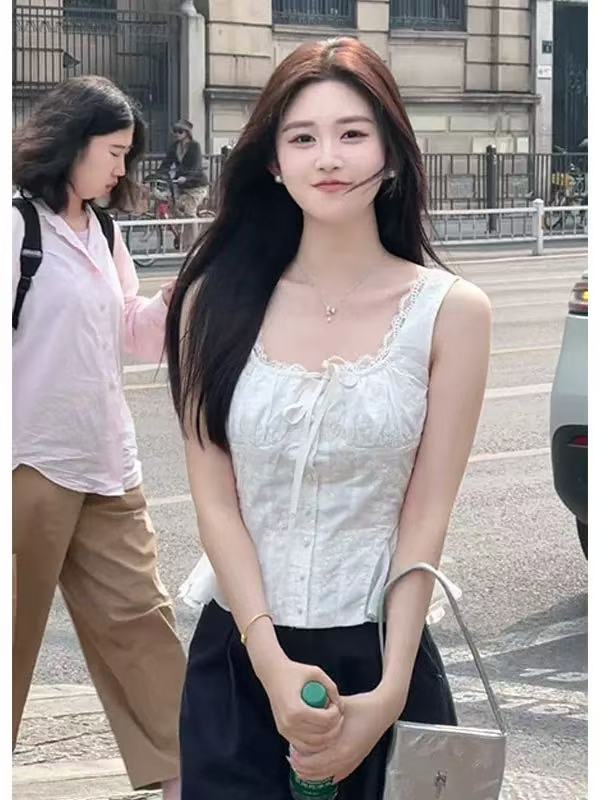 holder 열세 개 2026 여름 새로운 프랑스식 순수한 욕망 작은 여자 레이스 조각 V넥 조끼 맨위 여성