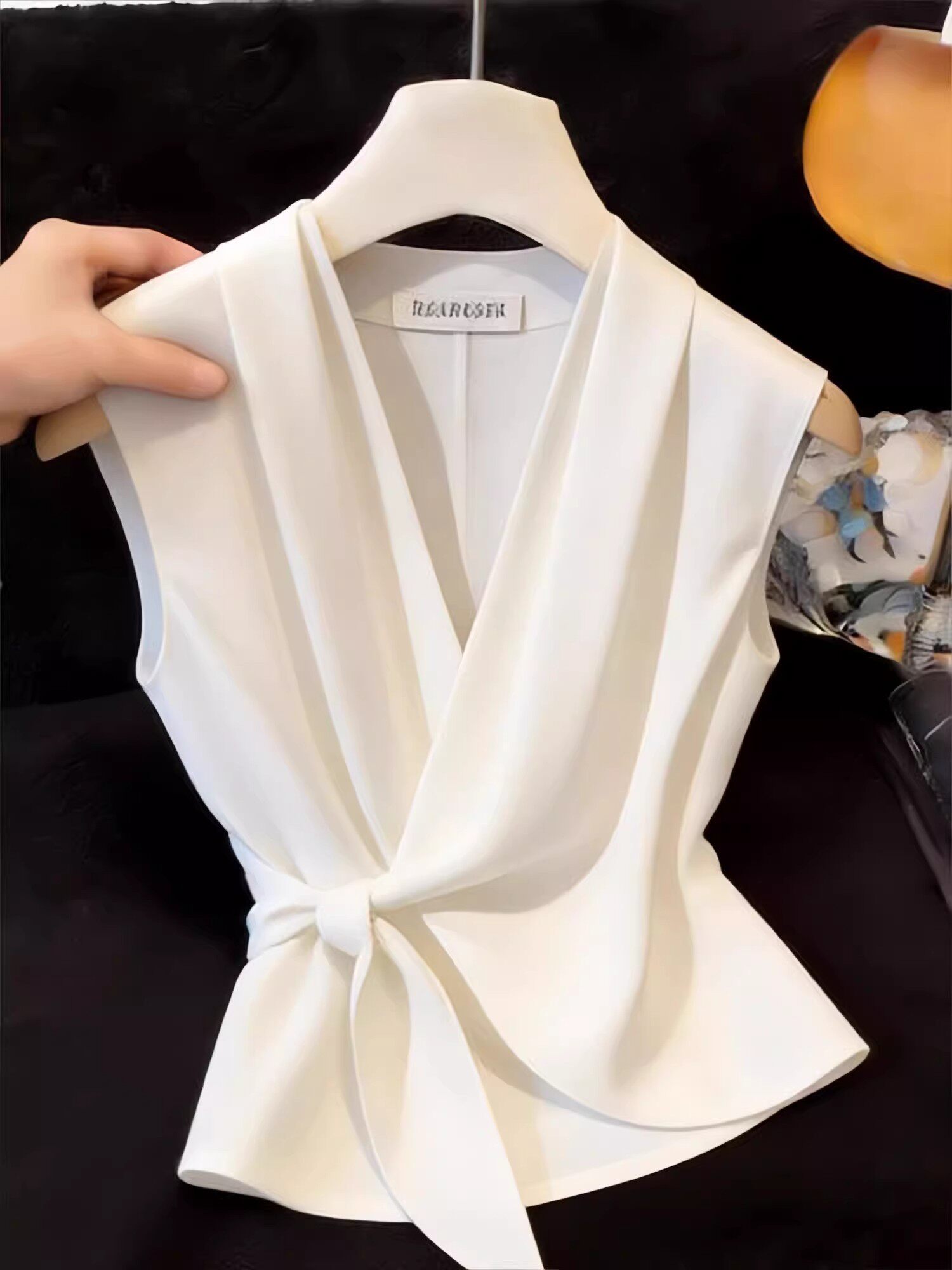 프랑스식 빛 럭셔리 고급 V넥 민소매 여성 셔츠 여름 2026 새로운 디자인 센스 십자가 스트랩 패션 맨위