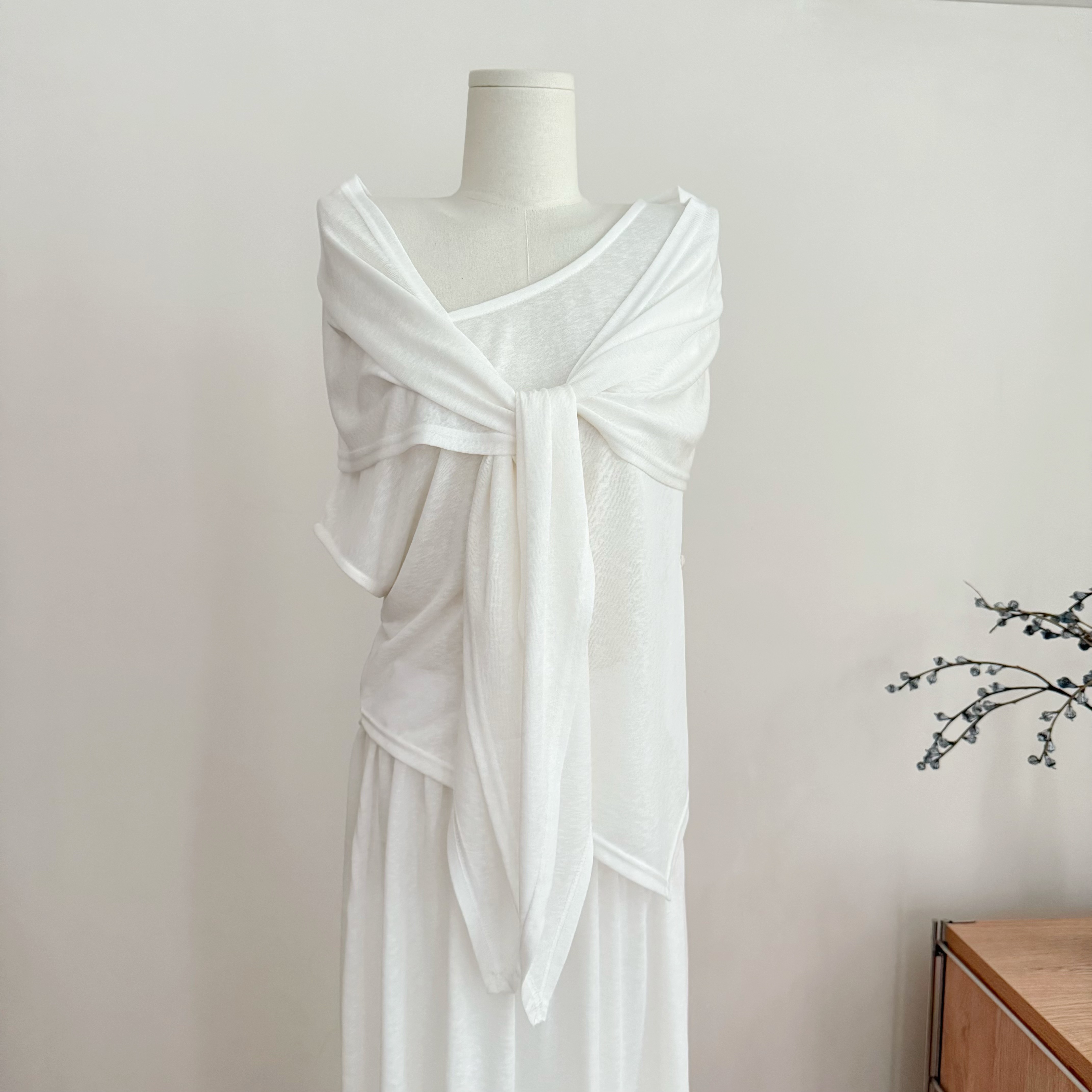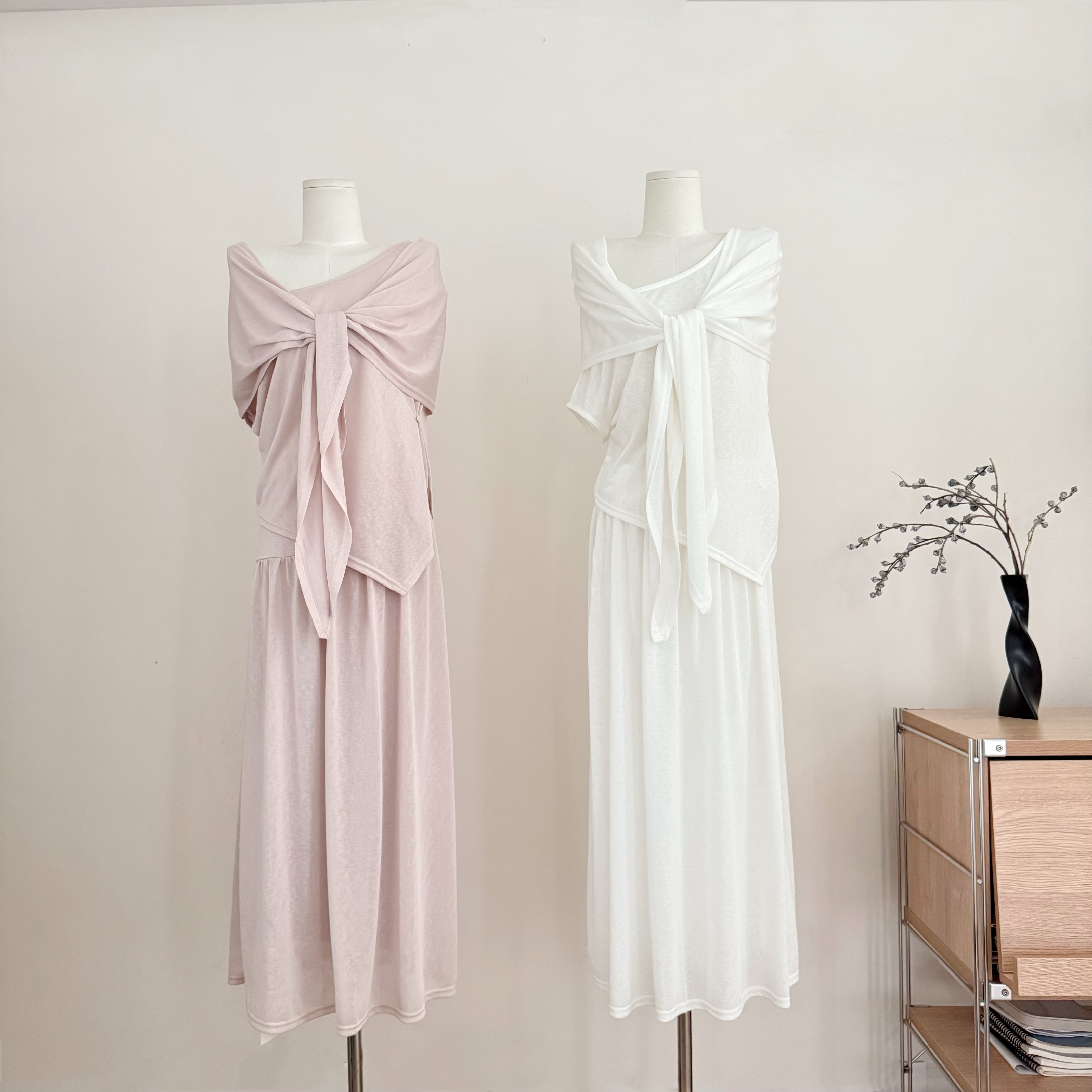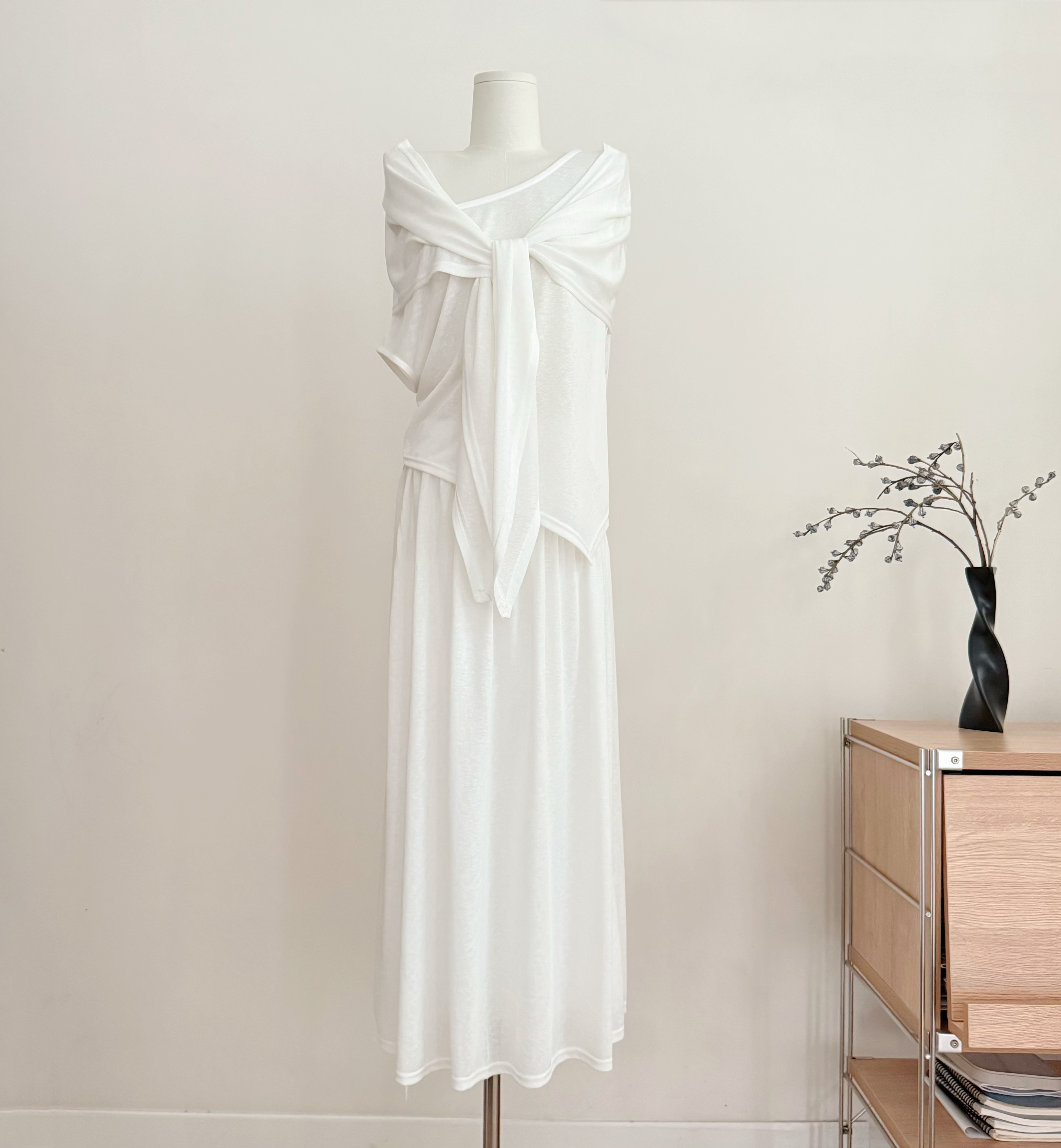 the swan 부문 피닉스 빛 럭셔리 부드러운 일상 편안함 몸매 가꾸기 니트 슬립 오픈 가디건 반신 스커트 3종 세트